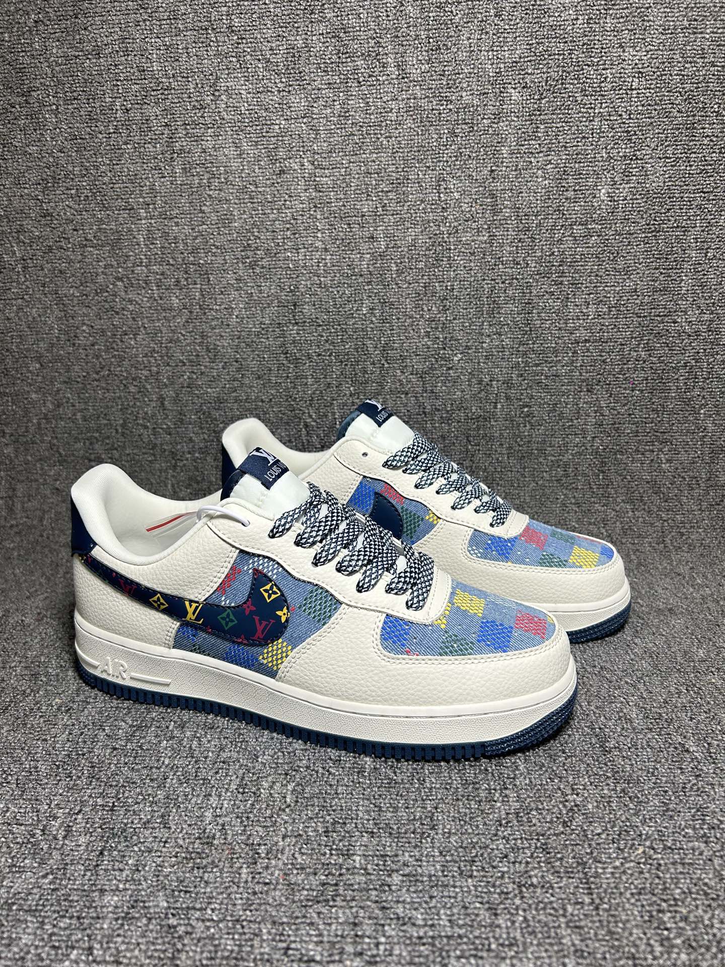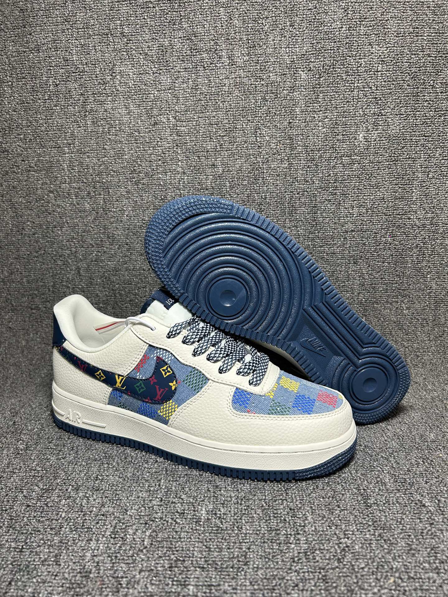 海外爆款限量发售 公司级Nike Air Force 1 07 Low LV联名 米蓝彩色印花 空军一号 高端定制 低帮 运动鞋 休闲鞋 折边针车 工艺难度大 原楦头原纸板 原装鞋盒 定制五金配件 内置全掌气垫 原厂鞋底
