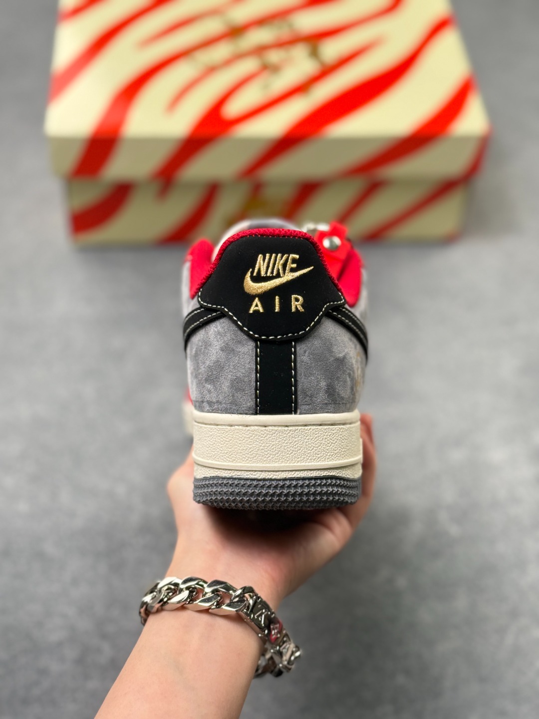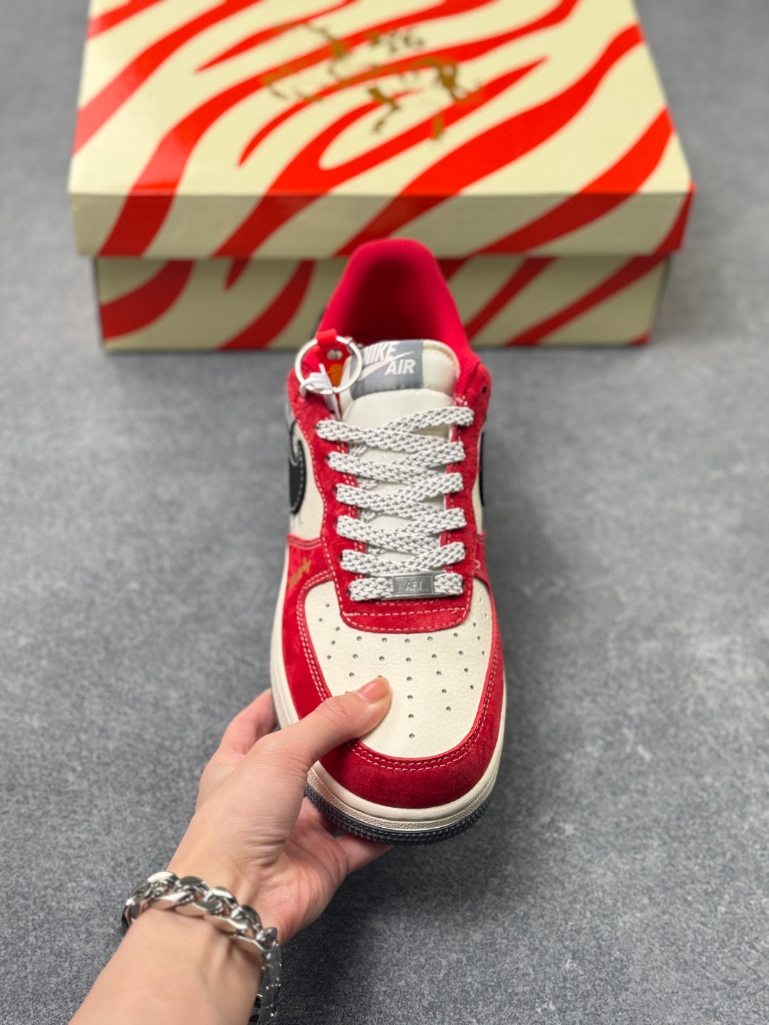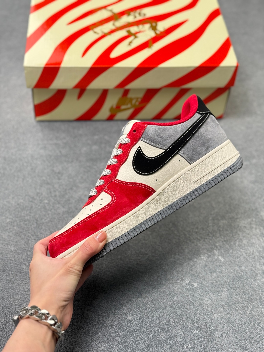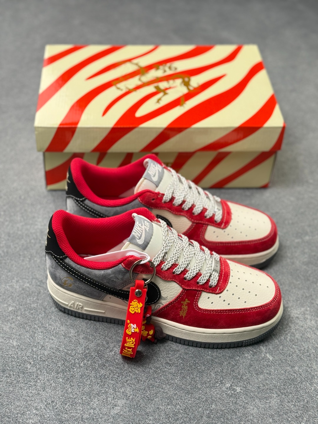耐克Air Force 1 Low 祥龙献瑞 限定款 新年穿搭C位预定 当经典AF1遇上东方龙韵 这双FC1688 263直接把新年氛围感拉满 红白撞色搭配高级灰麂皮 鞋身烫金 吉祥 字样与暗纹龙纹相映成趣 黑勾点缀更添利落质感 每一处细节都藏着中式美学的巧思 延续Air Force 1标志性的气垫中底 脚感软弹不闷脚 日常通勤 街头出片都能轻松驾驭 麂皮材质触感细腻 搭配做旧风的米白中底 复古腔调拉满的同时 又因新年红的注入多了份喜庆与活力 不管是作为新年给自己的礼物 还是搭配拜年穿搭赚足回头率 这双融合了经典鞋型与东方文化的AF1限定款 都是潮人鞋柜里的年度必入款 错过这波 再等一年可就没啦 尺码 36 36 5 37 5 38 38 5 39 40 40 5 41 42 42 5 43 44 44 5 45×71