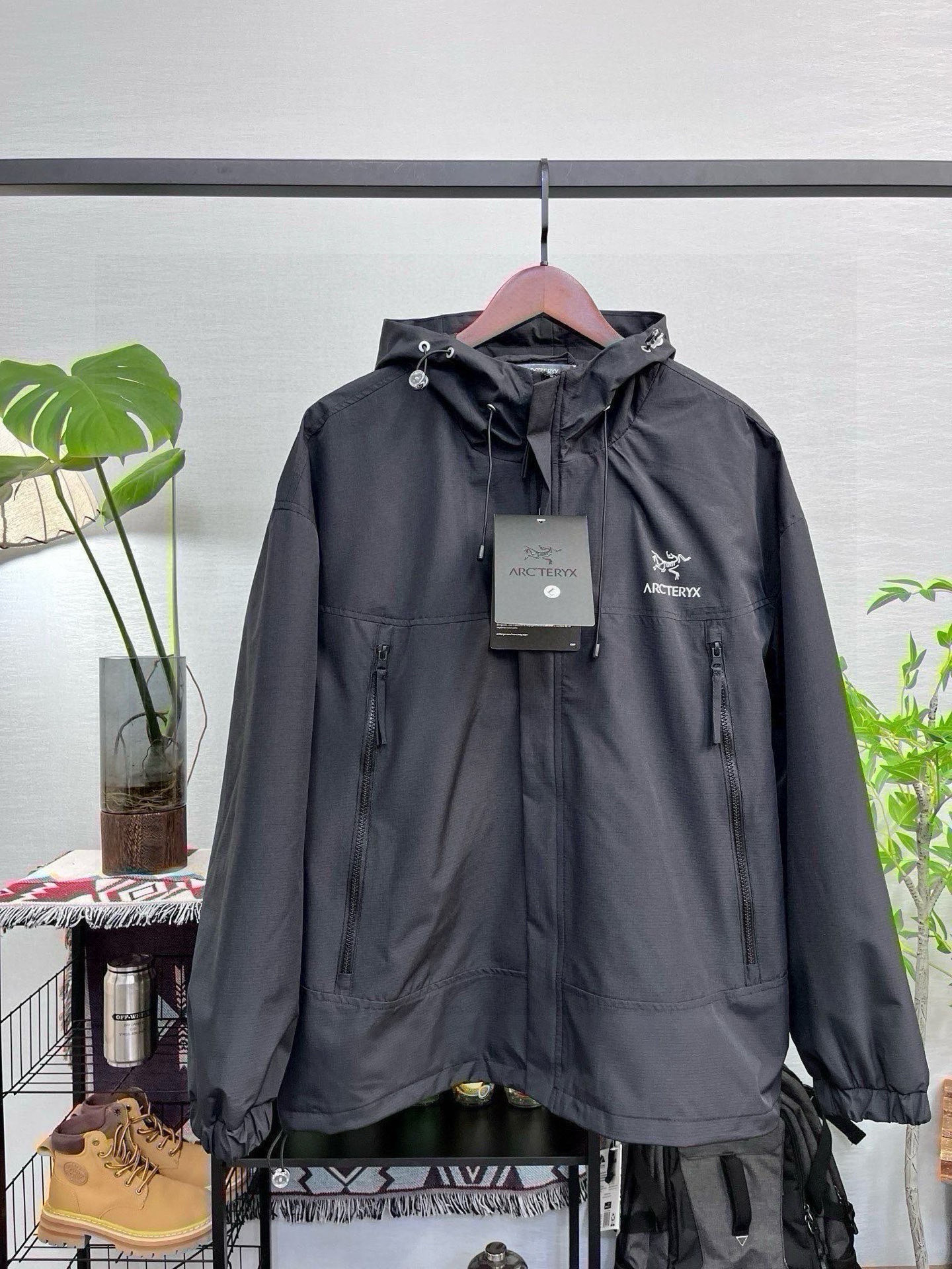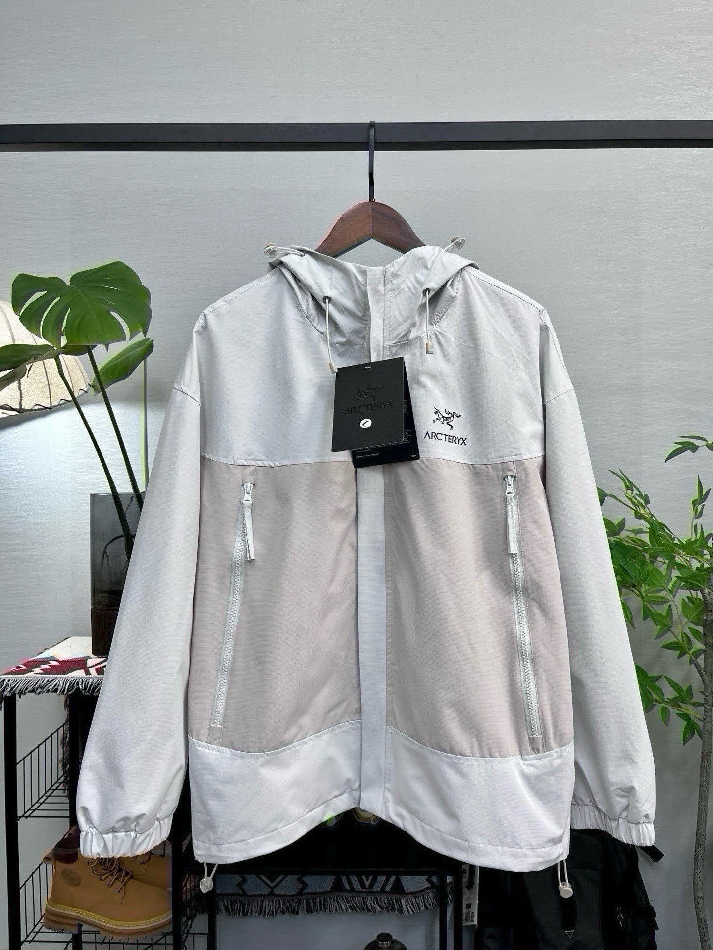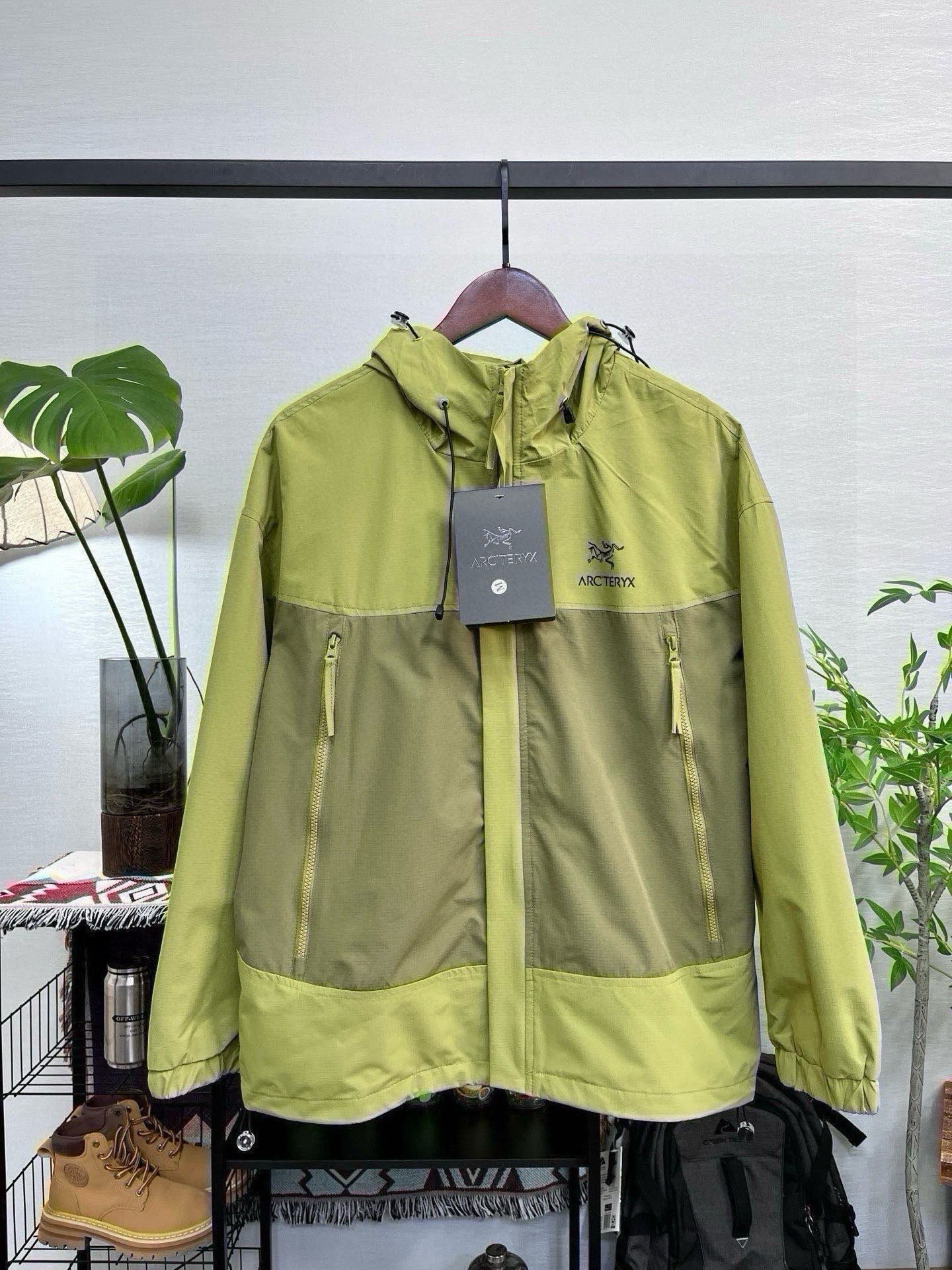 始祖鸟Arc teryx拼接户外连帽外套夹克冲锋衣 宽松显瘦 高品质 帽子有注塑调节扣可随意调节 穿着方便 wang炸绝绝子 春季极品 显瘦遮肉 jue对的好穿第一名 舒适有型 宽松版型对身材包容度强 高矮胖瘦都能轻松驾驭 冲冲冲 男女同款情侣可搭