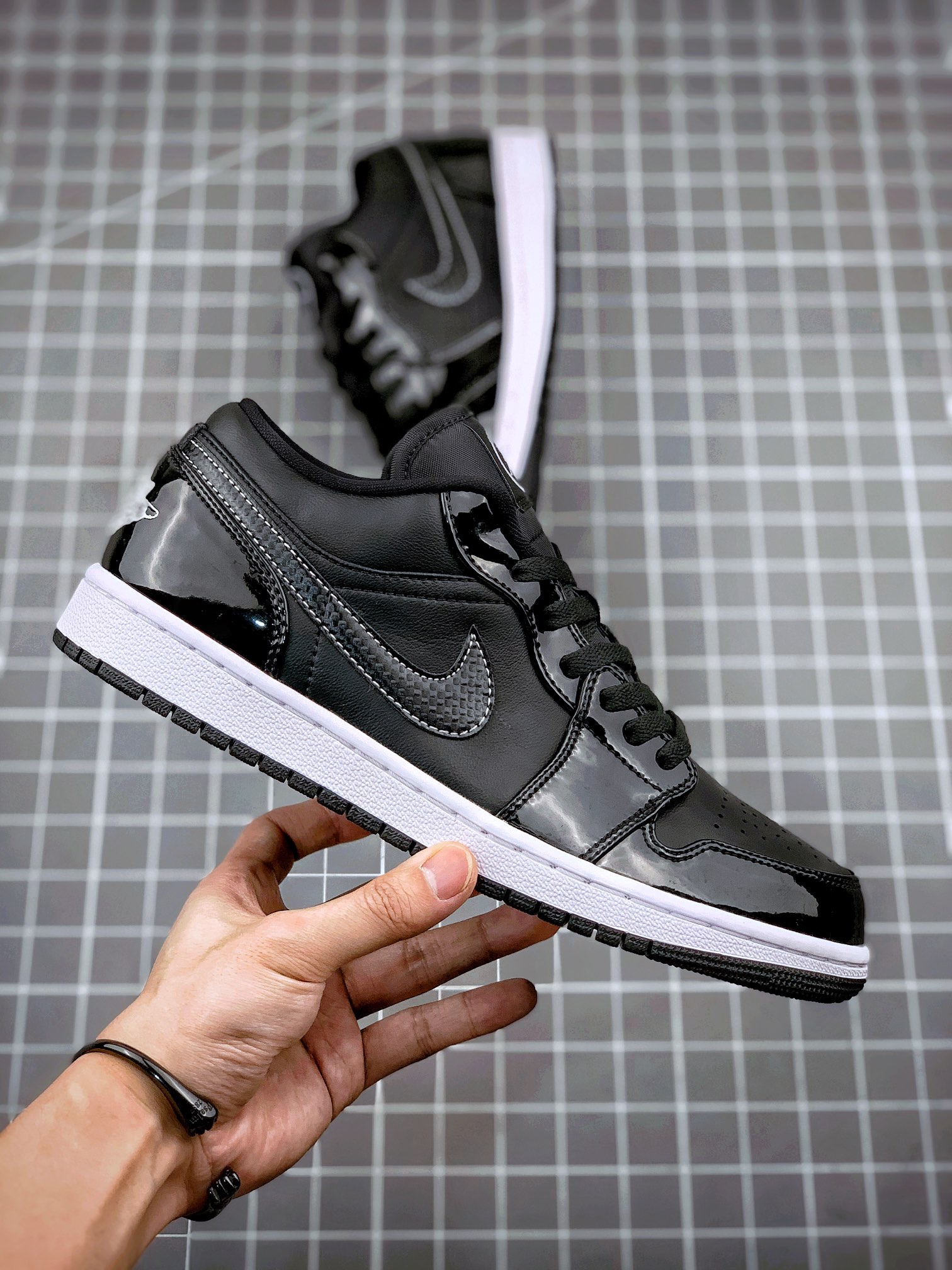 Nike Air Jordan 1 Low SE ASW Black and White 低帮 漆皮黑白AJ1 乔丹1代 aj1 乔1 低邦 全明星 乔丹篮球鞋系列 此款低帮AJ1采用黑色漆皮鞋面 尽显精致格调 白色中底为鞋款注入吸睛亮眼的对比效果 呈现简约利落的个性外观 而低帮版型的设计则更加便于穿脱