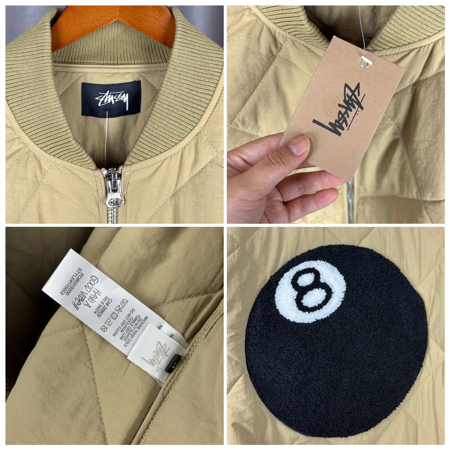 𝑺𝒕𝒖𝒔𝒔𝒚 斯图西纯色大口袋菱格薄款棉服黑八桌球贴布绣拉链立领夹克棒球服毛巾绣外套男女同款
