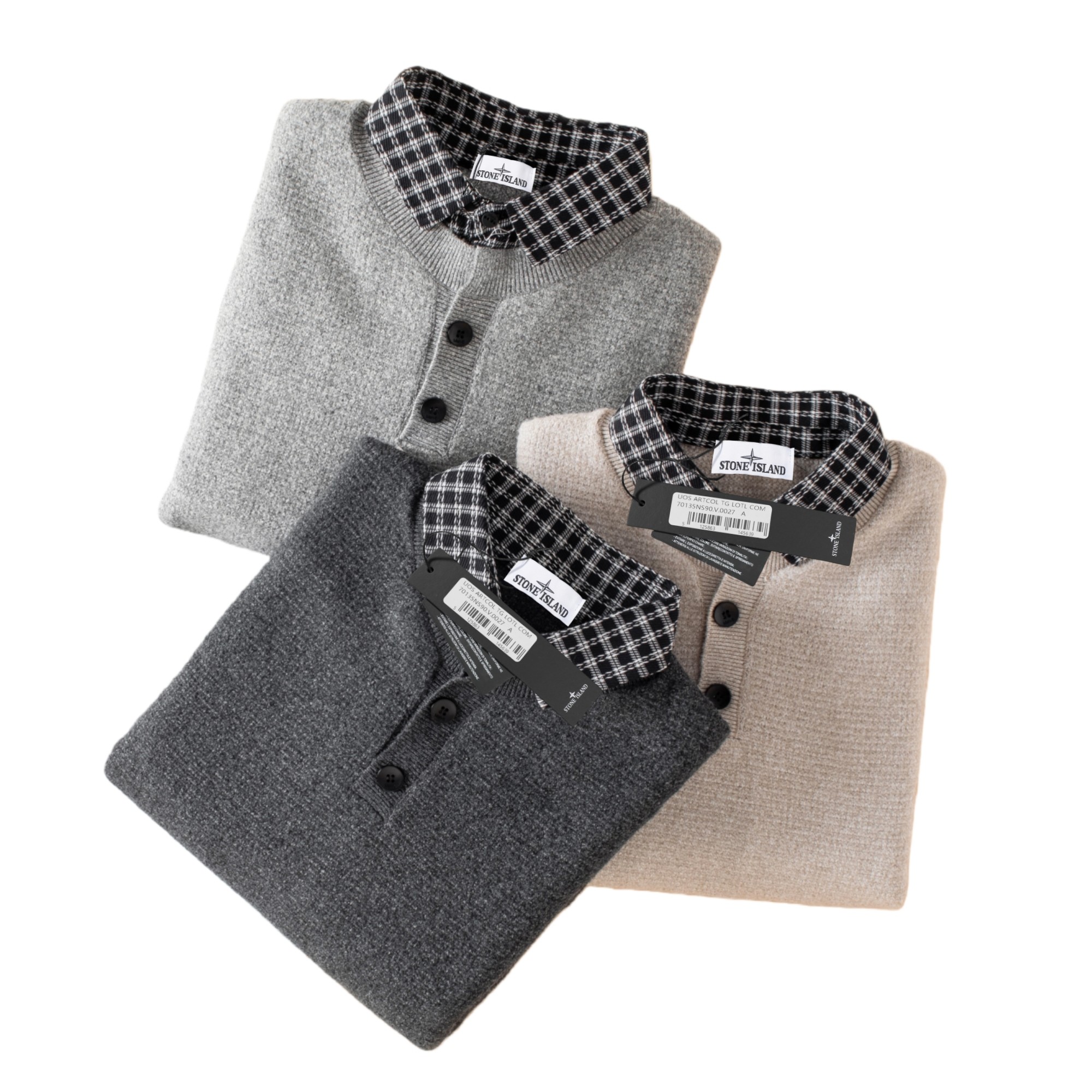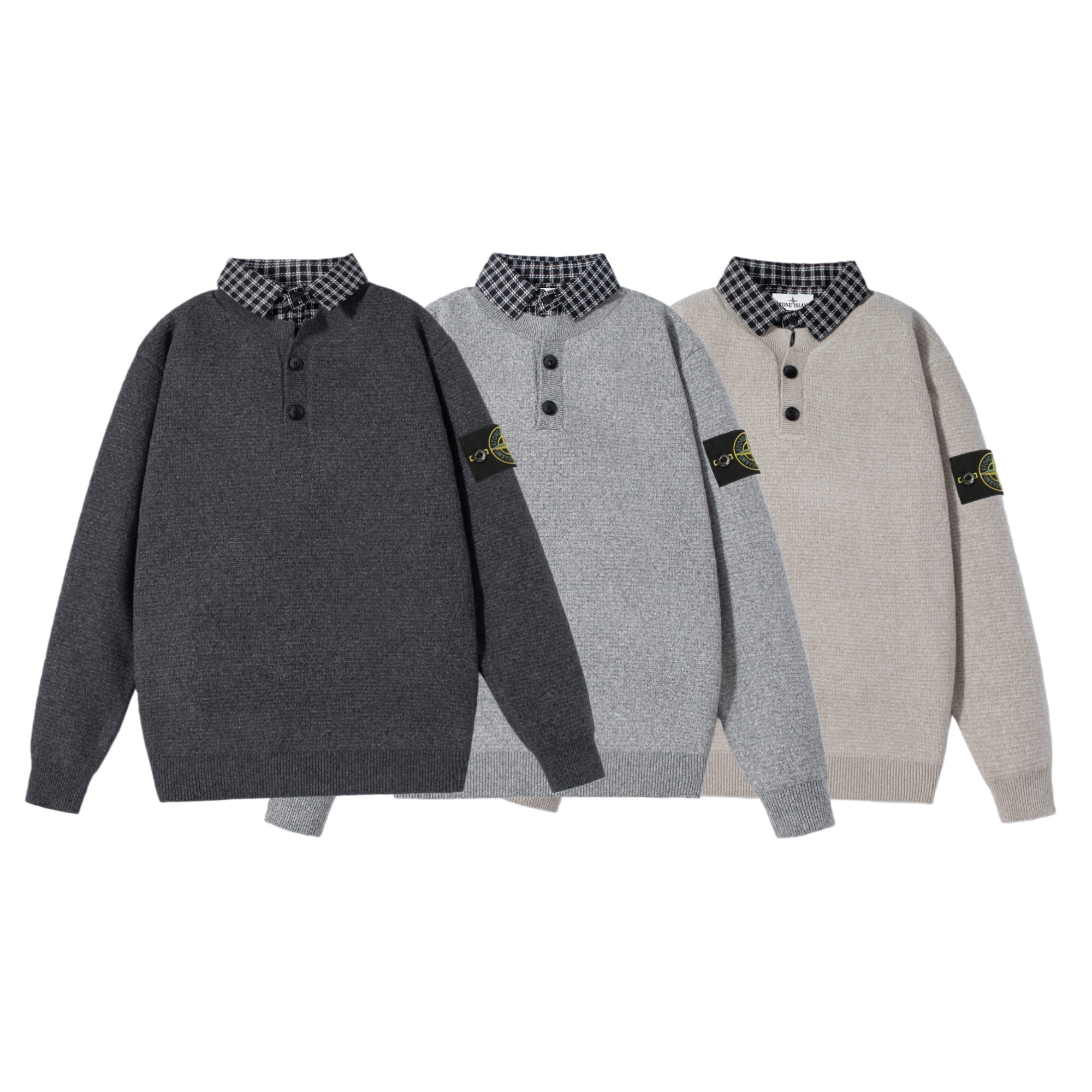 145142149 - 供 STONE ISLAND石头岛经典徽章衬衫领假两件针织毛 351723