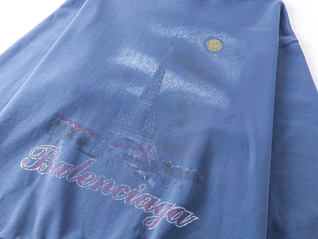 实拍图 顶级版本 官网品质 BALENCI GA 巴黎 2024最新秋冬季巴黎埃菲尔铁塔直喷白墨渐变彩印水洗磨烂做旧连帽卫衣 超重工艺 砖柜同步 区别市场通货 正品研制 欢迎对比 克重460克 磨烂 手绘与ZP一致 印花釆用康丽数码直喷 成衣洗水做旧磨烂 整件设计超重工艺 欢迎对比 版型釆用OS宽松落肩版型 男女同款