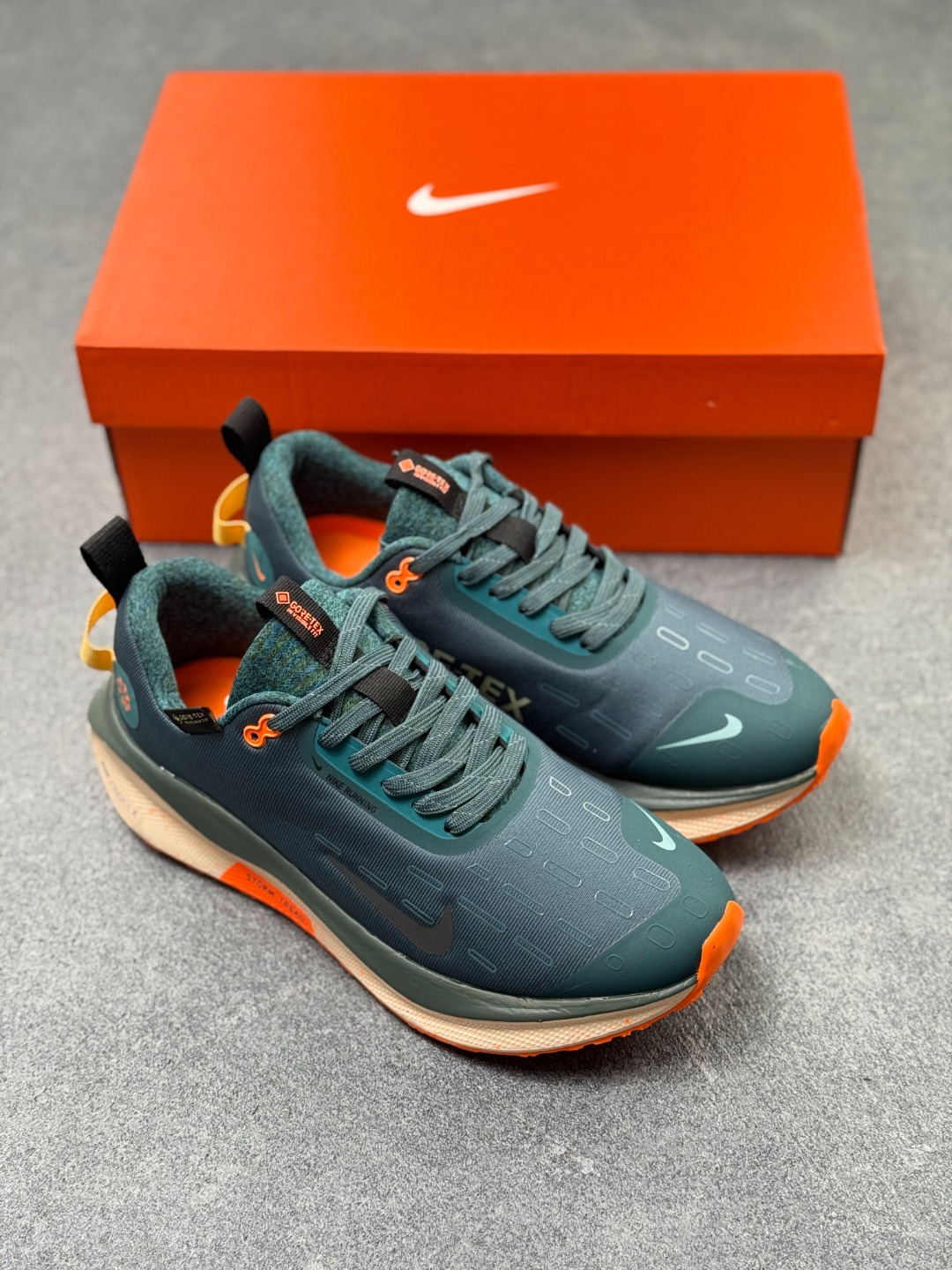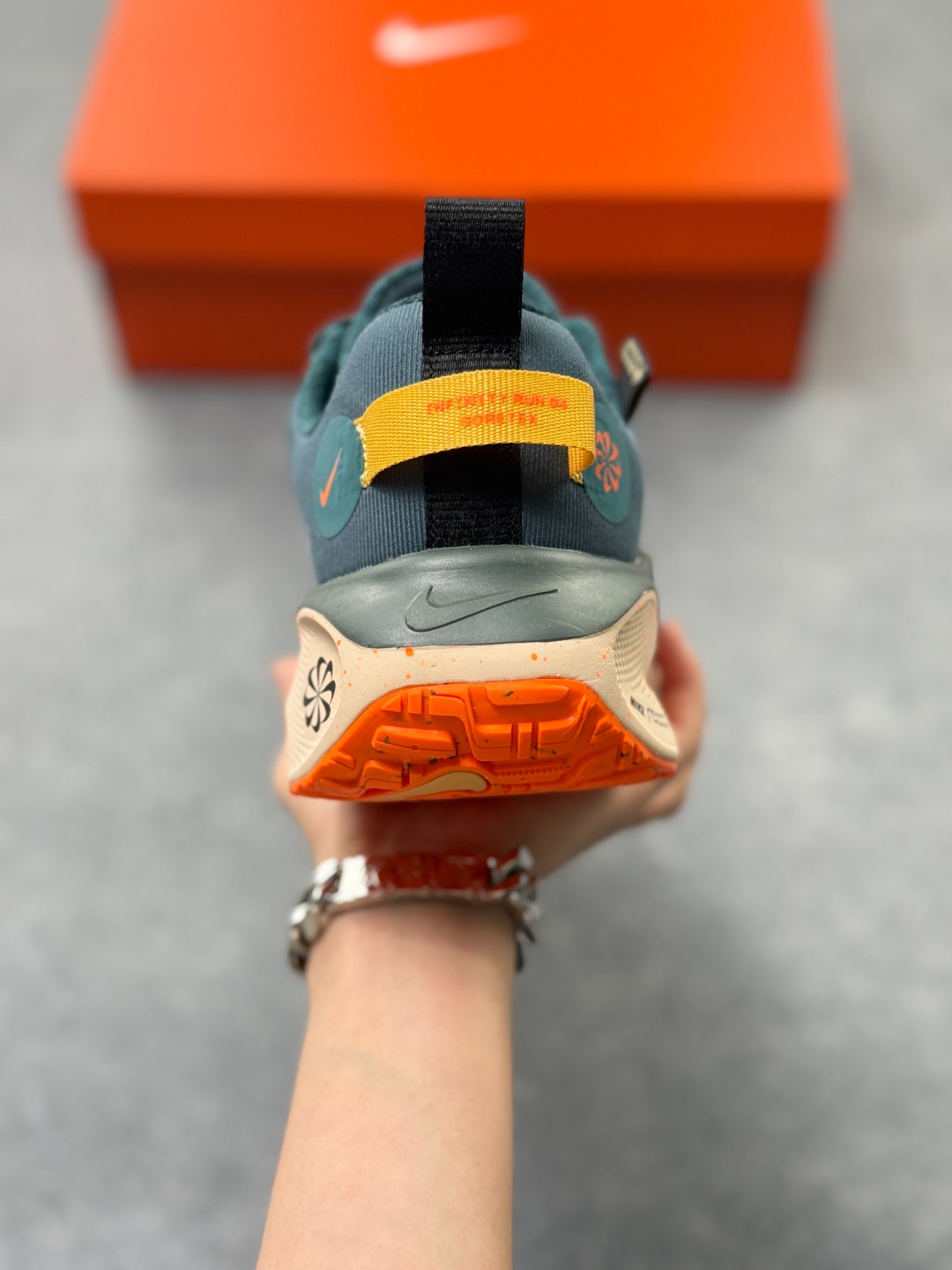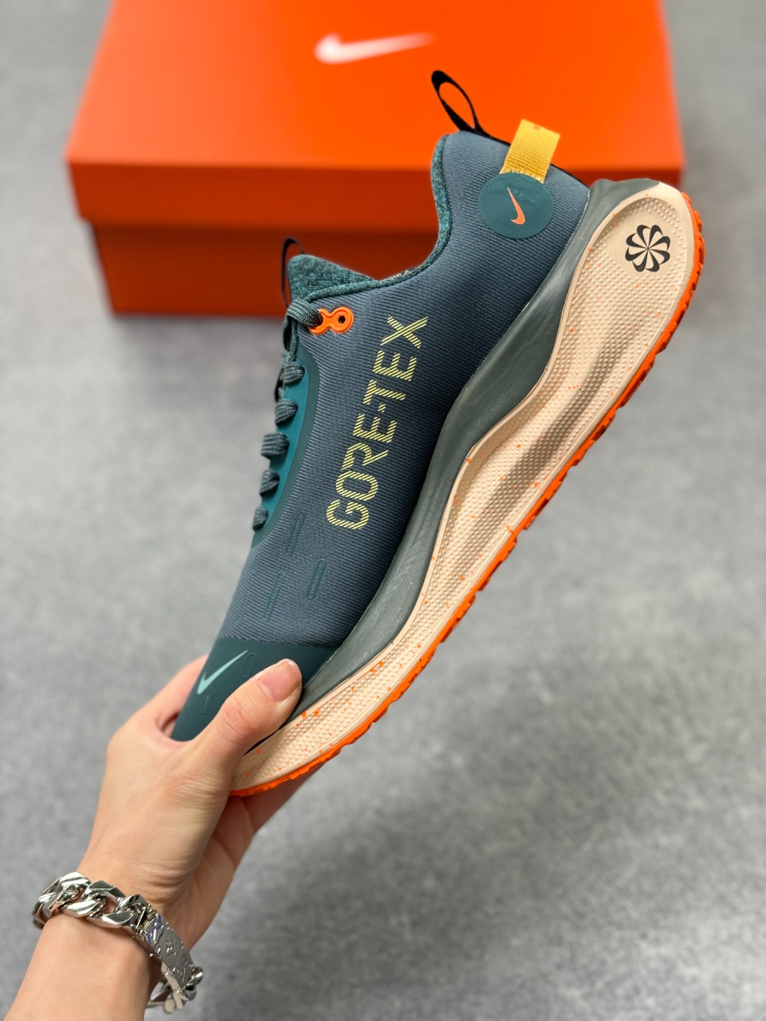 细节设计 采用Flyknit材质鞋面 结合Gore Tex防水材质 既保证了鞋子的轻盈感 又具备良好的防水性能 同时 鞋身可能带有反光细节 提升在低光照环境下的可见度