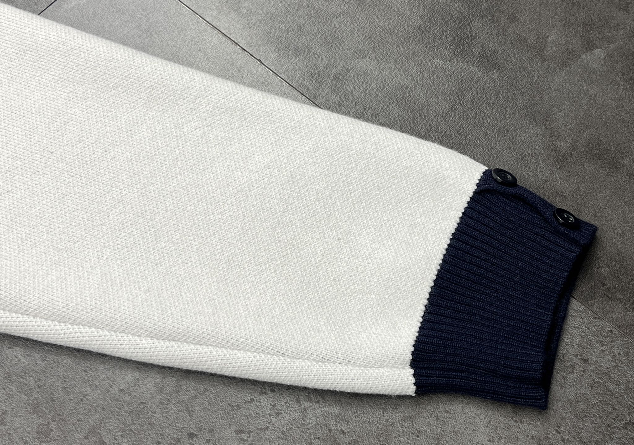 这件撞色针织毛衣 藏蓝 白色的经典配色 自带贵气又不张扬 秋冬穿直接拿捏高阶氛围感