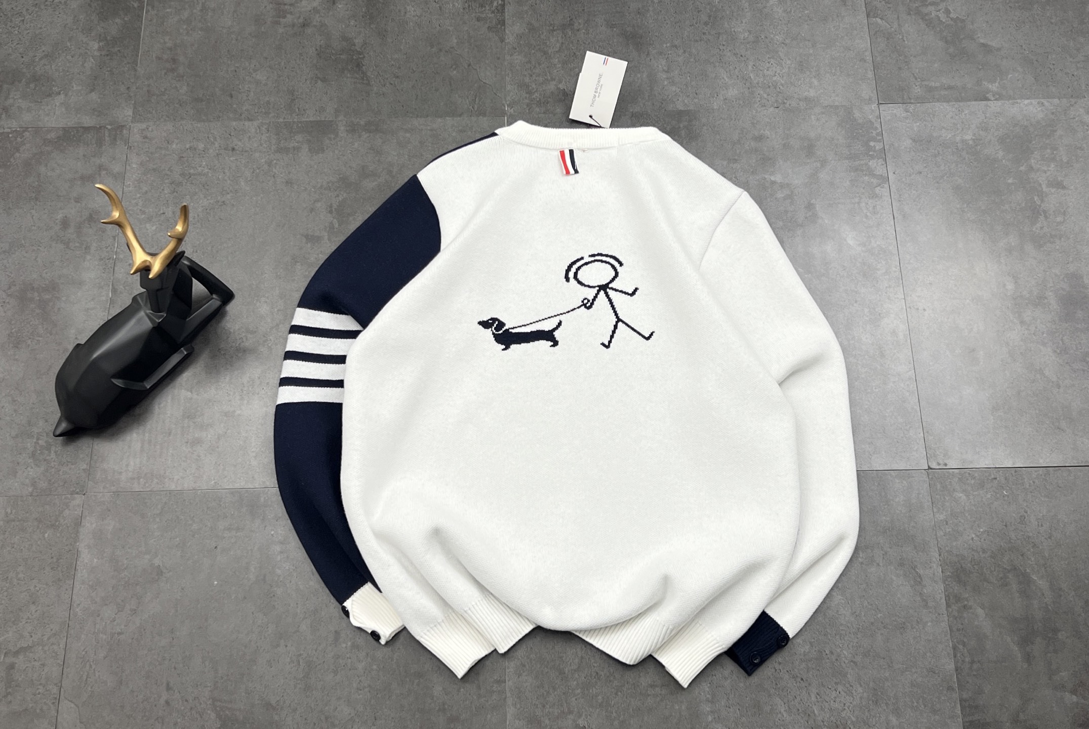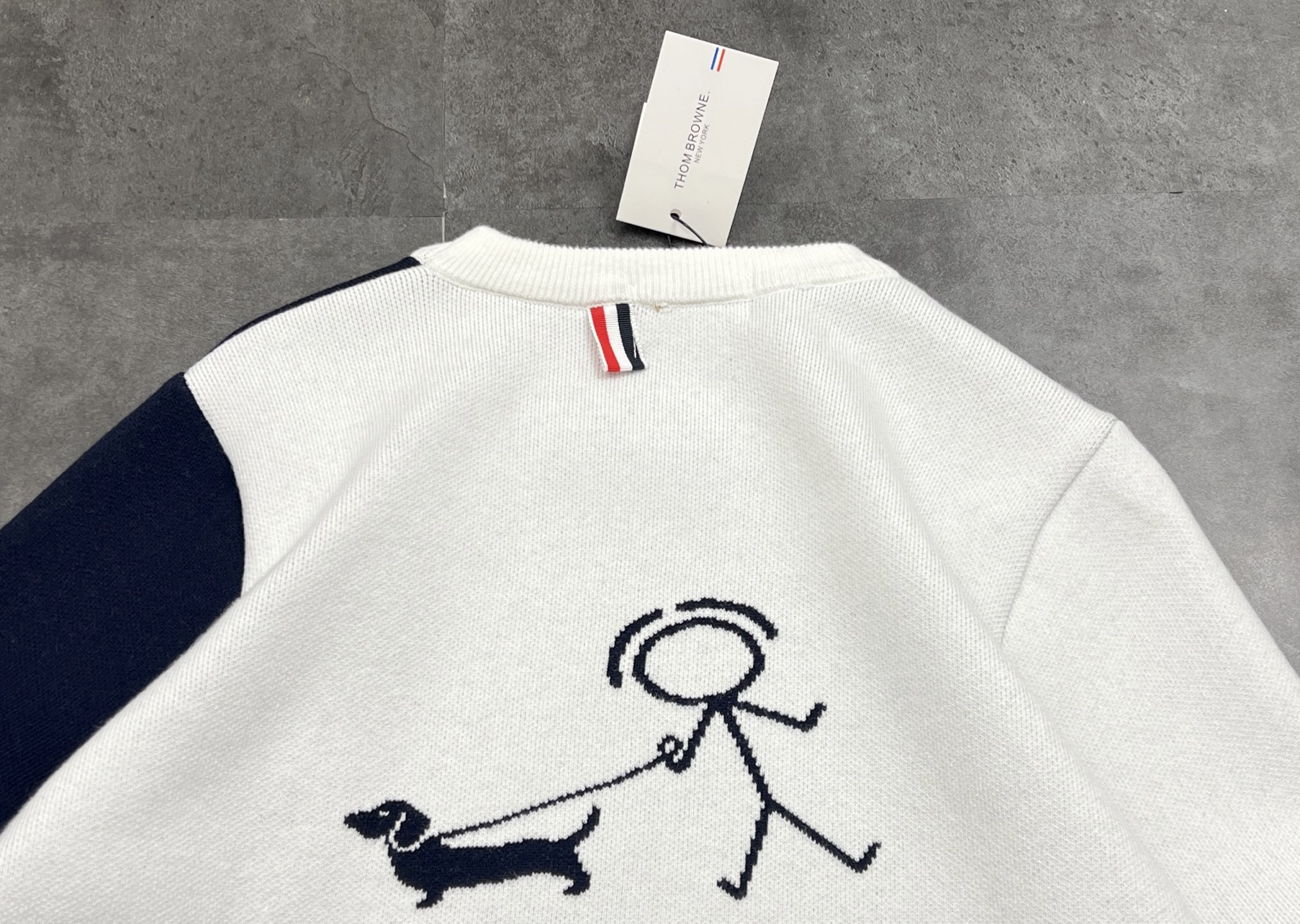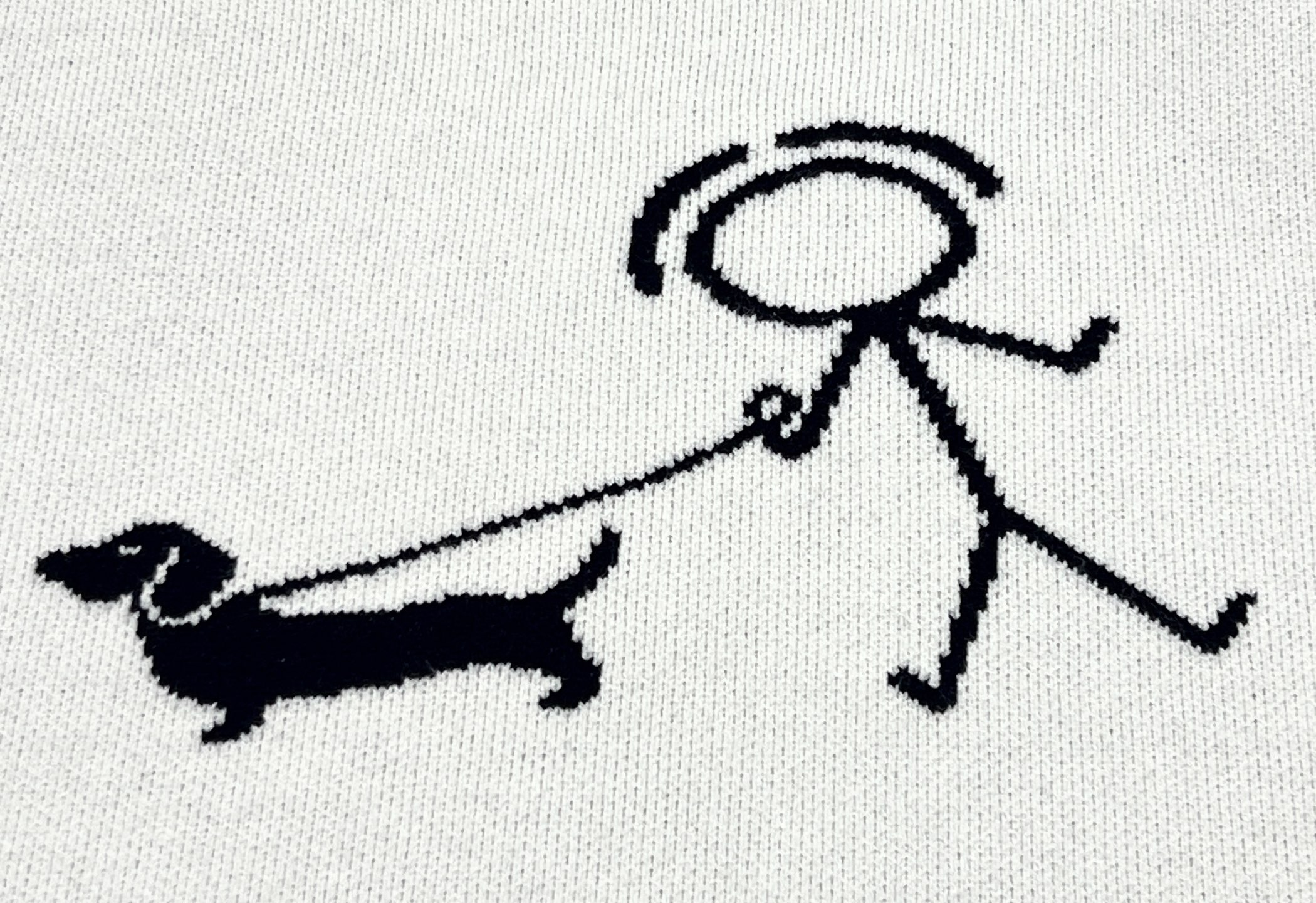 后背遛狗图案也是立体针织提花 线条流畅不生硬 童趣又不失高级感 辨识度直接拉满