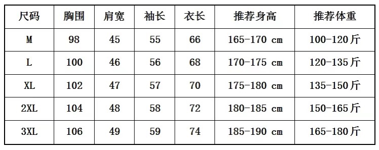 尺码 M 3XL