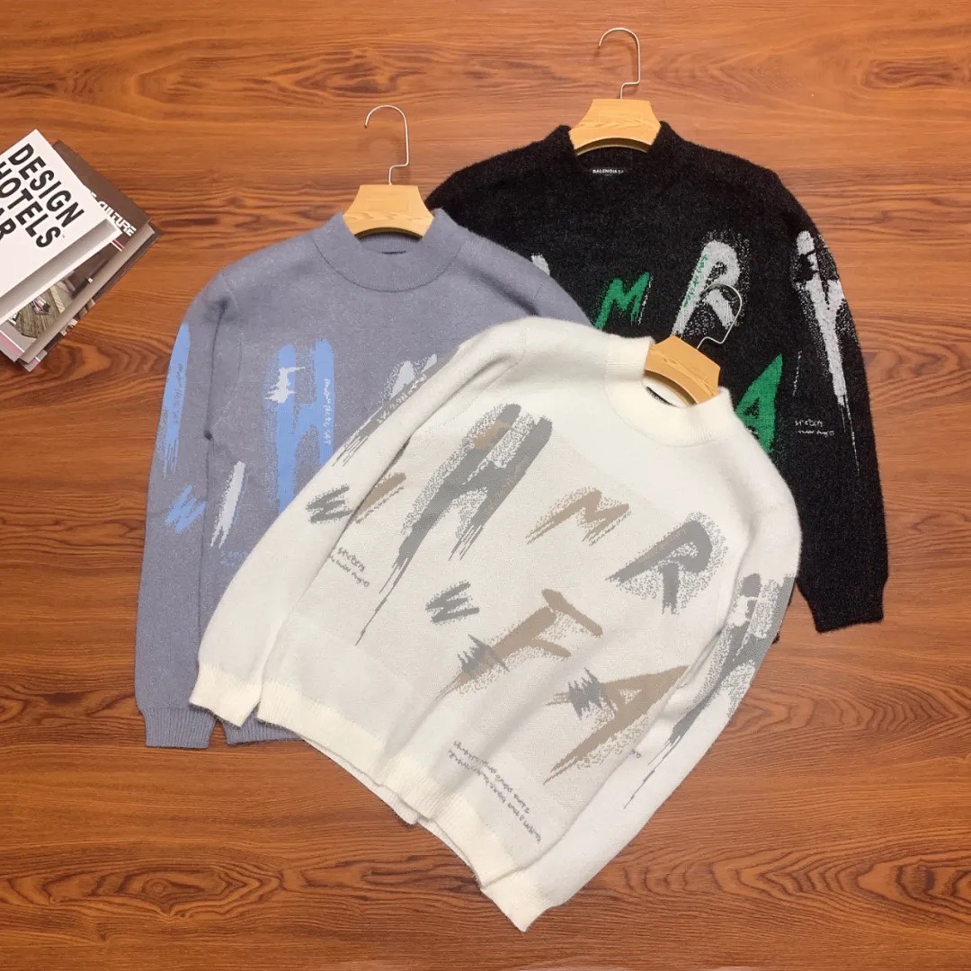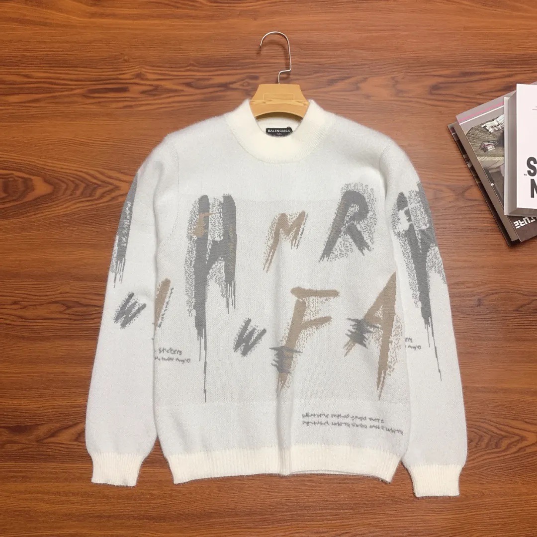 丰厚保暖 柔软贴身 BALENCIAGA 巴黎世家 秋冬季新款水貂绒男士毛衣 字母涂鸦印花原色 防风螺纹收口 成衣柔软舒适 质感十足 亲肤不刺激