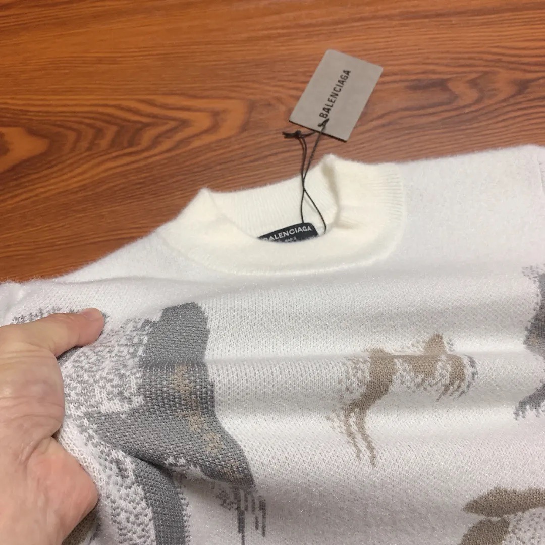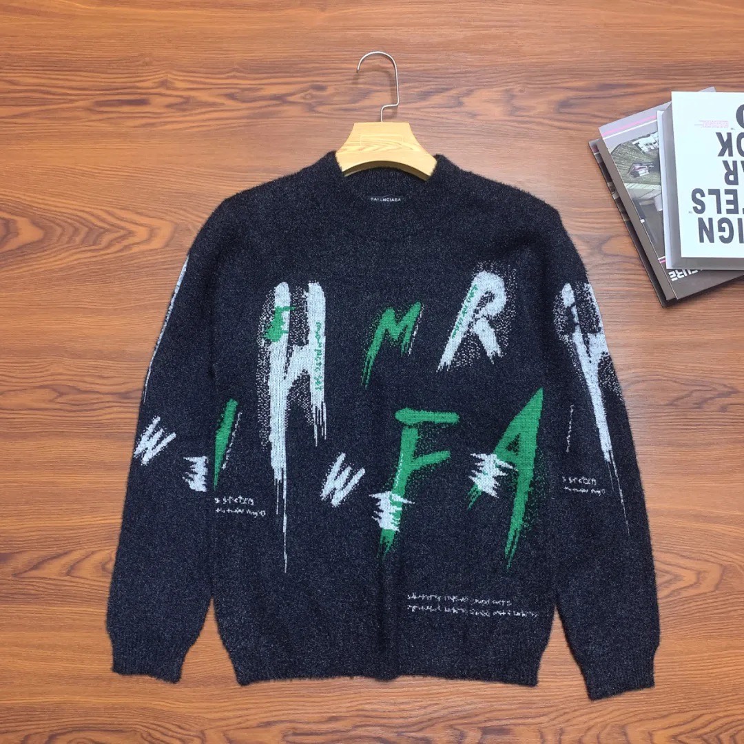 BALENCIAGA 巴黎世家 2025秋冬季新款字母涂鸦印花男士毛衣 衣服非常有质感 不是薄薄的一件 水貂绒手感亲肤柔软 绝对上档次 成衣柔软细腻 简直就像第二层皮肤 贴身穿也不会有扎身的感觉 衣服做工也无懈可击 针织紧实同时弹力优良