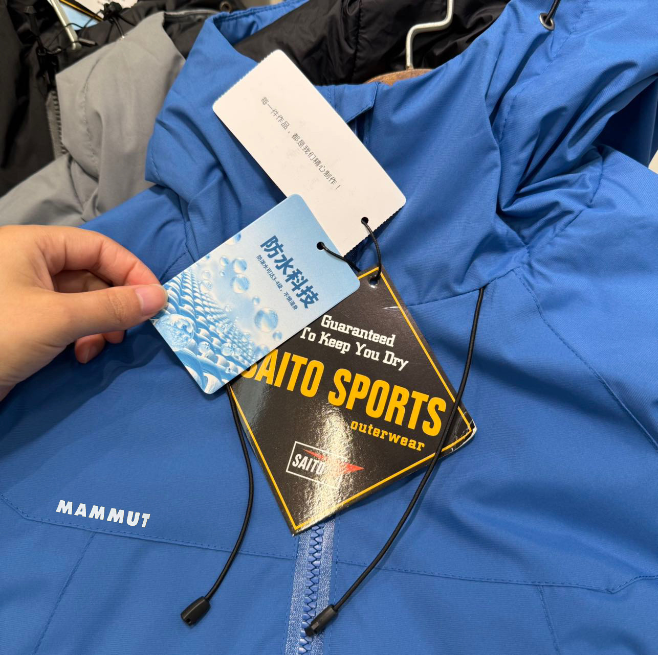 功能性面料 防水 透气 耐磨 保暖 拉链定制挡水条 可预防突然降雨的寒冷 潮湿直下摆设计 可调节下摆绳防止冷风进入