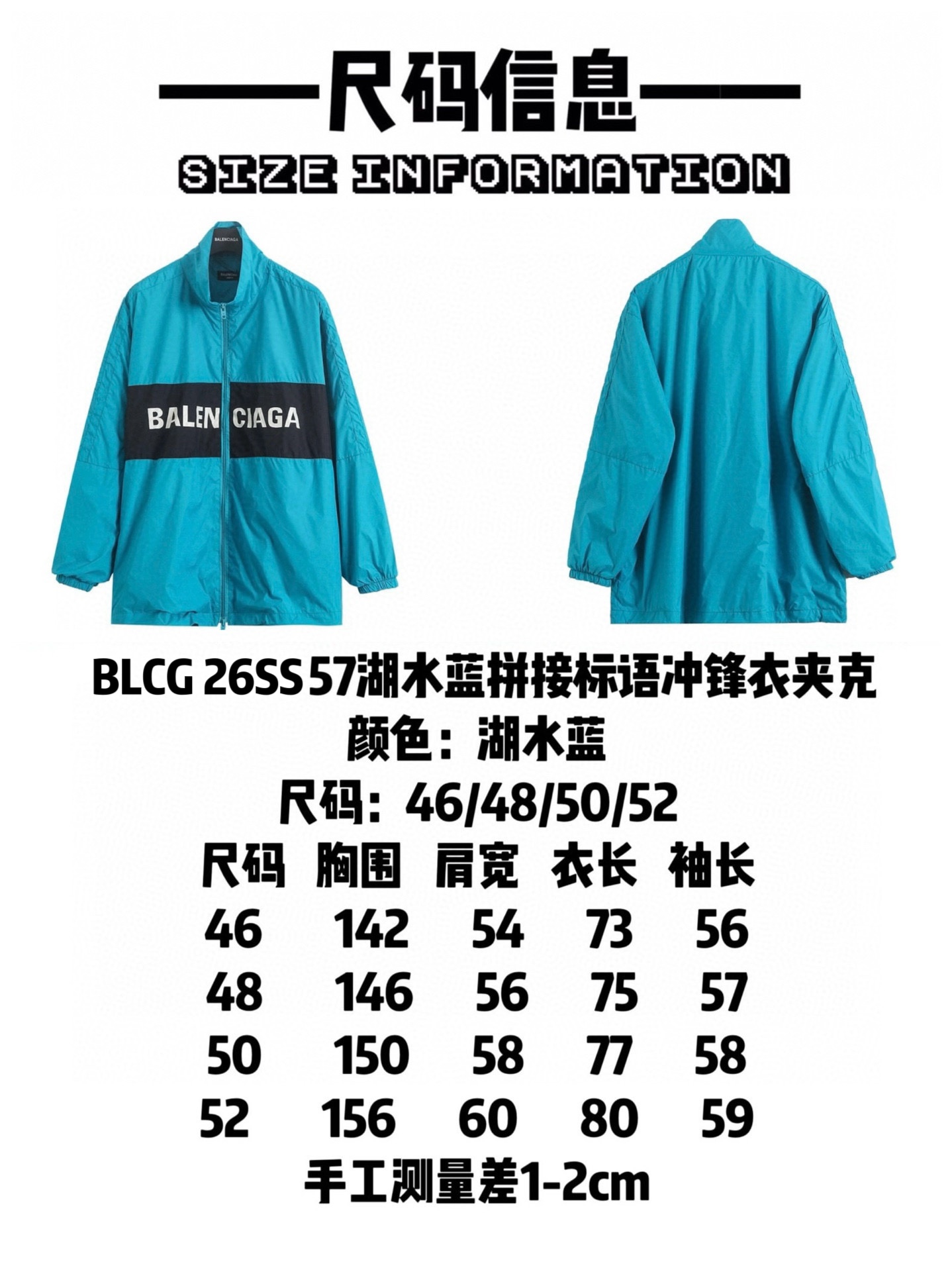 巴黎世家 𝘽𝘼𝙇𝙀𝙉𝘾𝙄𝘼𝙂𝘼 BLCG 26SS 57湖水蓝拼接标语冲锋衣夹克