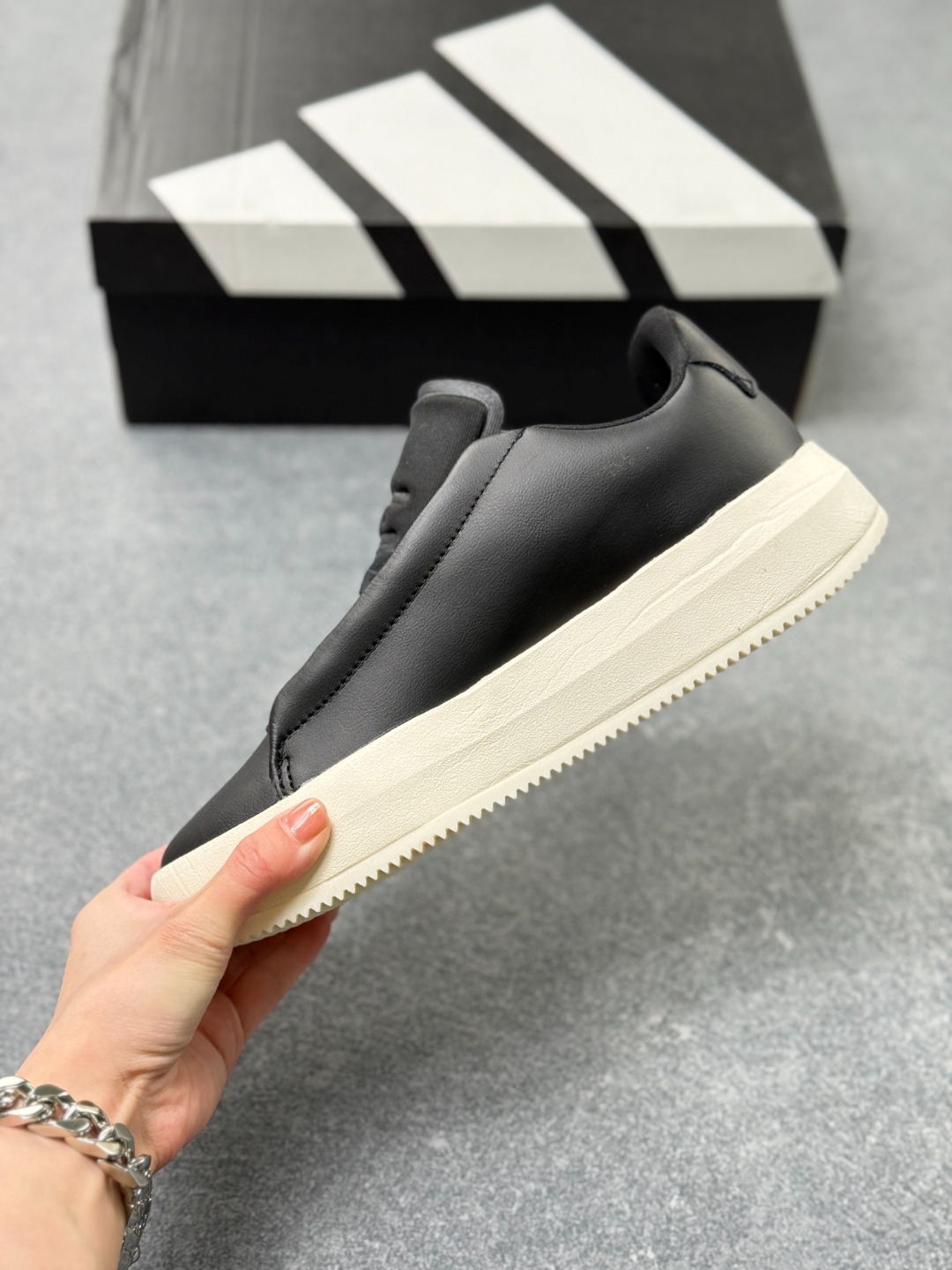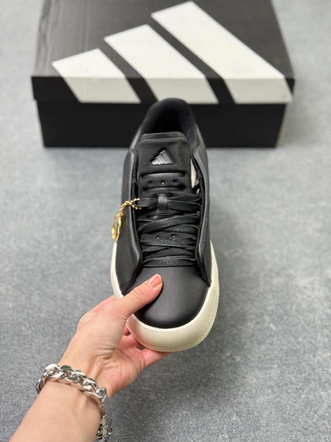 这款adidas经典运动鞋 采用正绒面革鞋面并饰打孔adidas运动徽标 力求打造既摩登又经典的球场风造型