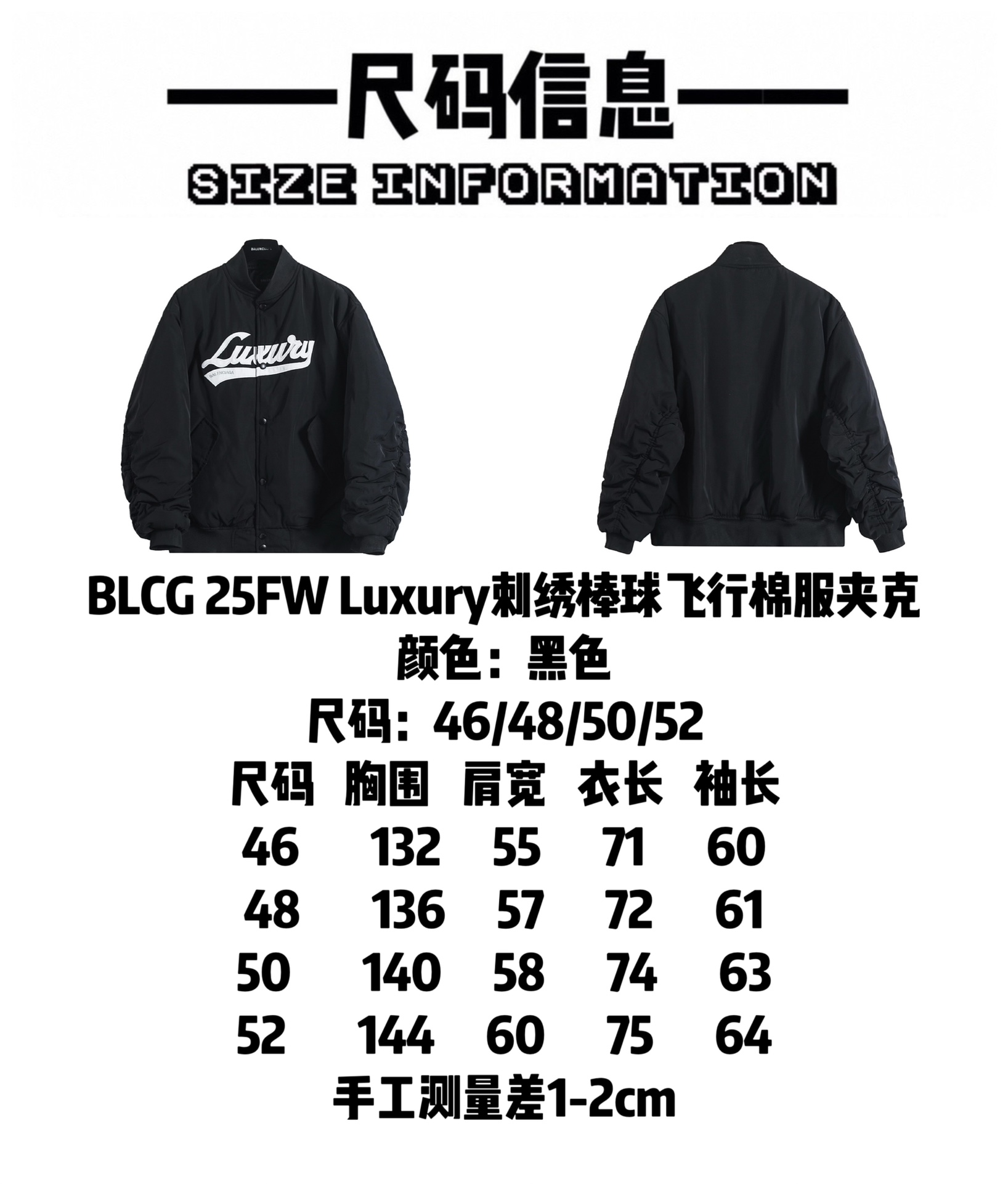 尺码 46 48 50 52