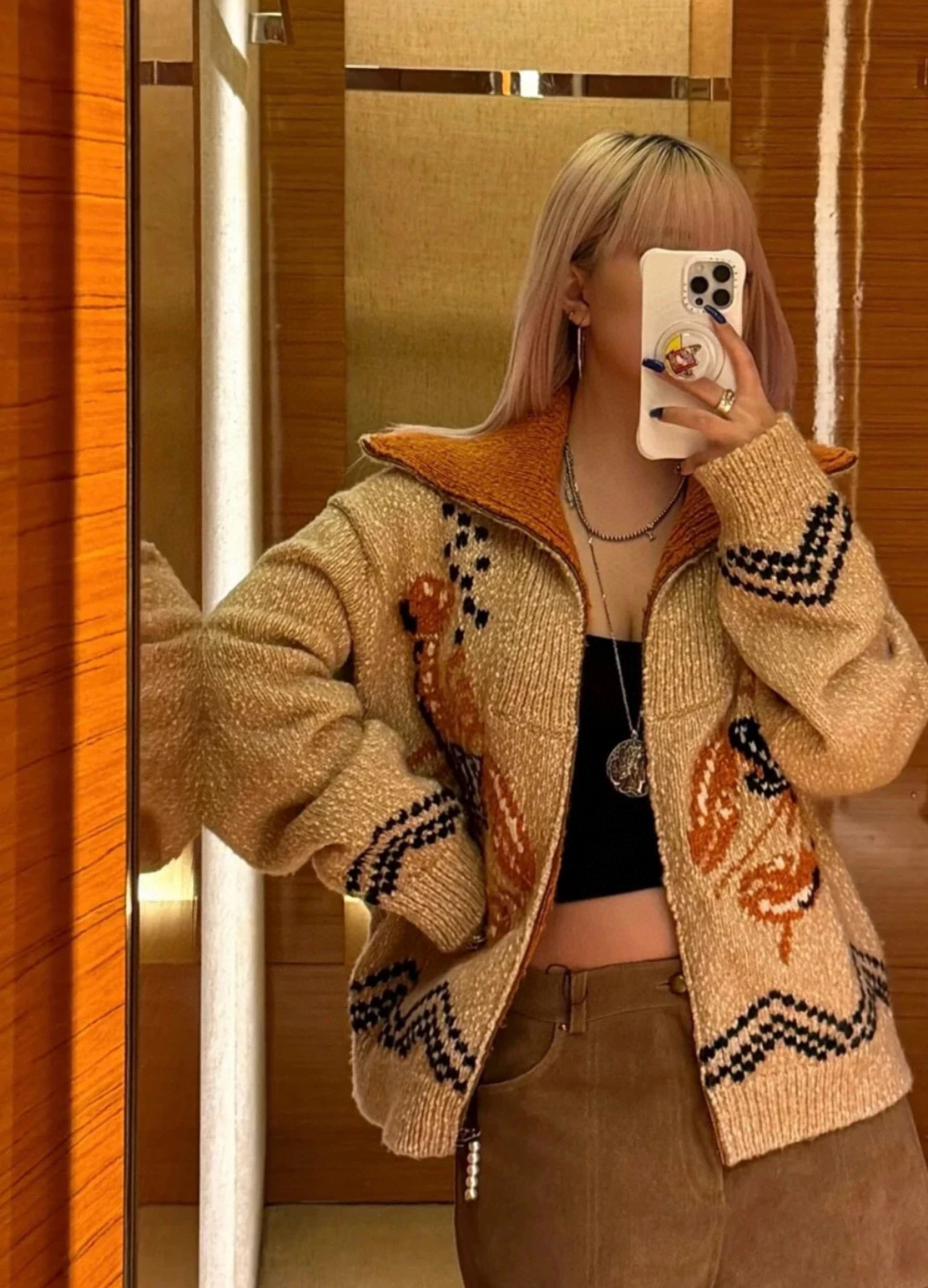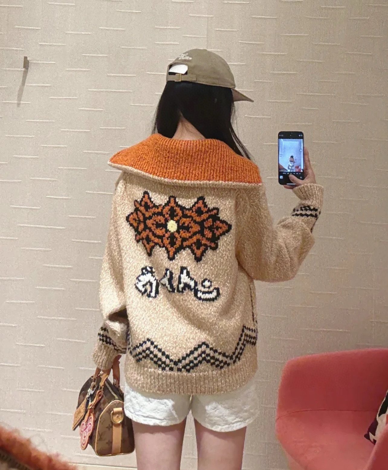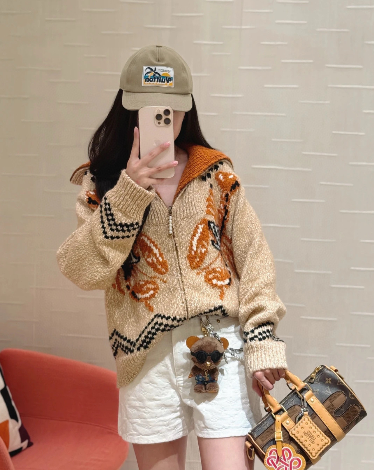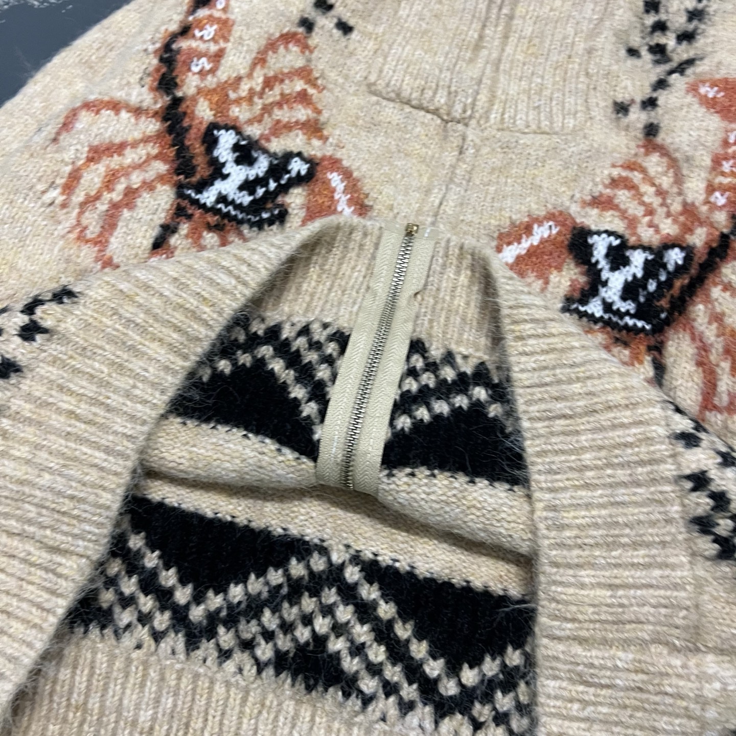 Louis Vuitton LV 路易威登 25ss联名款锦鲤提花粉花logo女款高领大翻领两穿针织毛衣珍珠拉链开衫 顶级南油版本