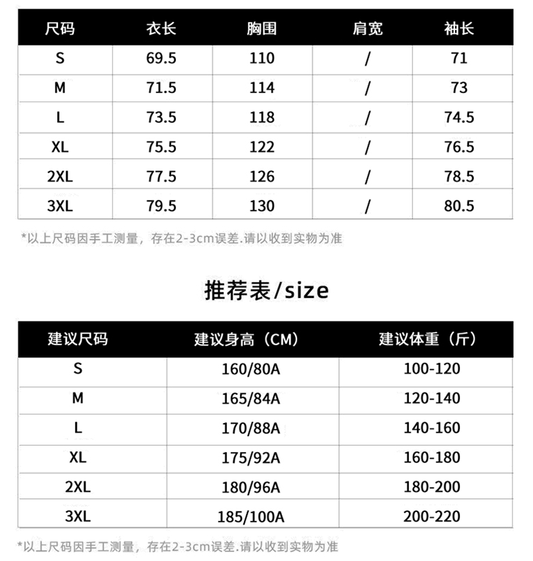 尺码 S 3XL