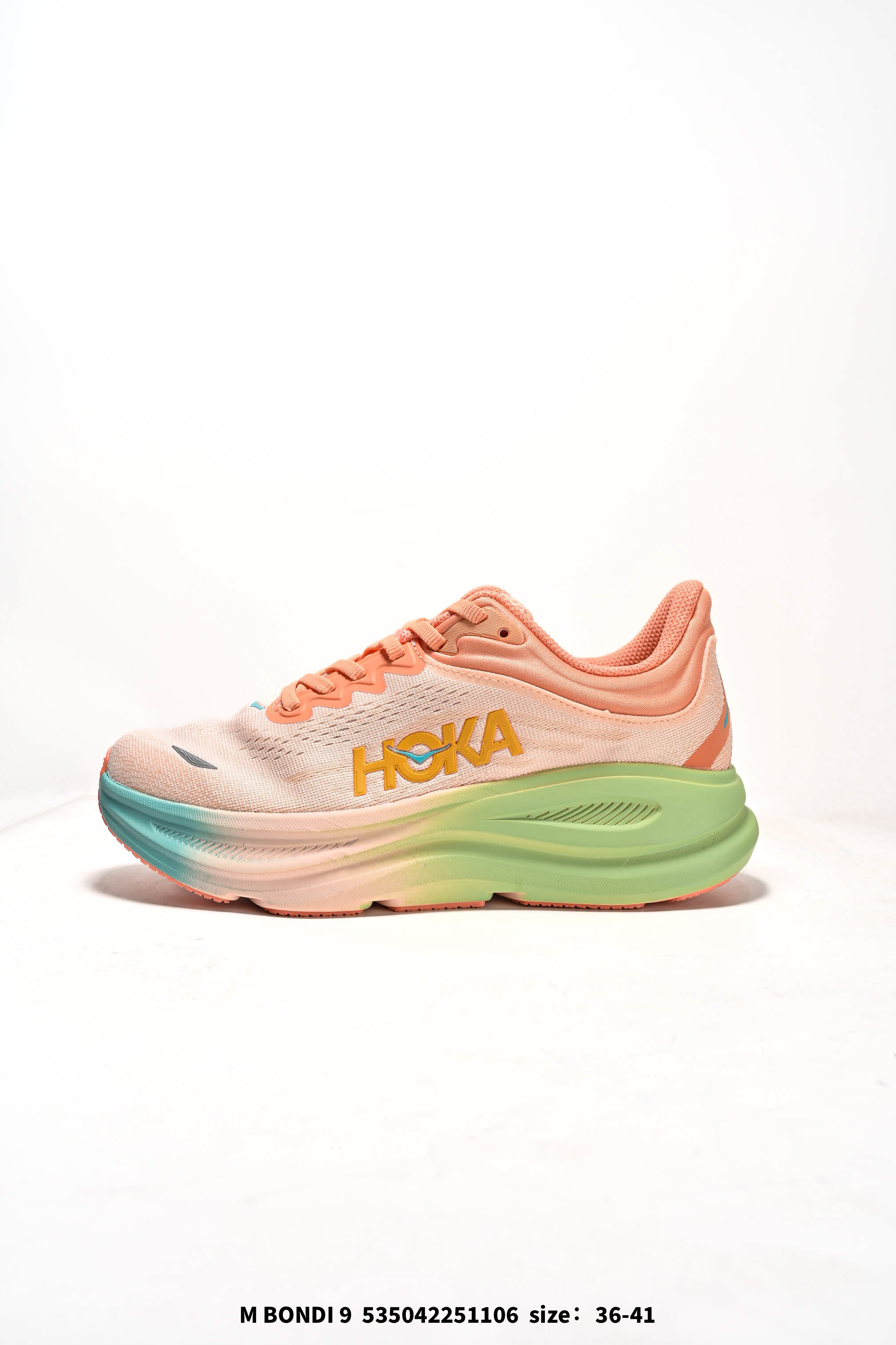 HOKA畅行无阻 HOKA ONE ONE Bondi 9 舒适百搭耐磨轻便 低帮跑步鞋 男女款 Bondi 9 最显著的变化在于其鞋底单元 原本扎实可靠的鞋底变得更加厚实 其厚度堪称 近乎巨型尺寸 对于钟情超厚底结构的消费者而言 无疑是最佳选择之一 在 HOKA 的新季展示会上 Bondi 9 以全新造型亮相 不仅外观升级 性能也得到官方宣称的显著提升 在重量方面 以美国男士 10 码为例 它比前代整体轻将近一盎司 实现了轻量化突破 这双鞋搭载 HOKA 最大缓冲中底 使鞋底增加两毫米高度 同时加持超临界泡沫 这种先进 轻便且富含弹性的高机能材料 为穿着者提供更卓越的缓震体验 此外 重新设计的 3D 模制鞋领和针织鞋面 能更加贴合脚部 提升穿着舒适度