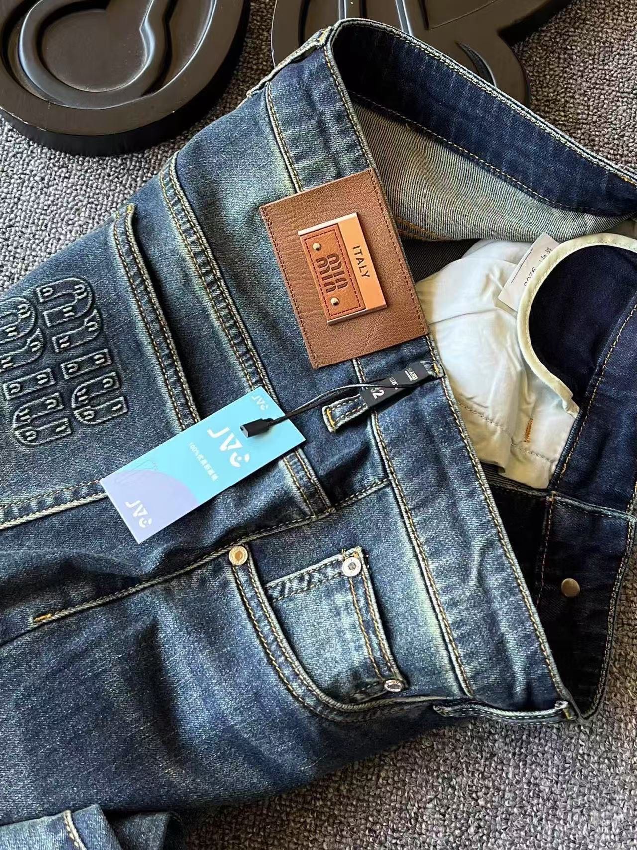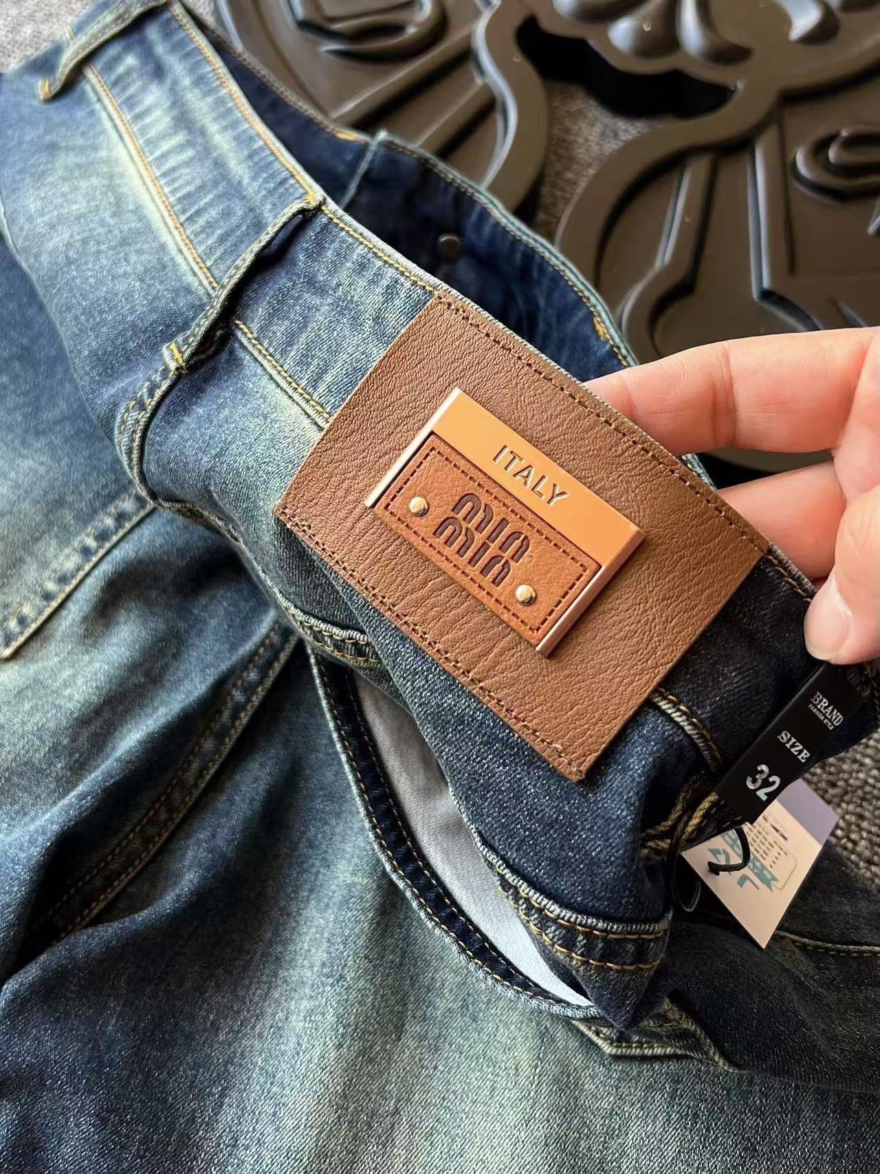 细节细节再细节 Miu Miu家商场新品重工水洗牛仔裤 精致纱洗视觉效果立体 层次感分明的同时自带高级感 腰口三层组合金属棕色皮标 口袋做了Miu Miu立体凹凸高频工艺 精致感拉满