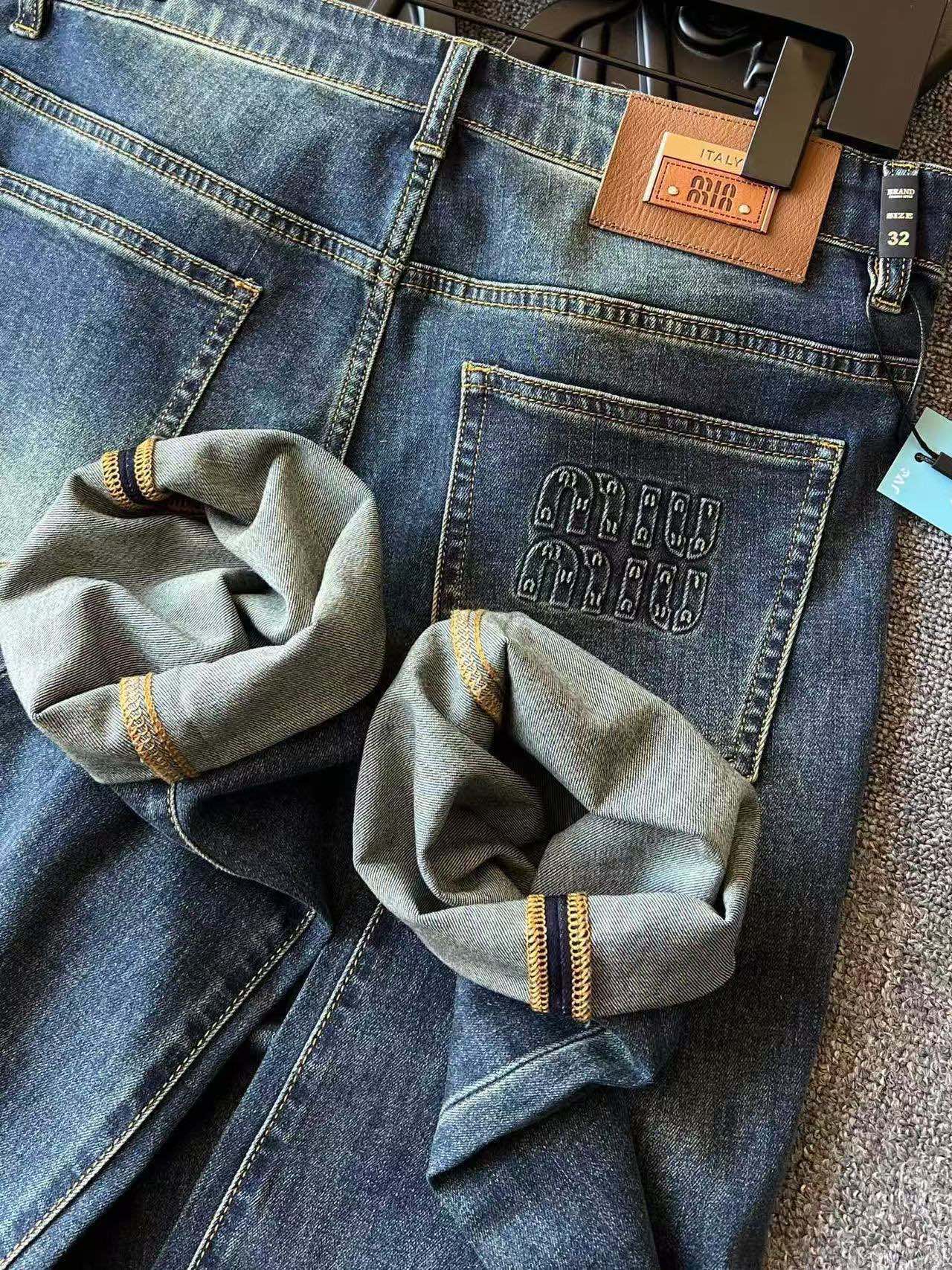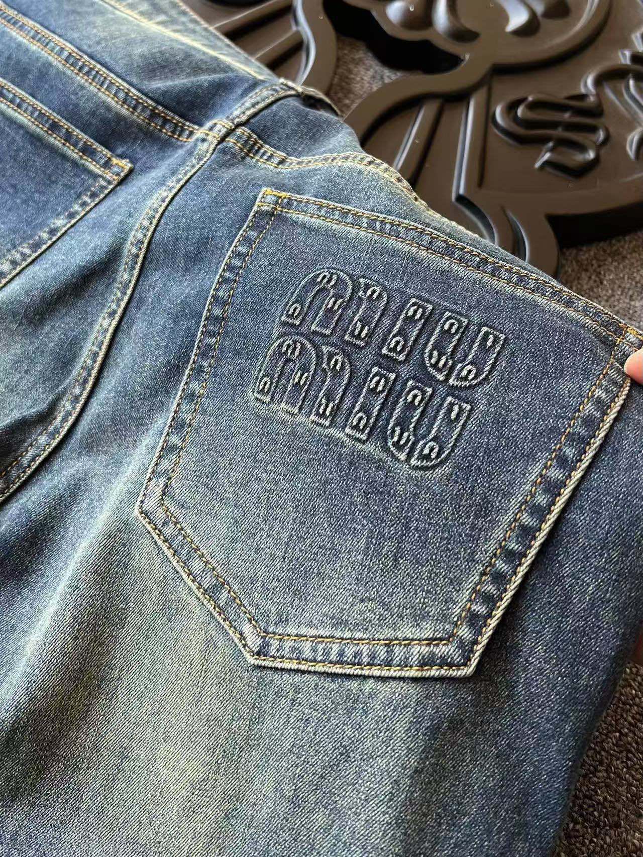人气爆款 Prada 普拉达Miu Miu系列高端重工水洗牛仔裤 恒隆在售万元级 款号 9263