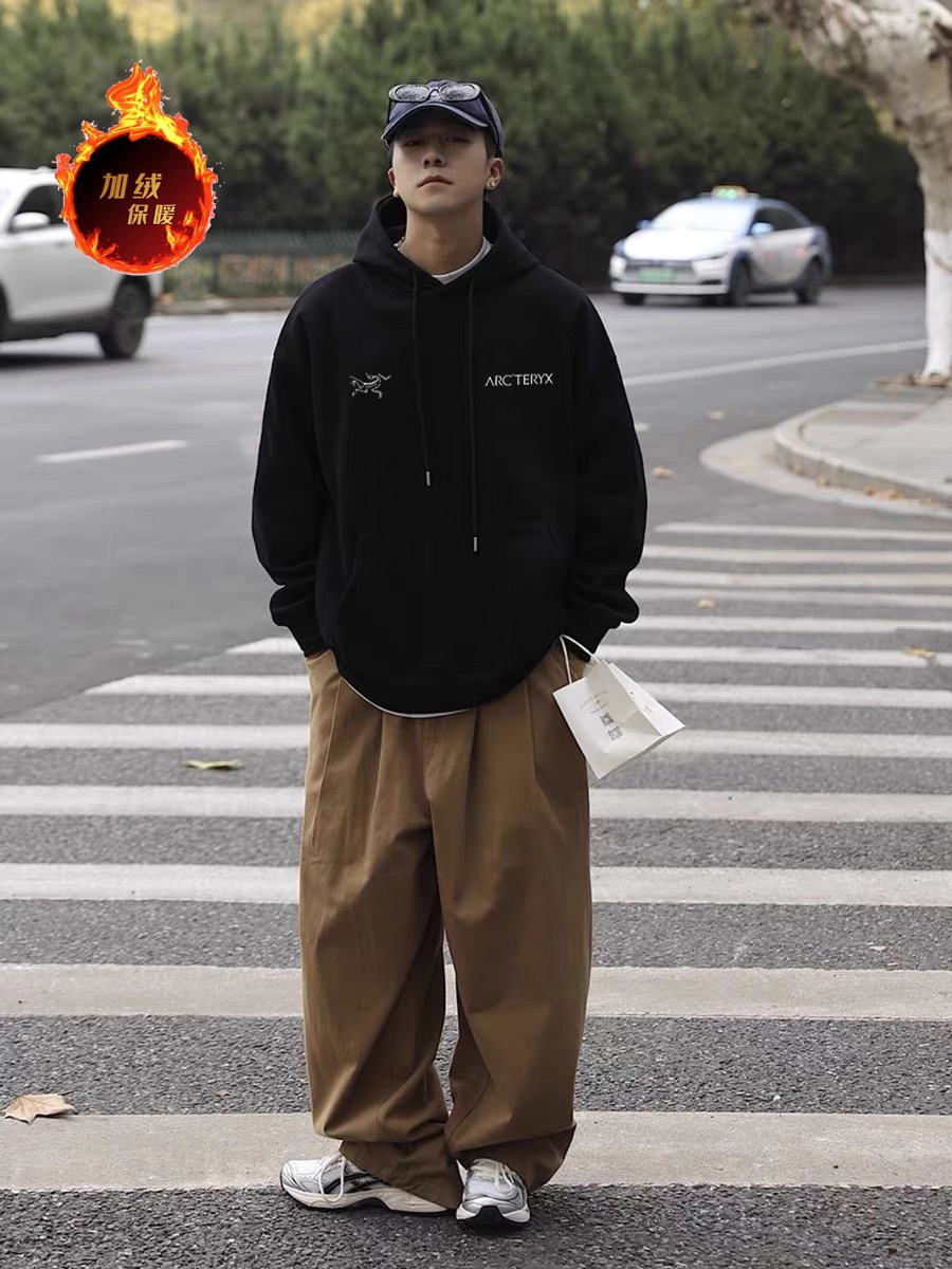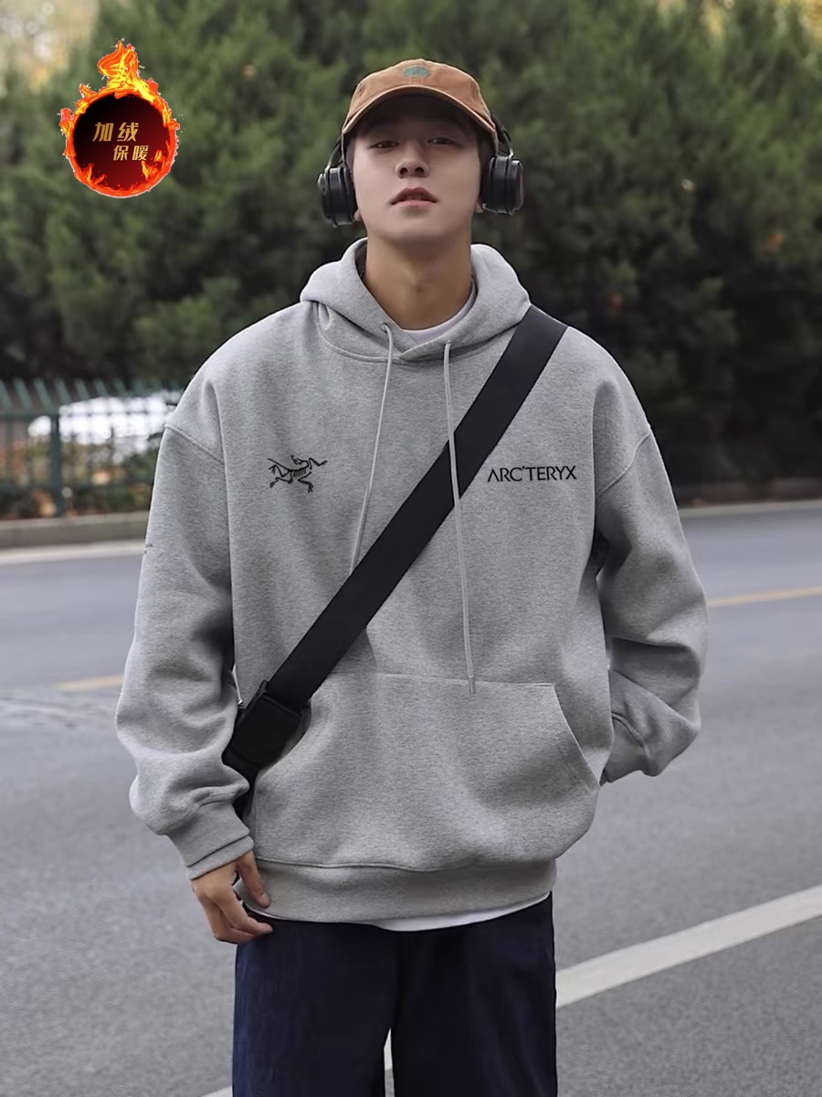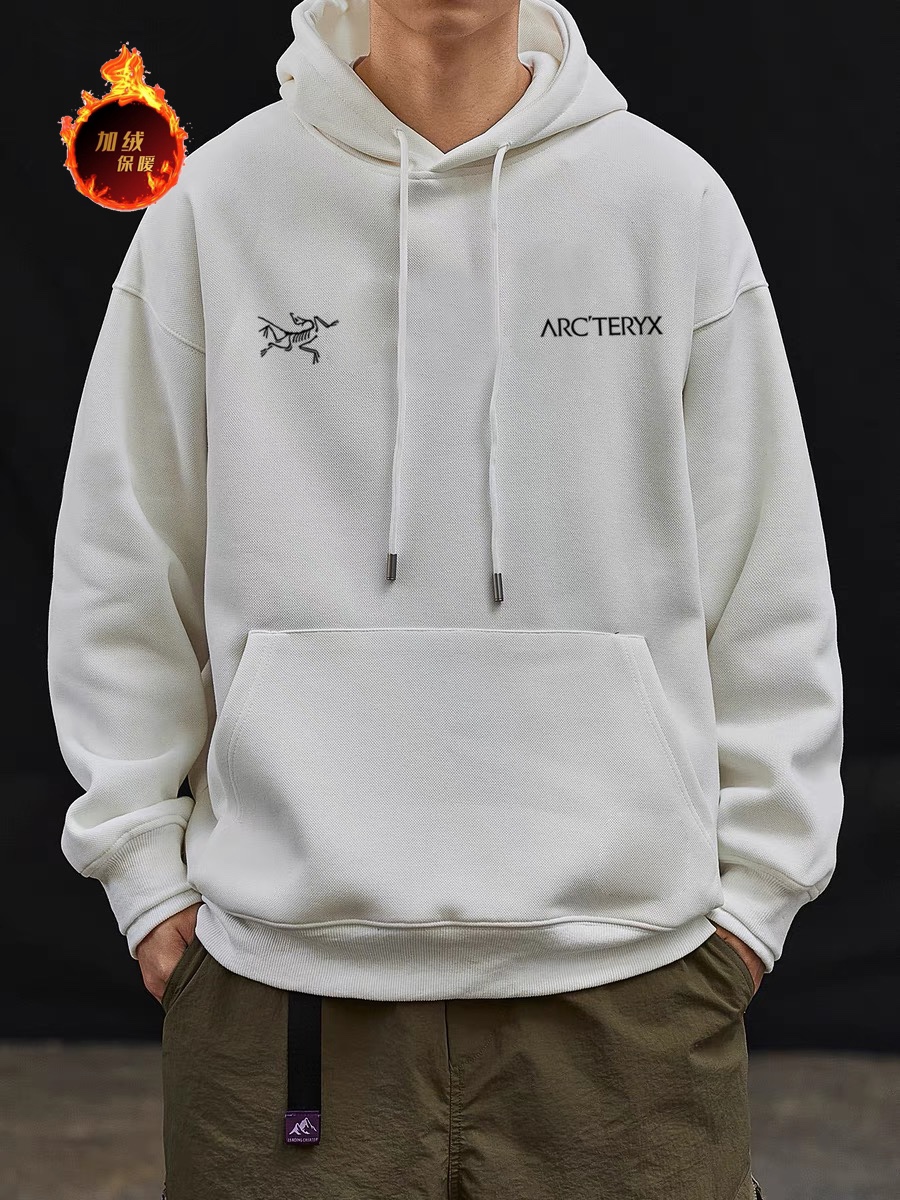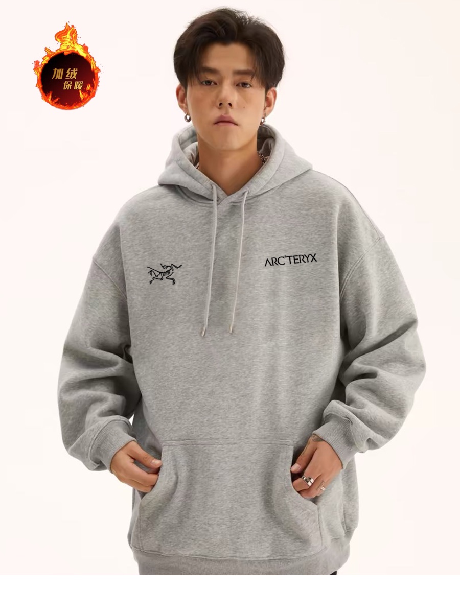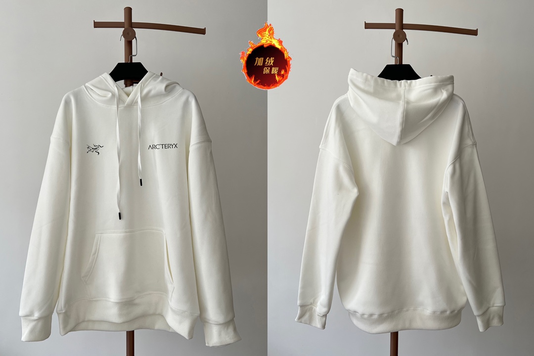 高品质加绒加厚 始祖鸟 ARC TERYX 左右双logo 银狐绒加绒连帽卫衣 男女同款 2024秋冬新款