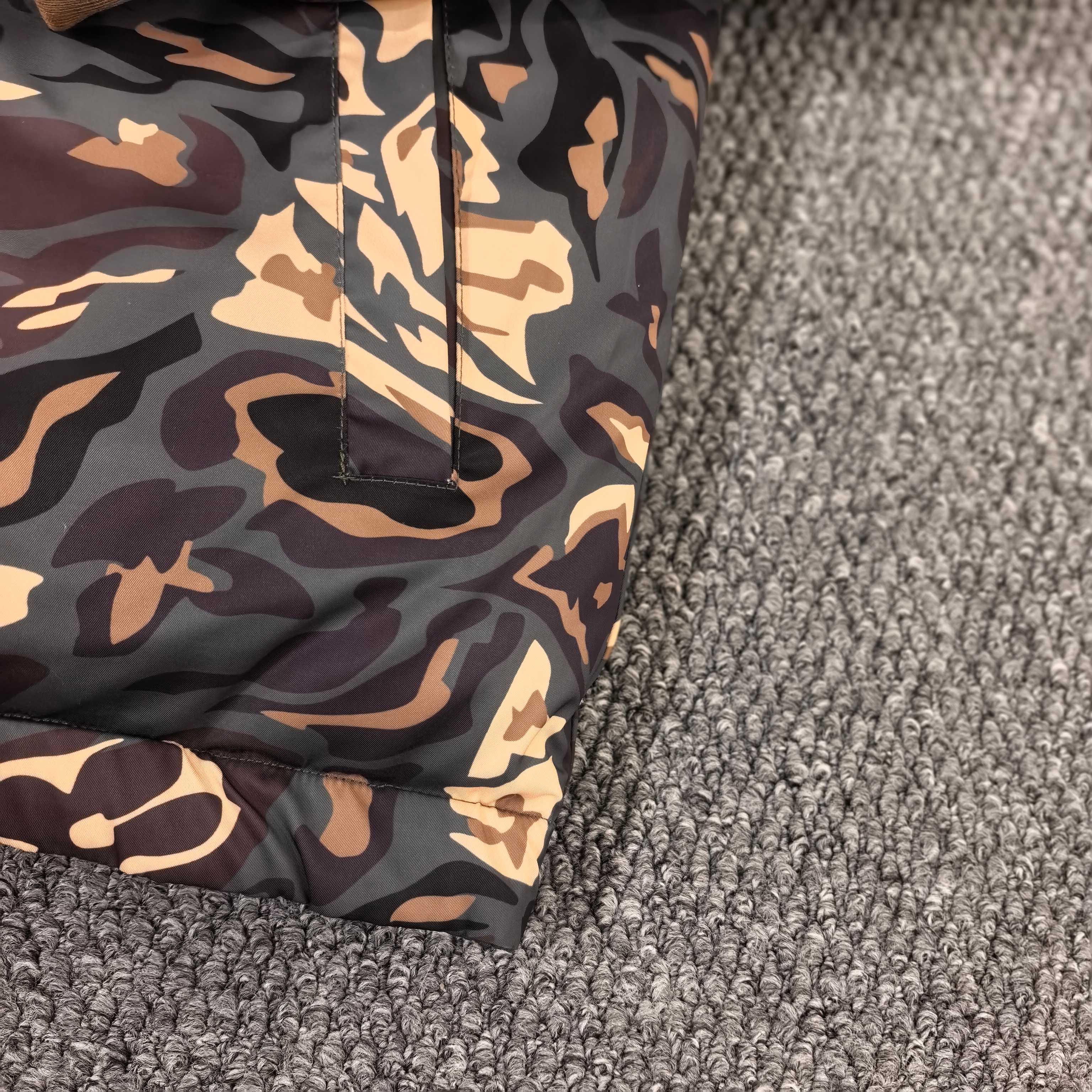 细节设计 两面均有罗纹衣领和袖口 以及弹性腰围 能有效防风保暖 迷彩面设有2个拉链口袋 纯色面则有2个按扣口袋 方便收纳小物件