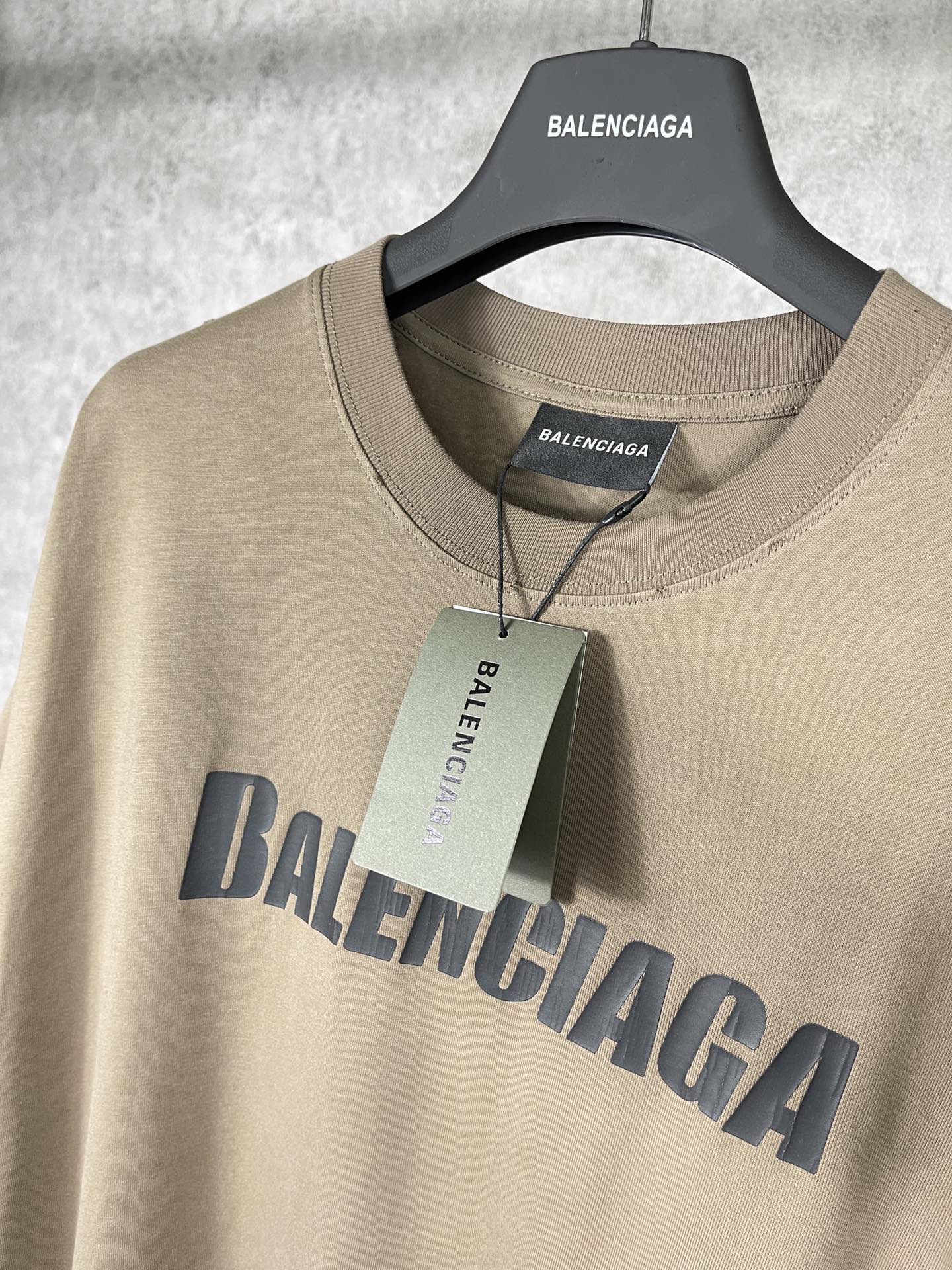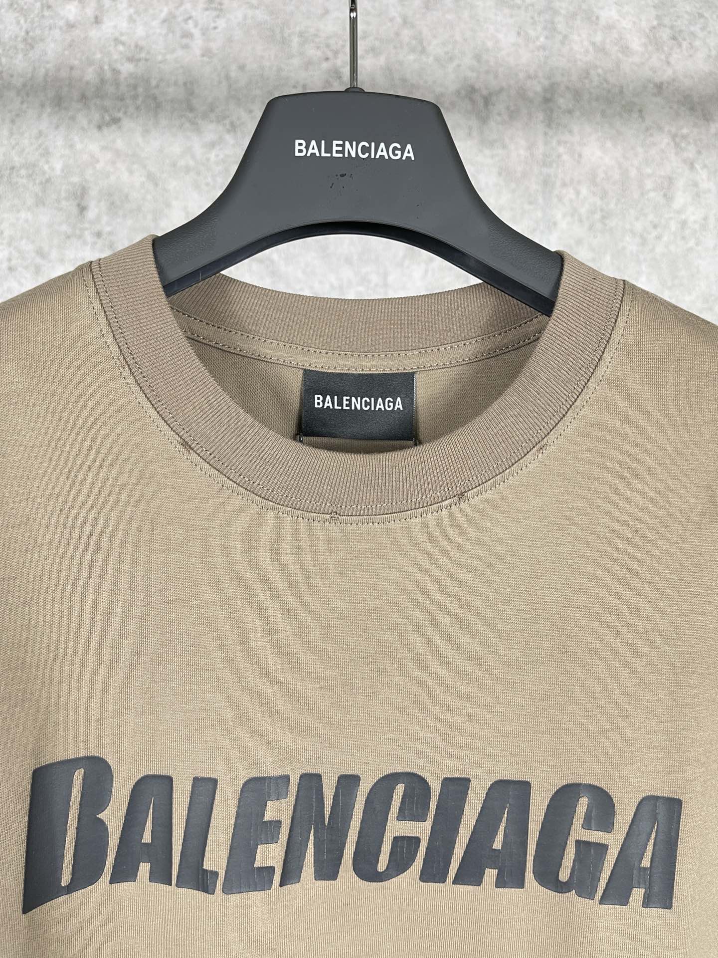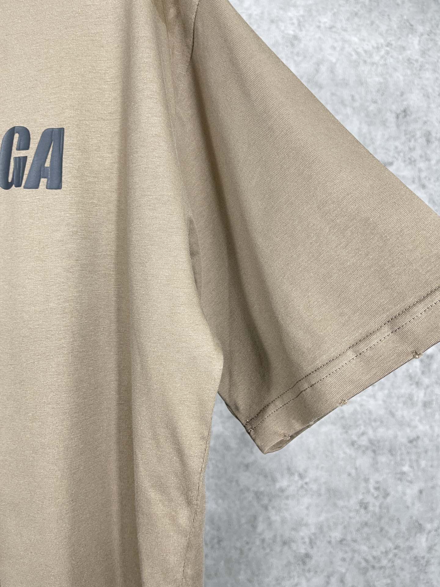 实拍图 顶级版本 官网品质 BALENCI GA 巴黎 2023新款 经典字母LOGO印花做旧磨烂短袖T恤 砖柜同步 面料采用巴黎ZP定织定染全棉双纱紧密棉 克重260克 布面干净 布纹清晰 柔软舒适 螺纹釆用定染无色差 经典图案采用环保进口材料印花 精密印花网板 字母清晰 效果立体 还原砖柜 成衣多位手工磨烂做旧 巨别市场通货 欢迎对比 版型釆用OS宽松落肩版型 男女同款