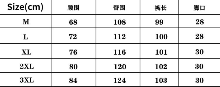 尺码 M 3XL