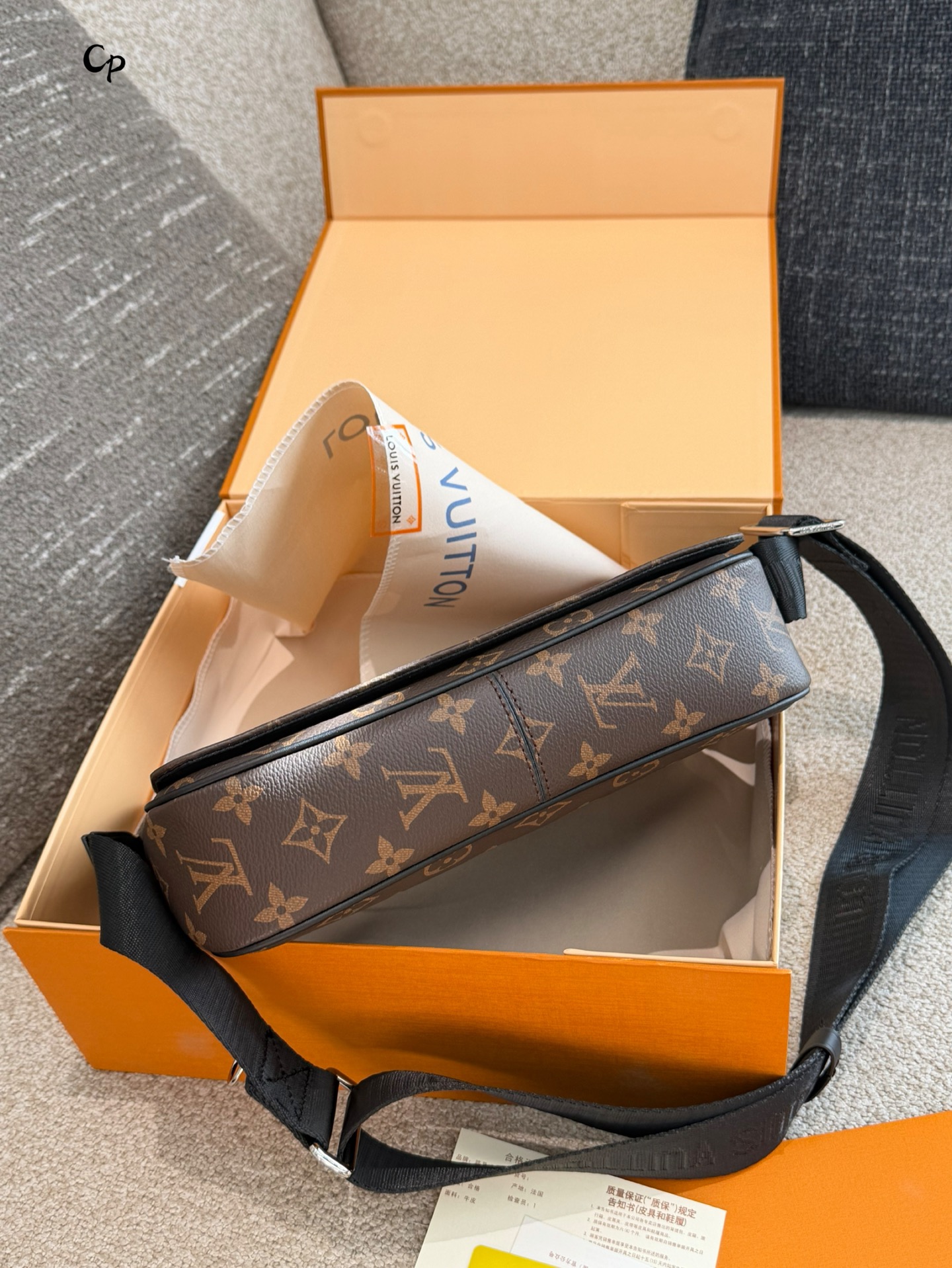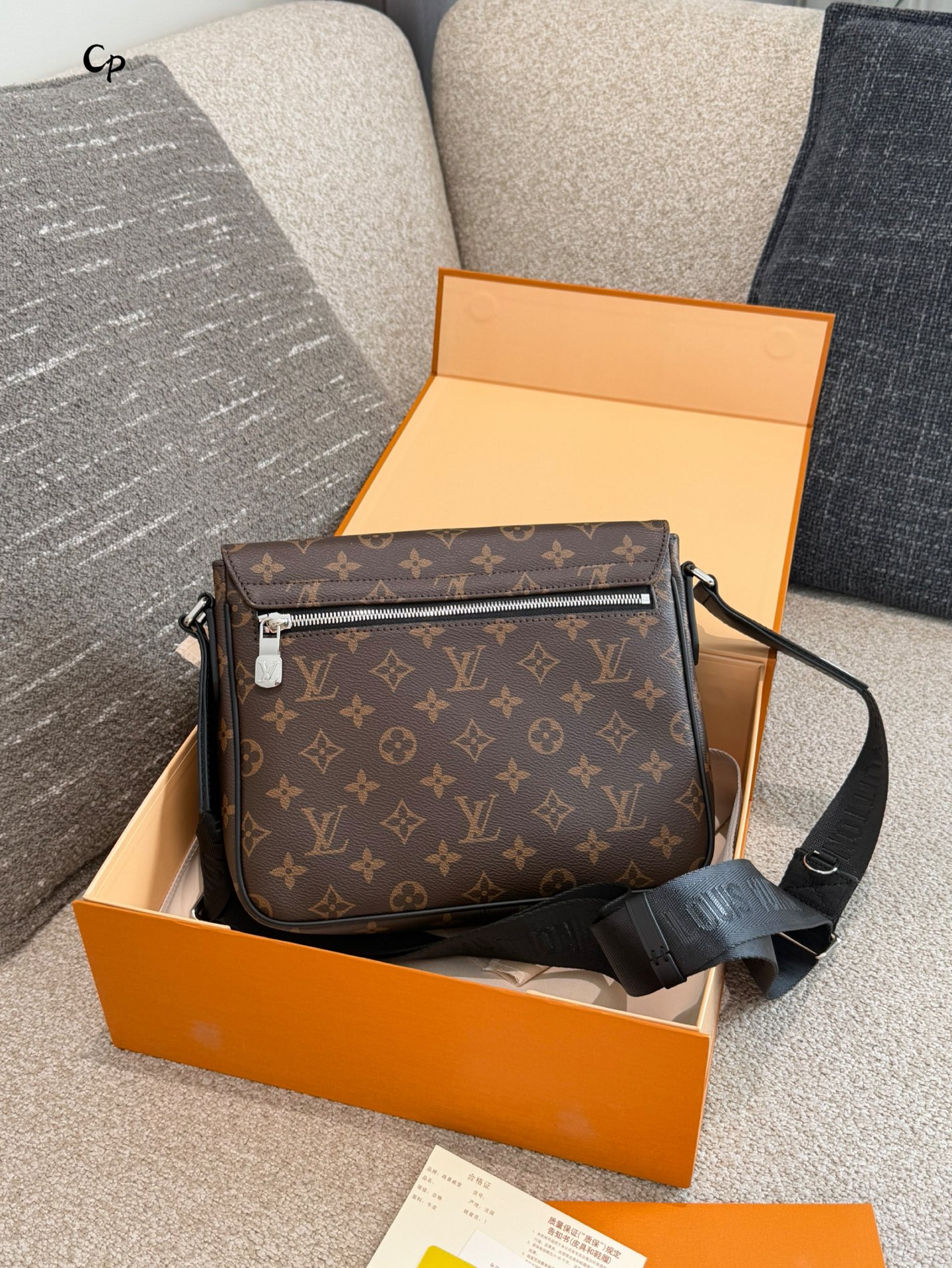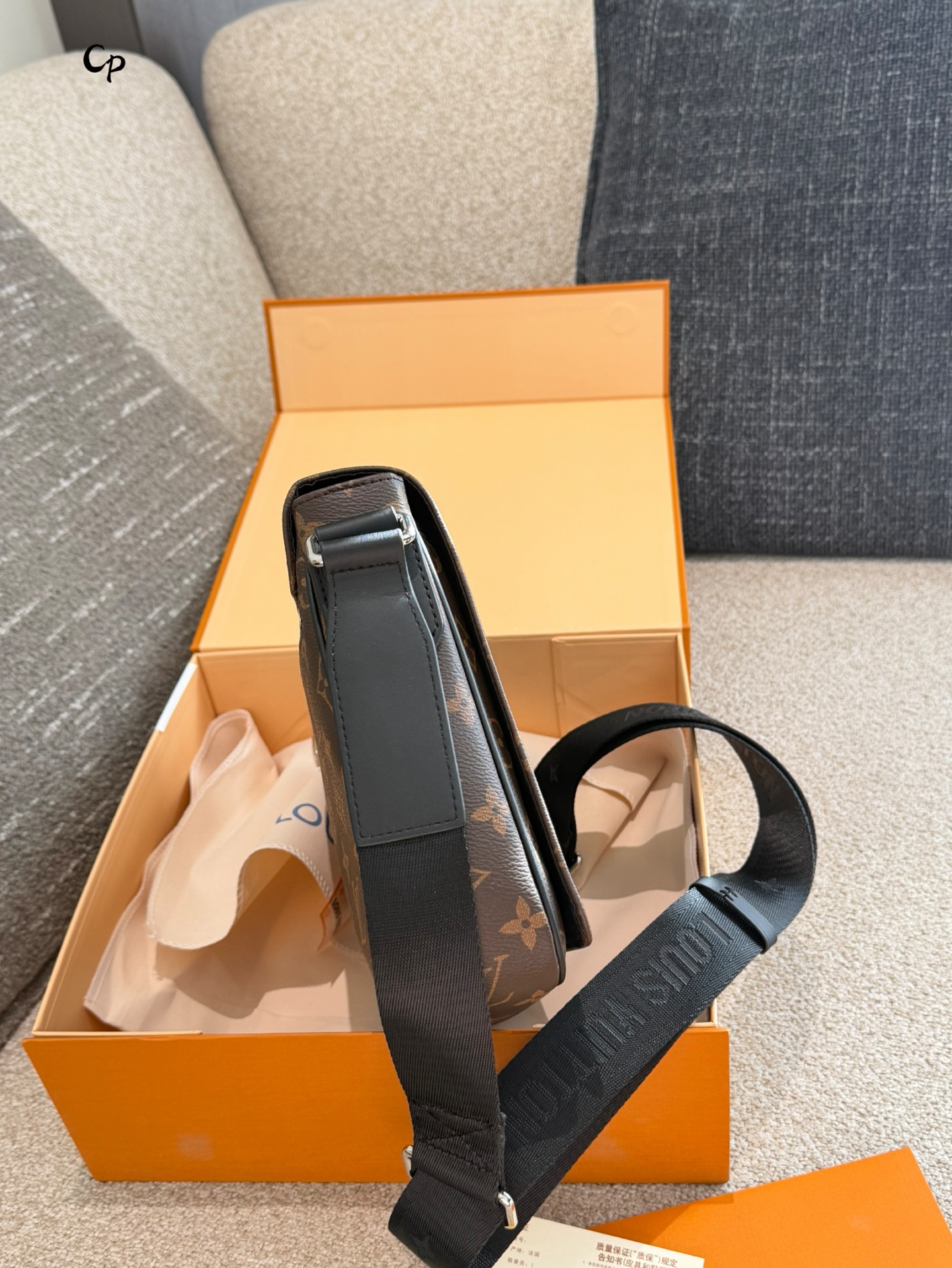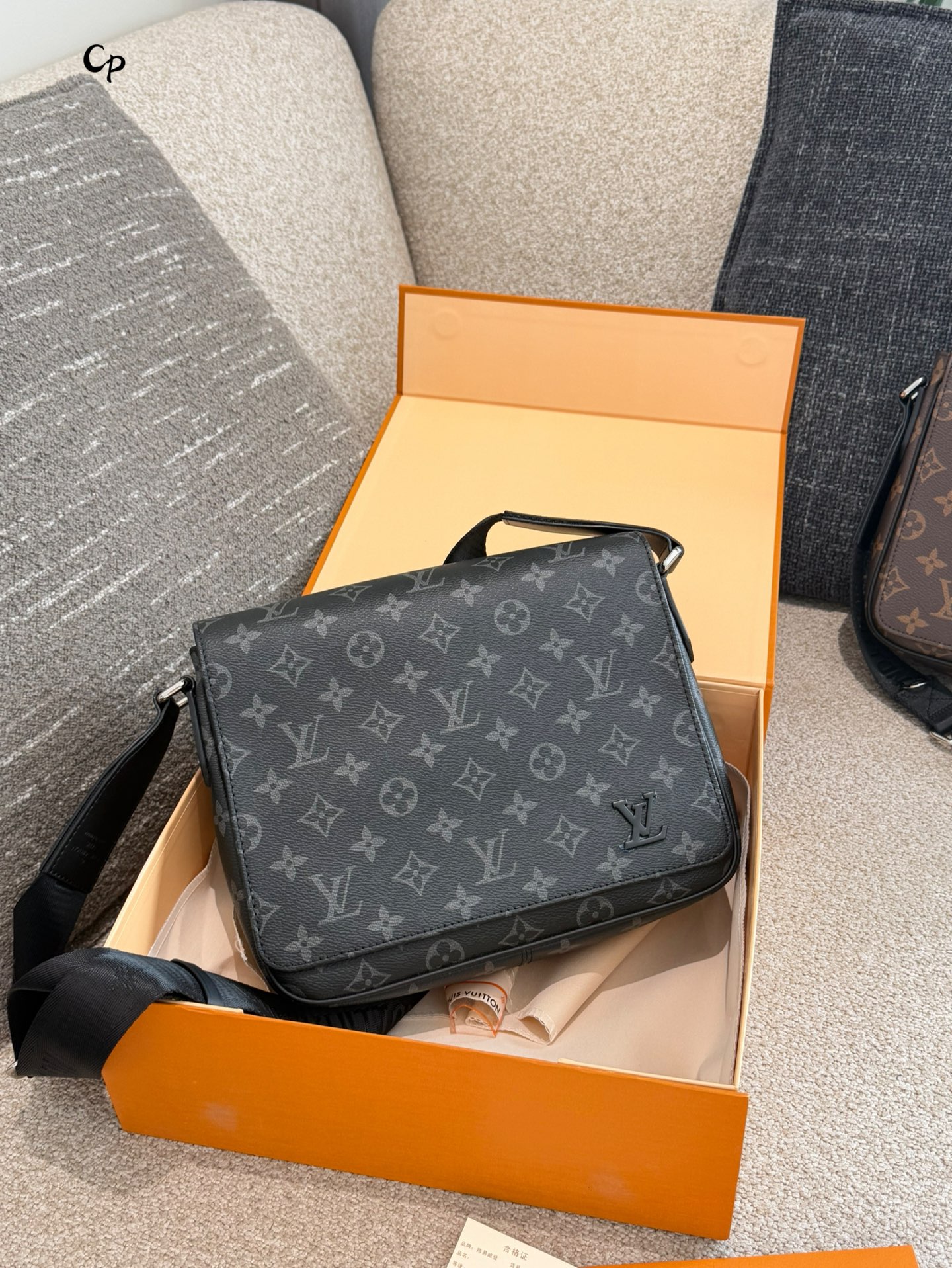 使用到 Monogram Eclipse 涂层帆布 牛皮革饰边 条纹织物内衬 金属件等使用的皮革来自经过 Leather Working Group LWG 审核和认证的制革厂