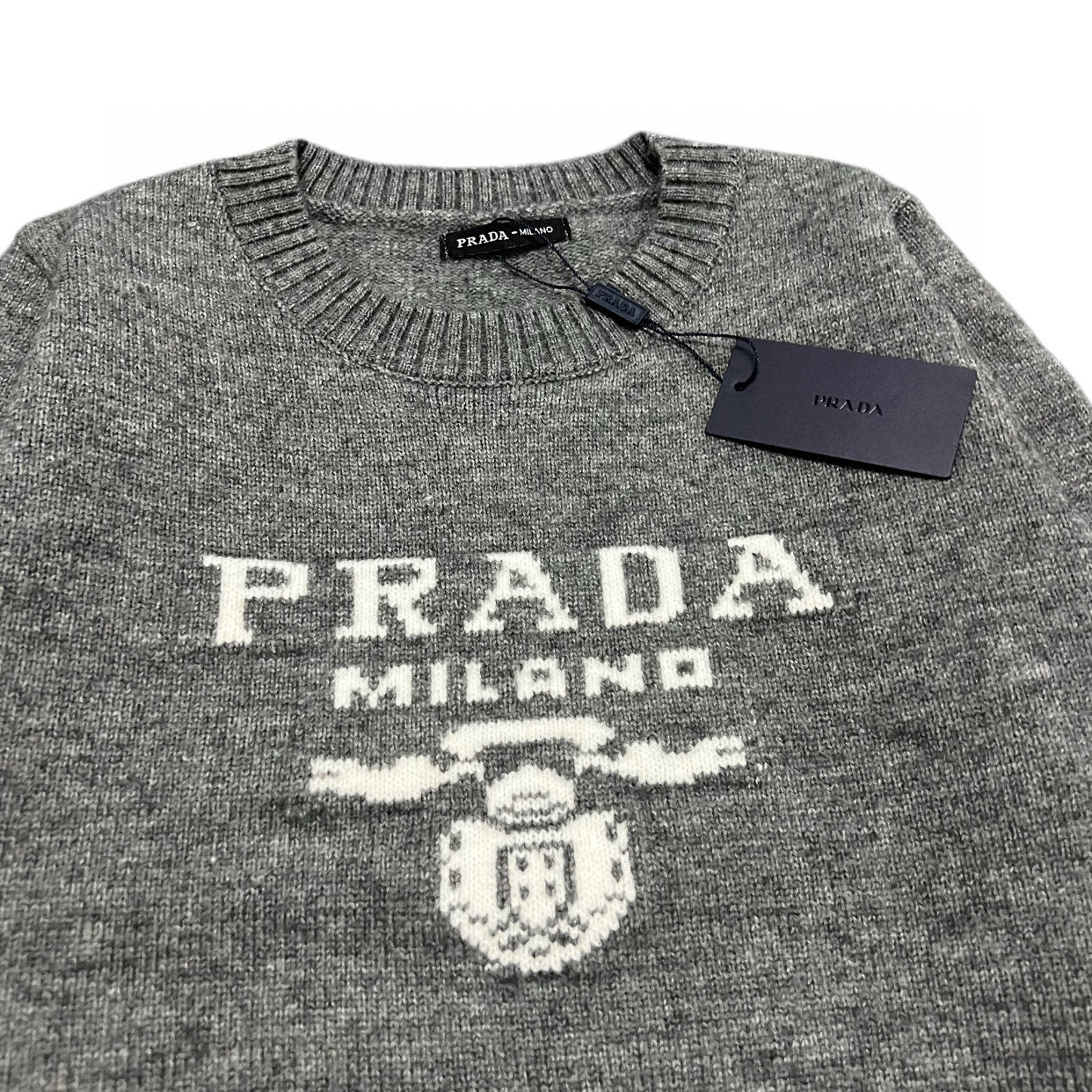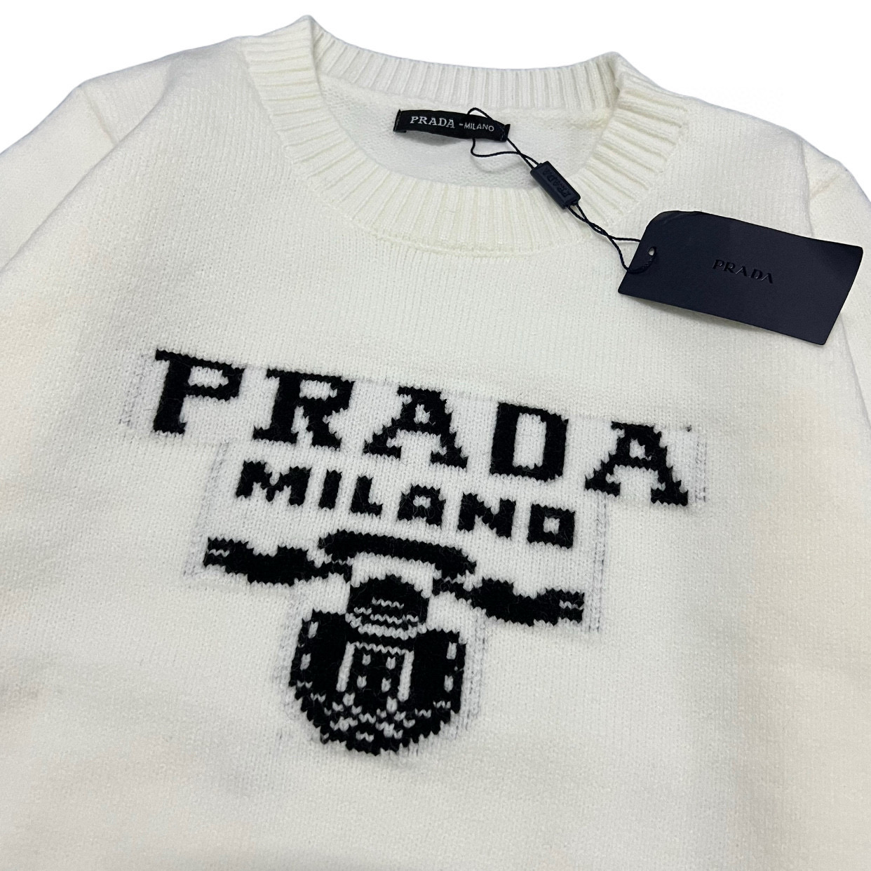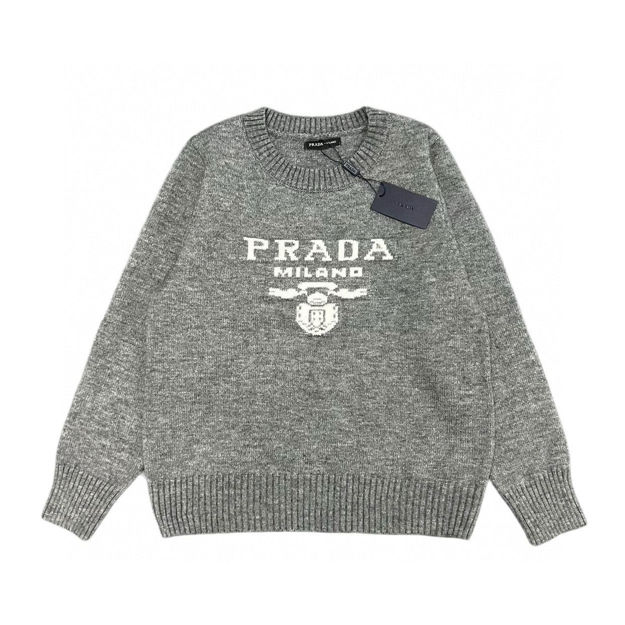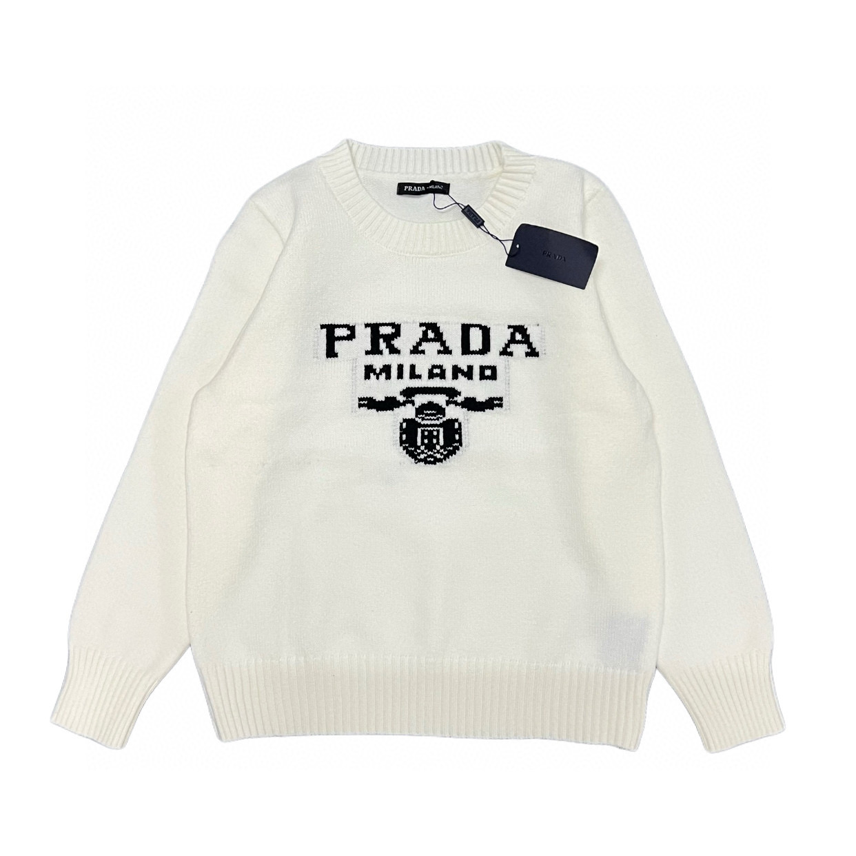Prada 普拉达 经典三角标提花字母logo大标情侣圆领针织毛衣 代购级品质