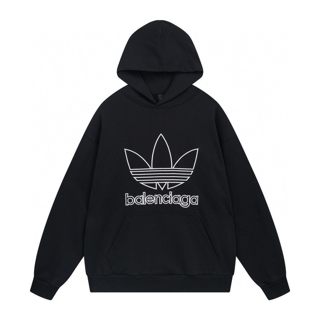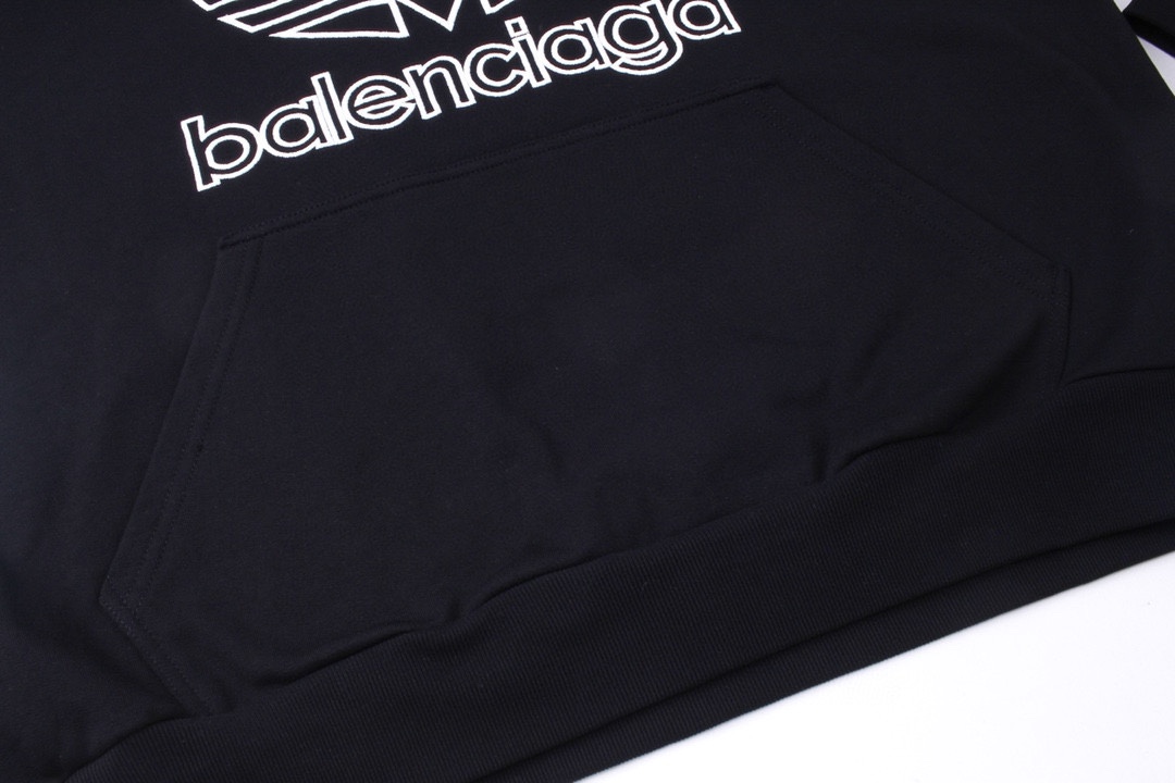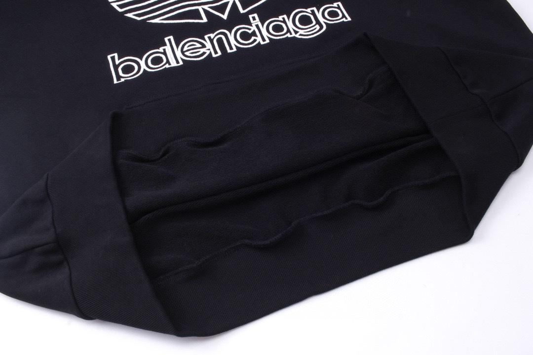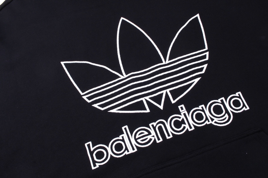 细节图 顶级版本 官网品质 BALENCI GA 巴黎联名Adidas前面刺绣LOGO长袖连帽卫衣