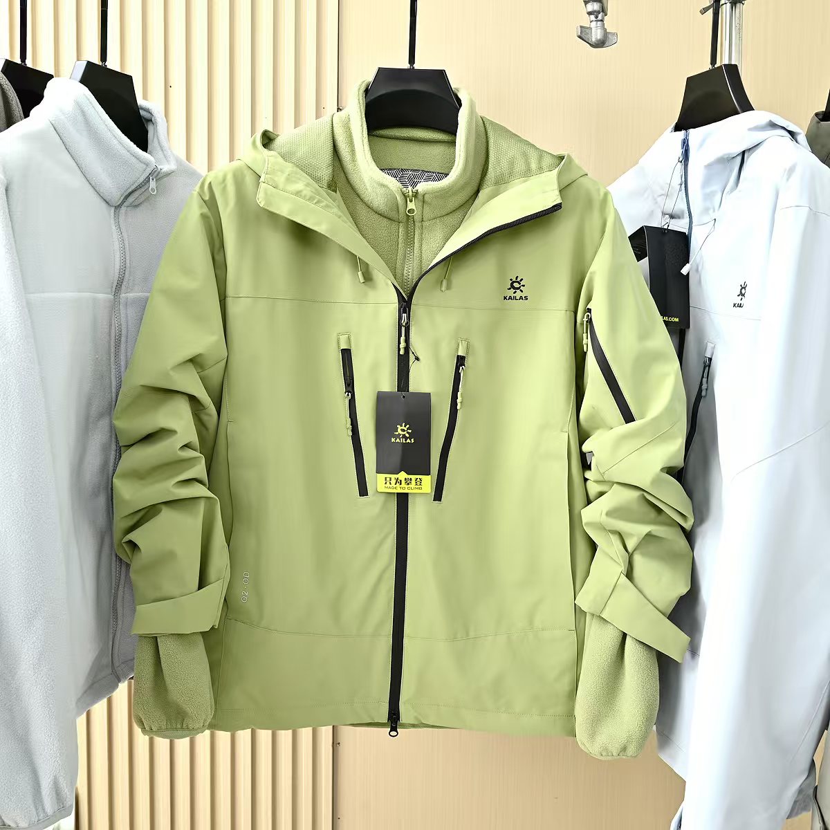 KAILAS 凯乐石秋冬男款女款户外三防面料三合一俩件套连帽冲锋衣 一衣三穿 三合一可拆卸内胆 功能性冲锋衣外套 绒内胆 冲锋衣面料采用黑科技 内胆保暖加倍 拒绝臃肿 保暖超越羽绒服
