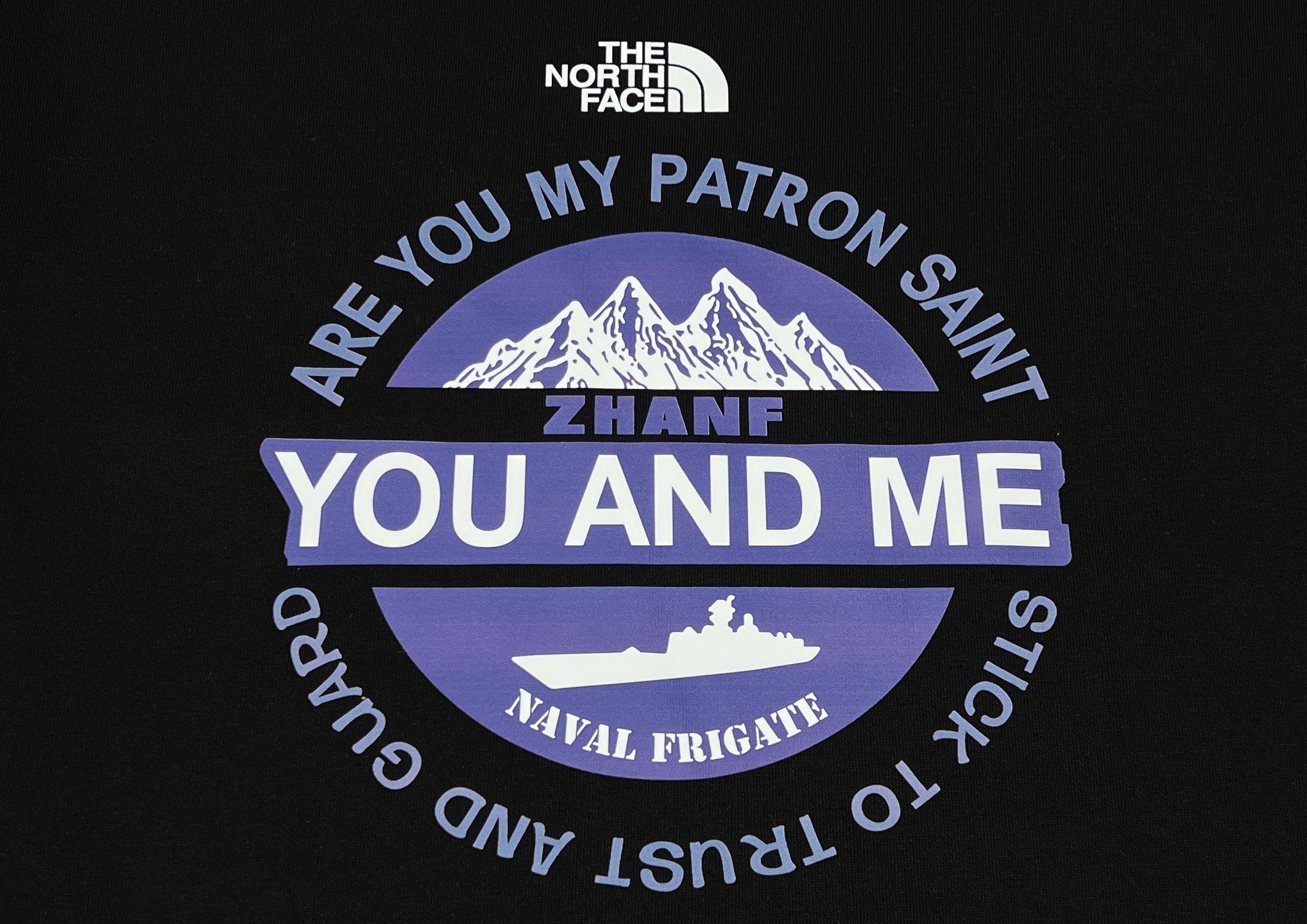 工艺 印花采用高密胶浆工艺 色彩饱和度高 细节清晰 雪山的棱角 舰艇的轮廓都如照片般立体 领口 袖口的罗纹收口紧实不松垮 防风保暖 让寒风无缝可钻