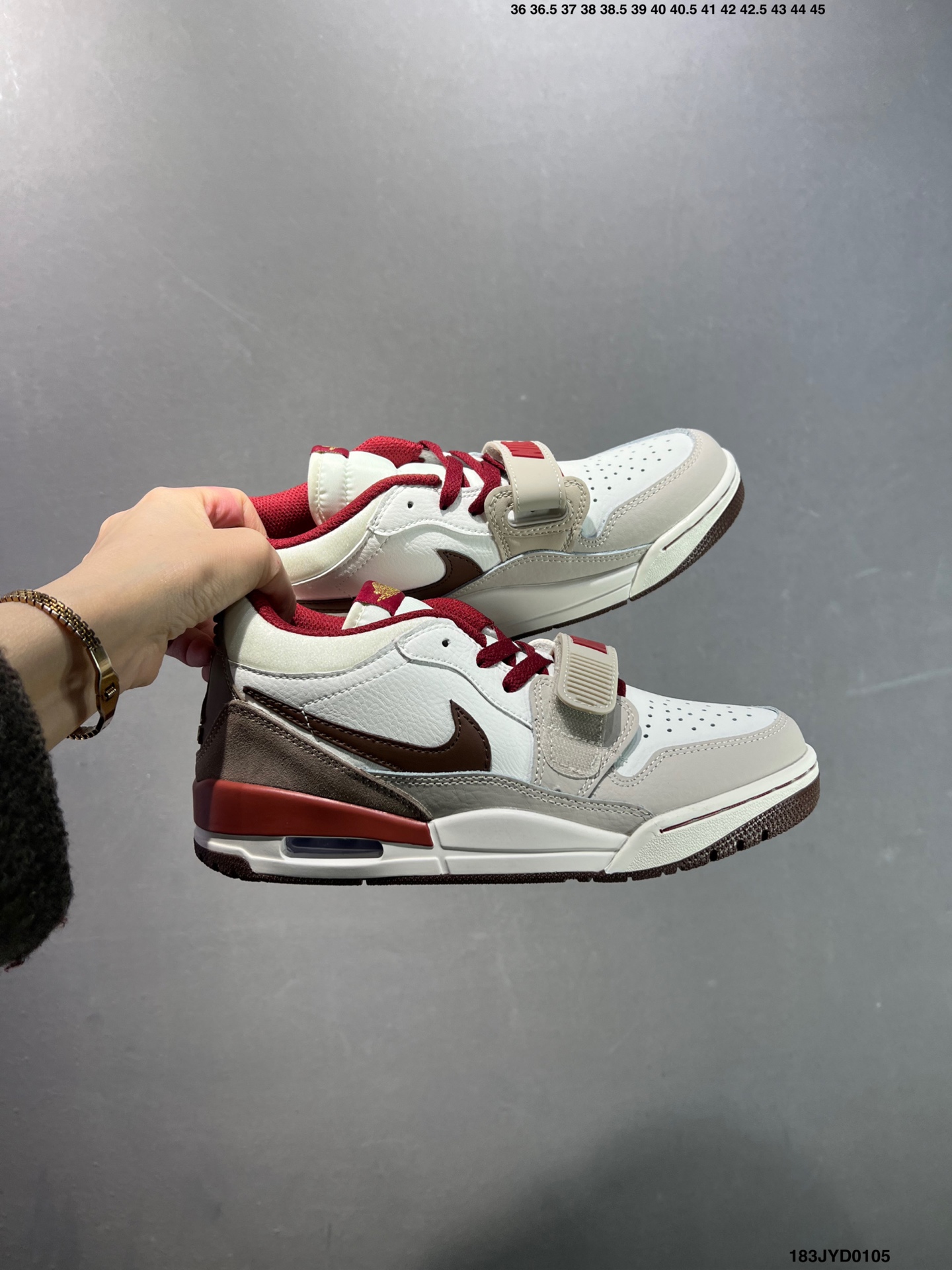 公司级耐克 Nike AJ312 Air Jordan Legacy 312 NRG Pure white 官方货号 CD7069 141乔丹联名号称 最强三合一 的 Jordan Legacy 312 自然有着杂交结合的设计 它的名字就展现出它所包含的鞋款元素 312 分别对应了 Air Jordan 3 Air Jordan 1 和 Air Trainer 2 将这三双经典又有不俗人气的鞋款融合 最强三合一 的名称由此得来 Size 36 44半码 ID 183JYD0105
