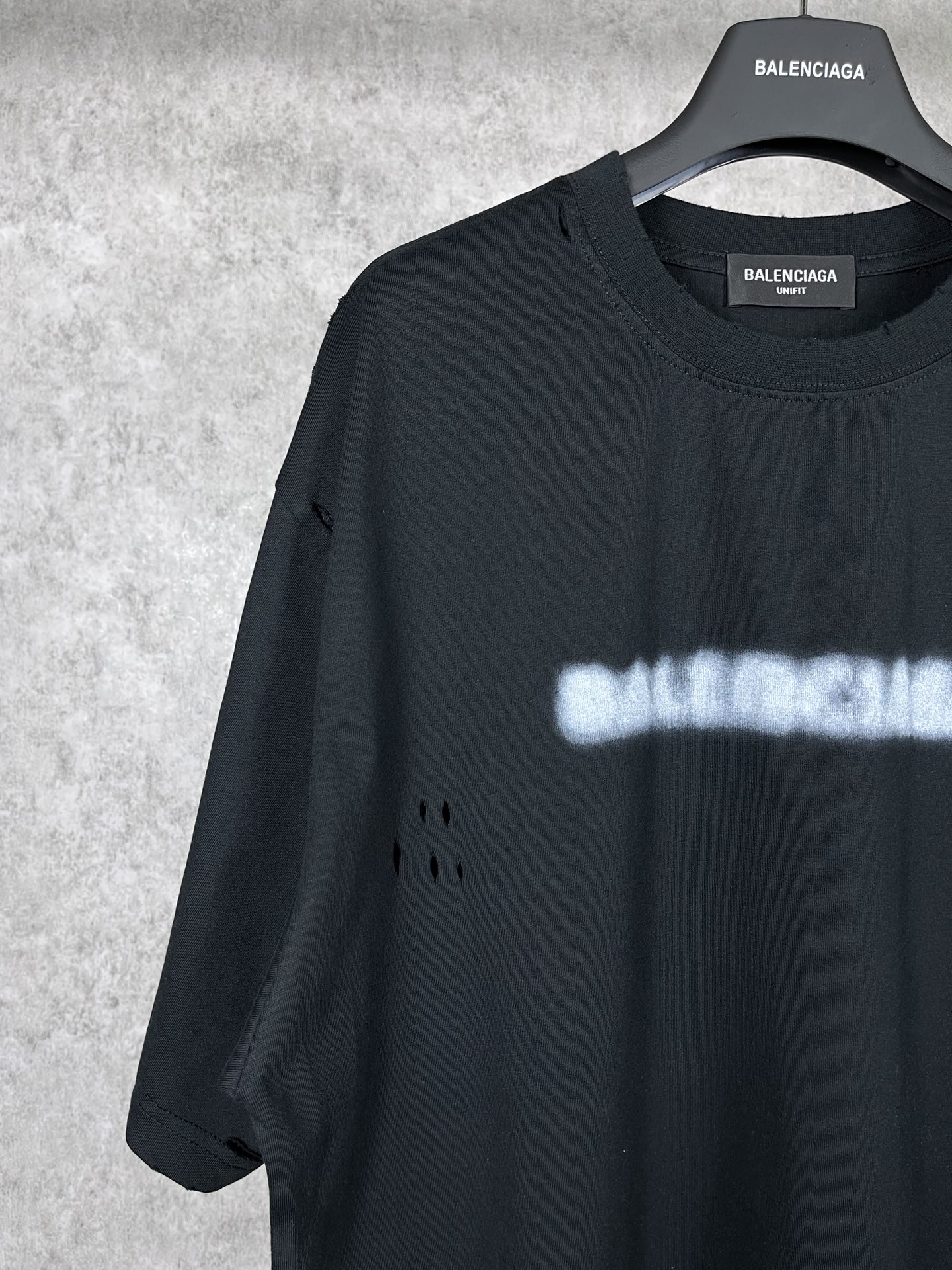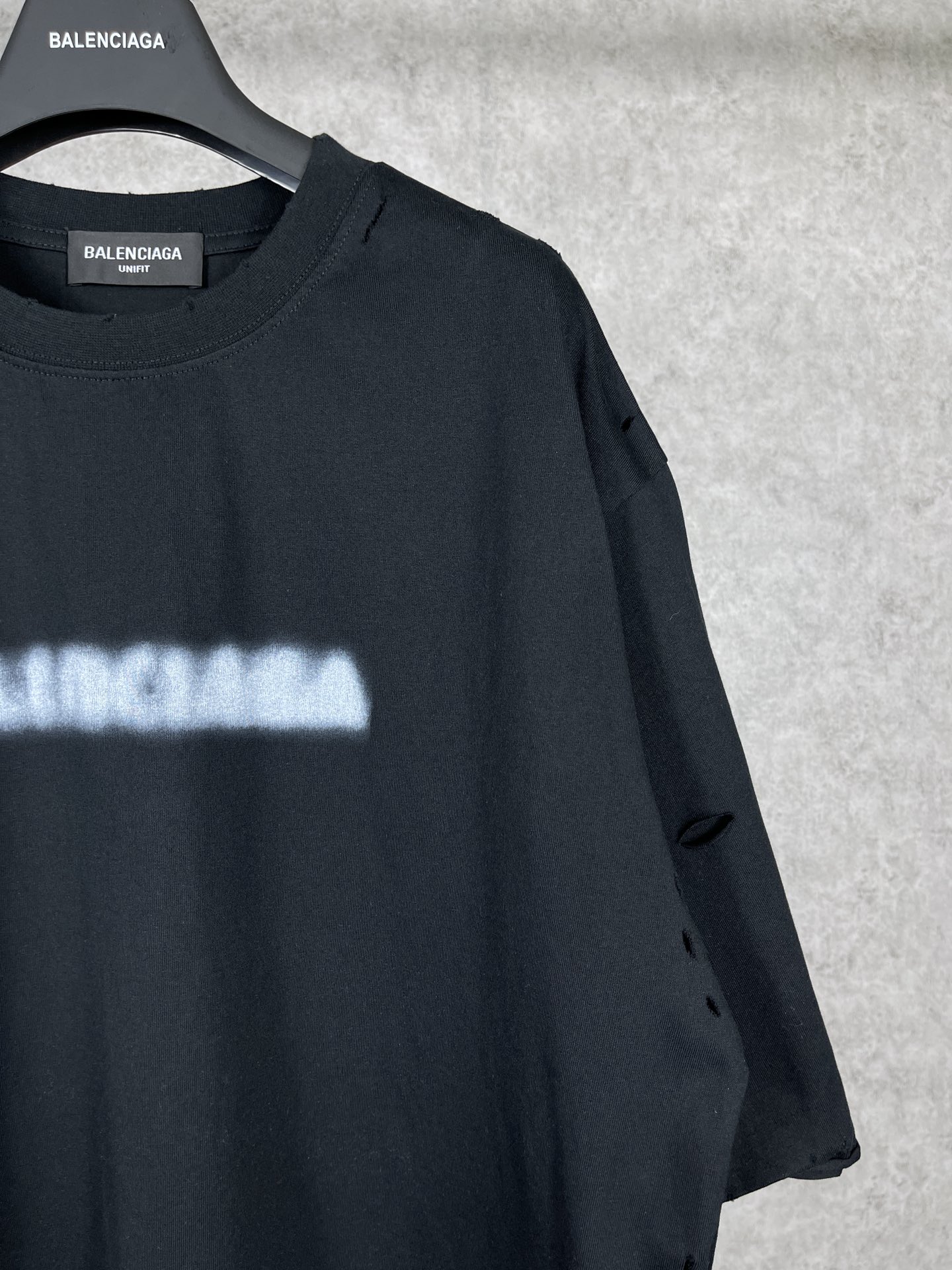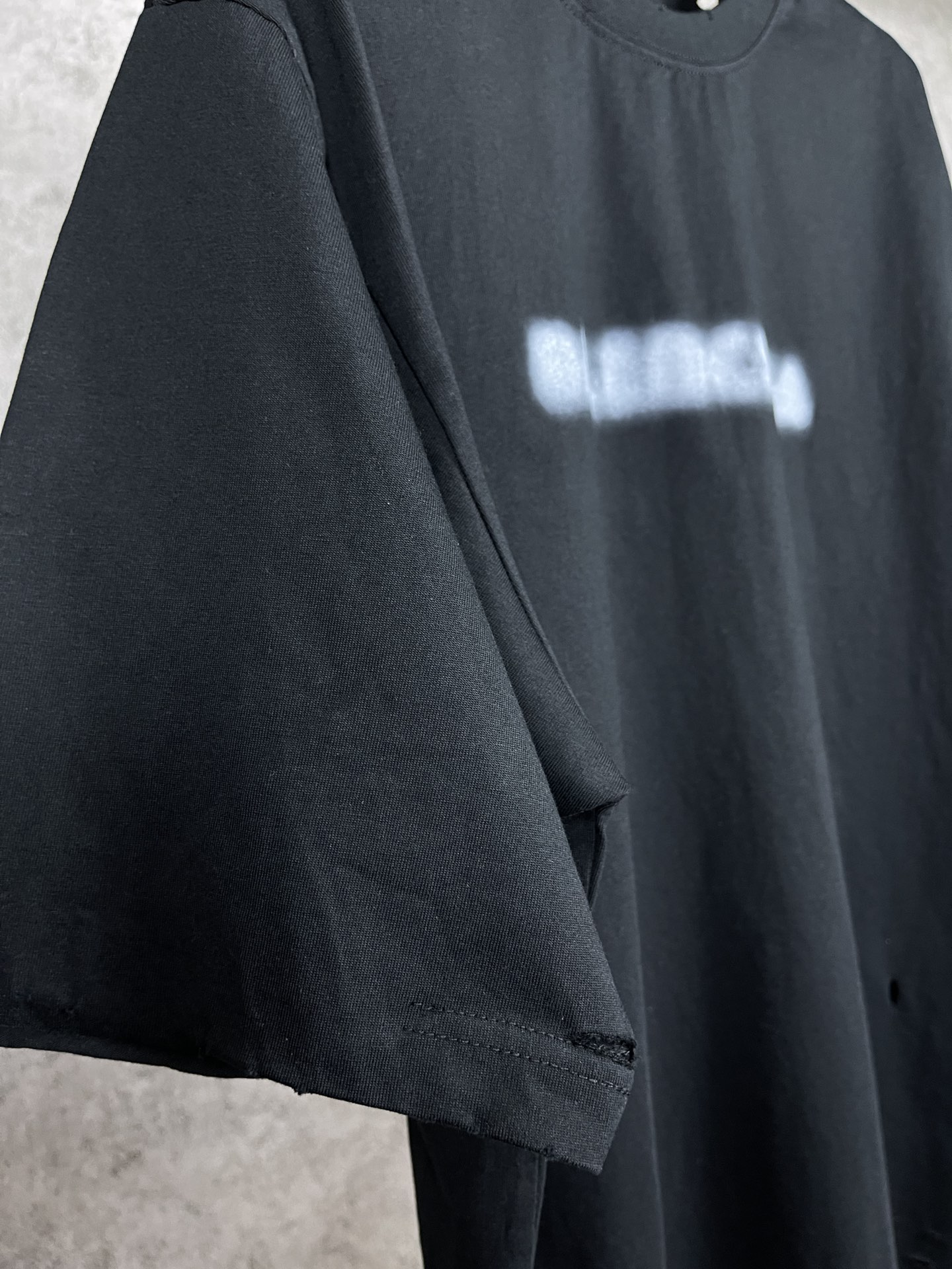 实拍图 顶级版本 官网品质 BALENCI GA 巴黎 模糊LOGO水洗磨烂做旧短袖T恤 砖柜同步 面料采用巴黎ZP定织定染全棉双纱紧密棉 克重260克 布面干净 布纹清晰 柔软舒适 螺纹釆用定染无色差 经典图案印花采用康丽数码直喷 成衣水洗做旧 磨烂 还原砖柜 整件衣服超复杂工艺 巨别市场通货 欢迎对比 版型釆用OS宽松落肩版型 男女同款