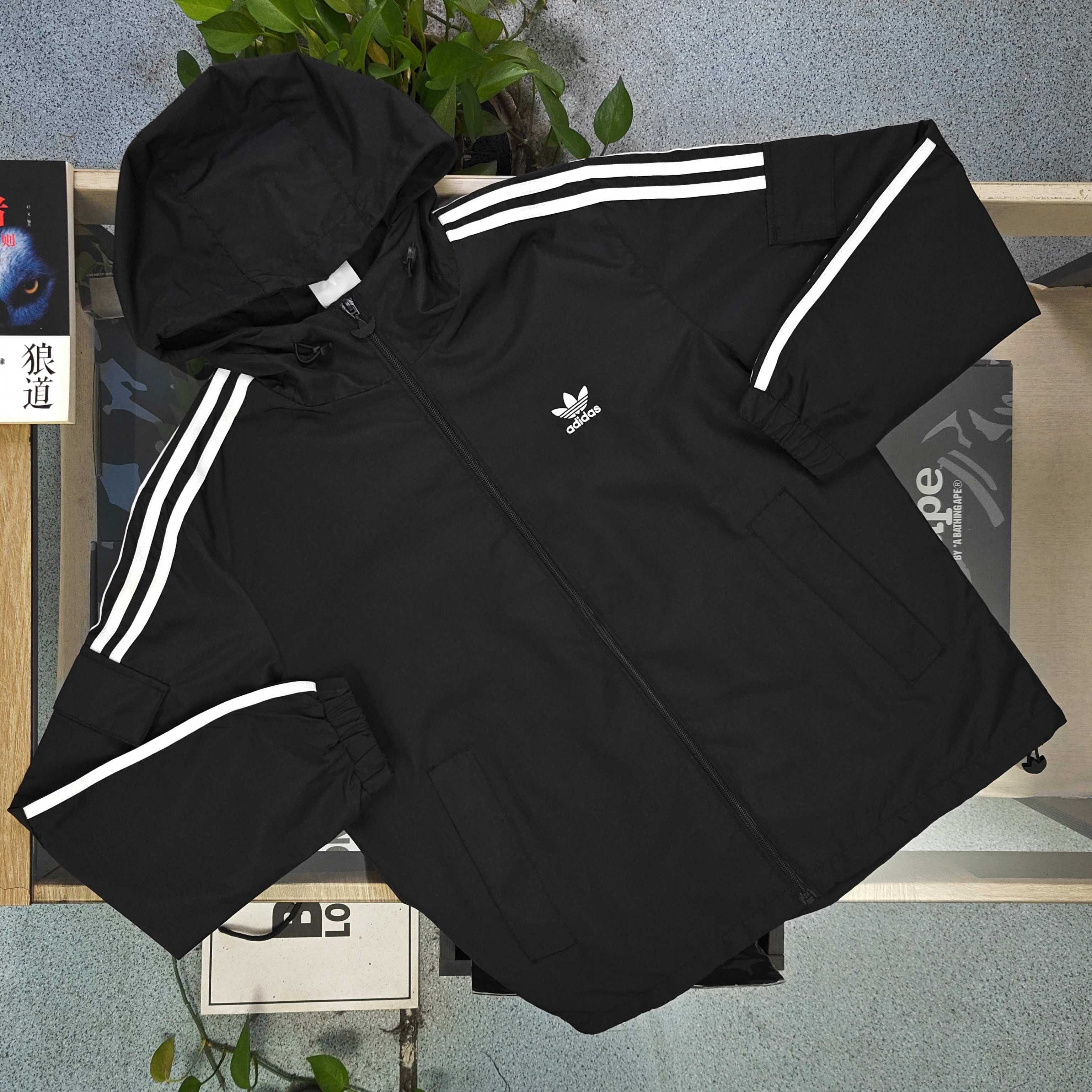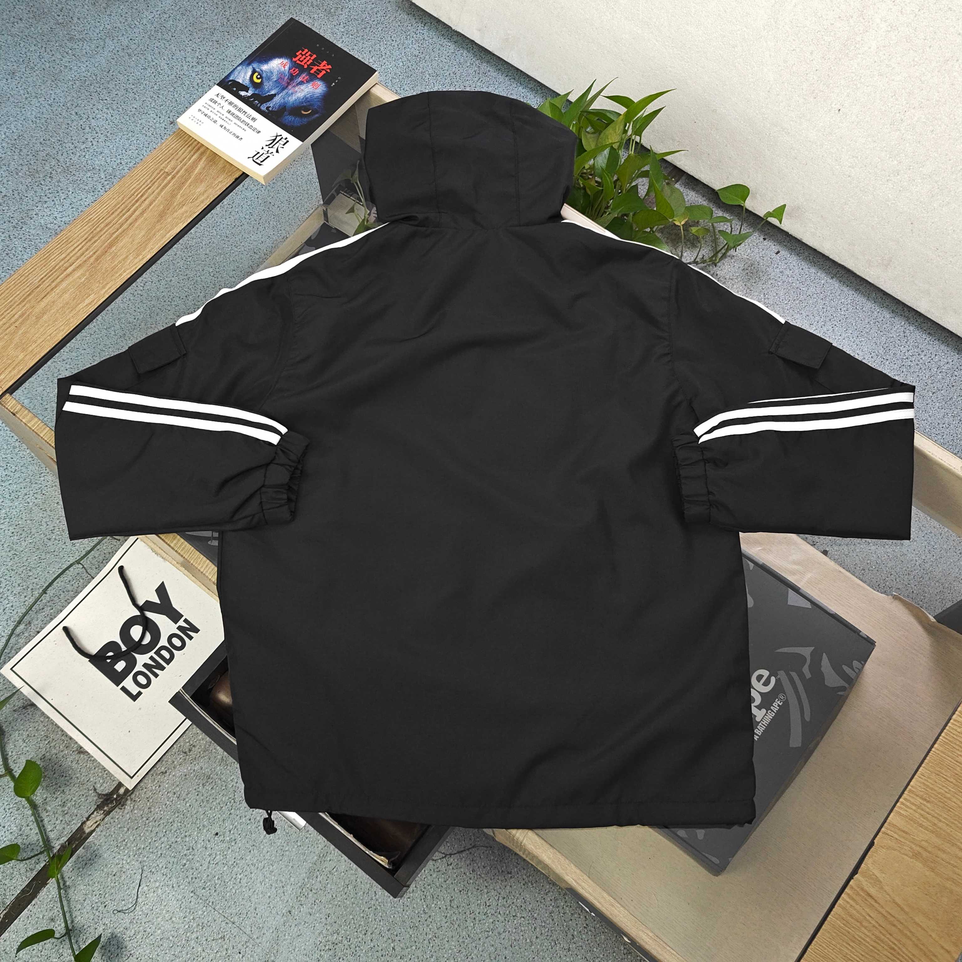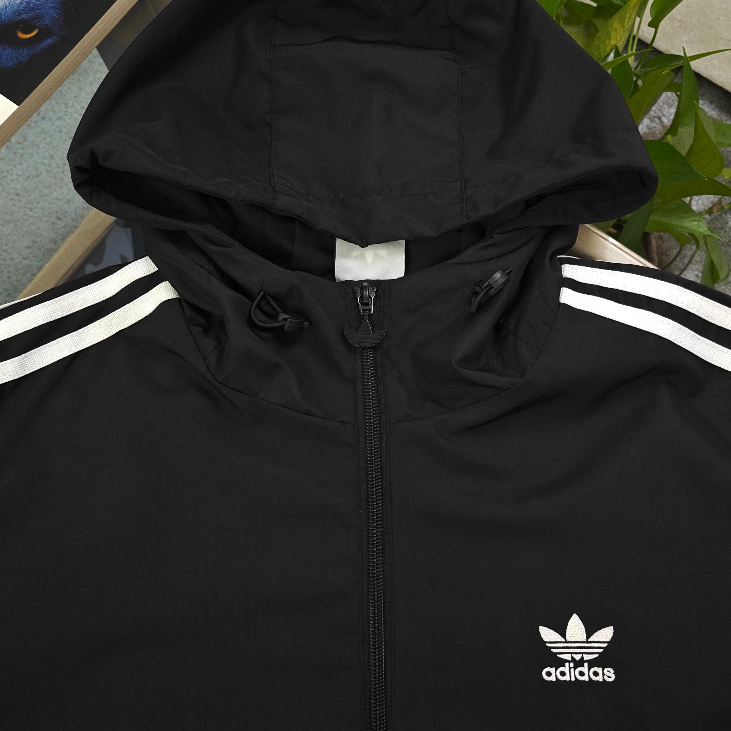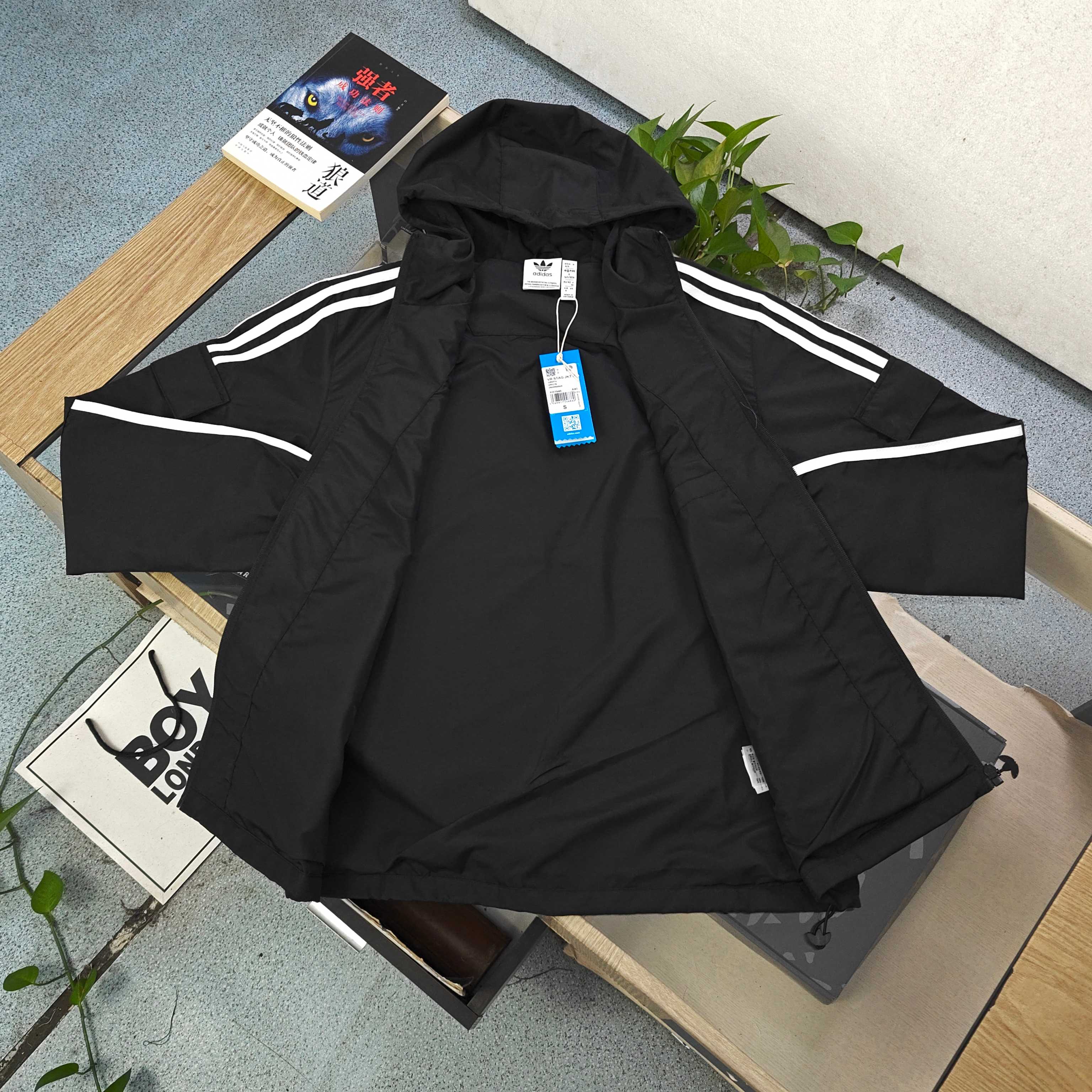 2025秋冬新款Adidas阿迪达斯刺绣三叶草logo图案连帽夹克外套 复古潮范 一衣多搭 阿迪达斯三叶草经典logo醒目 黑色主身配白色三道杠 复古运动风瞬间拉满 连帽拉链设计 简约又实用 日常防风 穿搭造型都在线