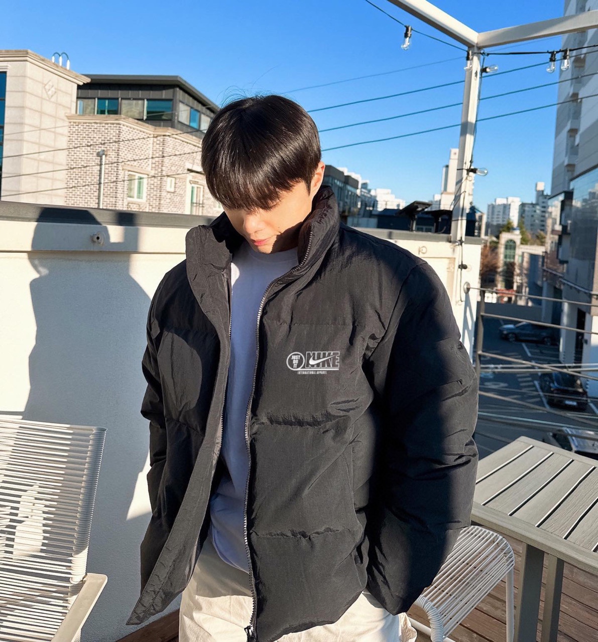 Nike Just do it小logo标识纯色立领拉链保暖面包服棉服 男女同款