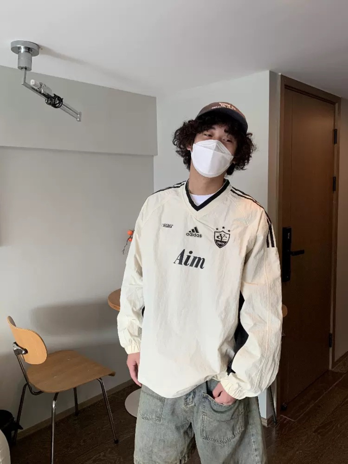 阿迪达斯V领aim 美式街头休闲复古运动感 秋新品潮流男女卫衣外套夹克冲锋衣面料外套情侣款
