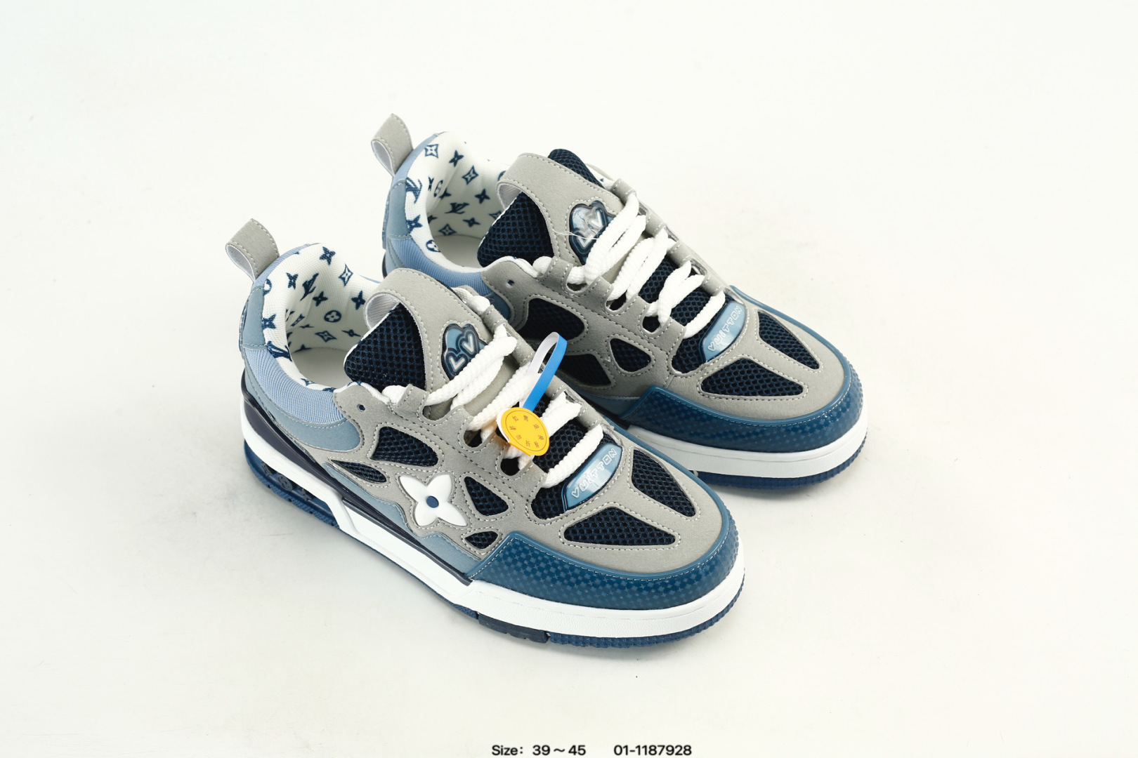 Louis Vuitton 路易威登 采用大荔枝鞋面材质 原装一致TPR光泽组合鞋底 耐弯折滴塑支持片 鞋垫嵌入超软脚感乳胶材质驴的篮球鞋 Virgil Abloh亲自操刀设计全新LV路易威登Louis Vuitton Trainer Sneaker Low休闲运动文化休闲鞋