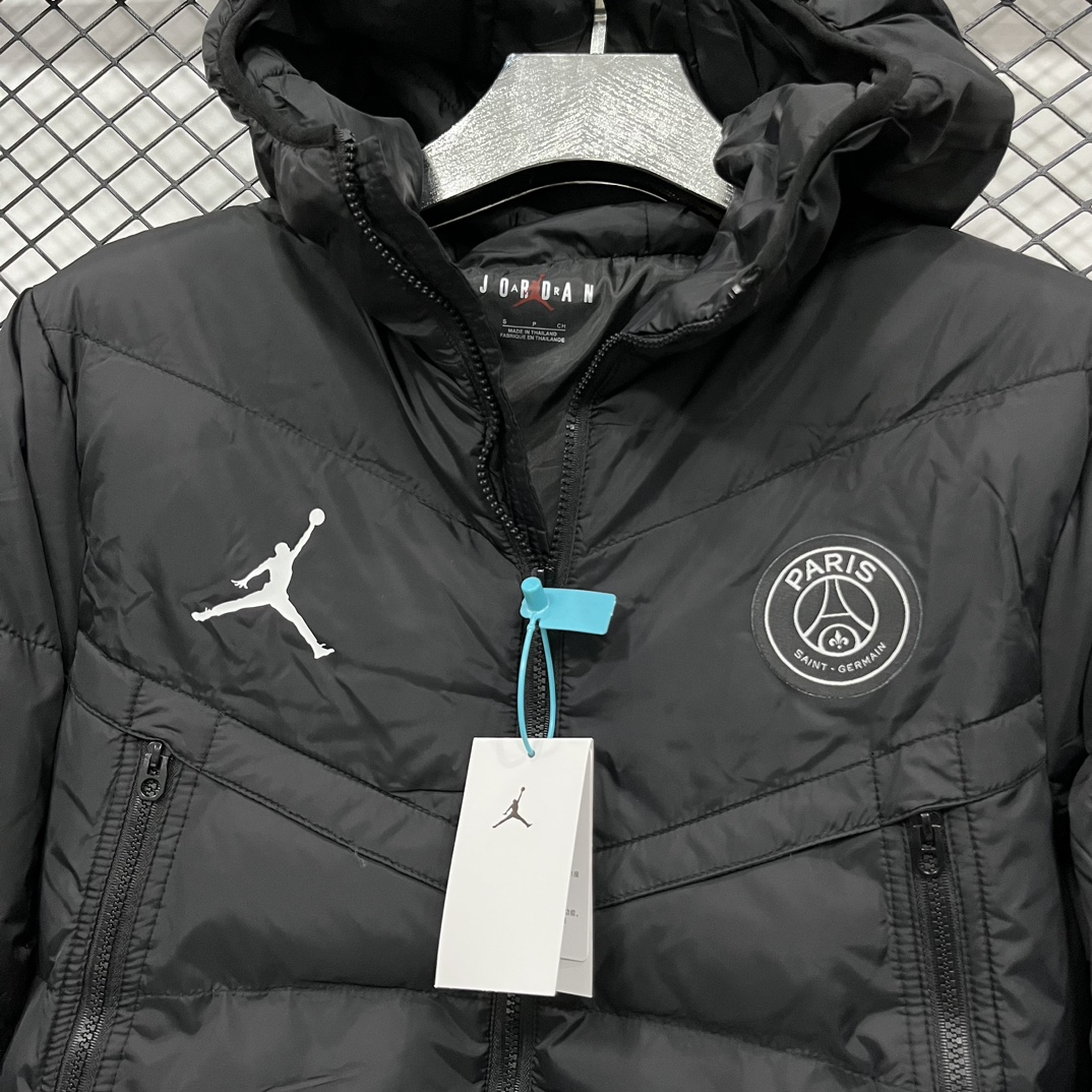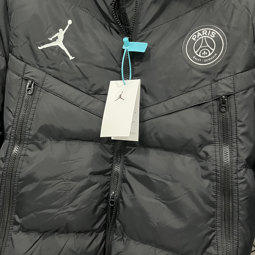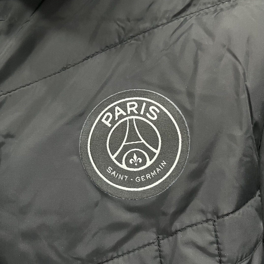 售后不停 乔丹Aj联名 Jordan M J PSG PUFFER JKT 巴黎圣日耳曼 Logo印花徽章连帽宽松面包棉服 冬季 男款 黑色 白色S 2XL