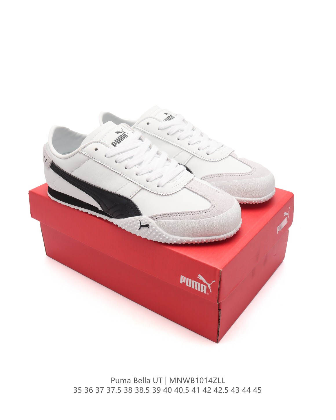 彪马 PUMA Bella UT 时尚百搭 舒适 防滑 低帮 生活休闲鞋 薄底鞋 继将 Speedcat OG 带回后 Puma 再以档案室的经典鞋型 Bella OG 为蓝本 推出契合时下薄底球鞋趋势的 Bella UT 鞋款 鞋面采用上乘皮革材质 并延续 Formstrip 设计语言 鞋头处采用包头设计 搭配麂皮材质提升质感 鞋底部分保留 Bella 鞋款标志性的薄底和点状橡胶外底 上翘的设计包裹鞋面 鞋舌与鞋跟分别点缀美洲狮 Logo 与品牌字母 Logo 本次鞋款搭载 SOFTFOAM 鞋垫 兼顾美学设计与穿着舒适度 提供白 黄 蓝 银 粉五款颜色