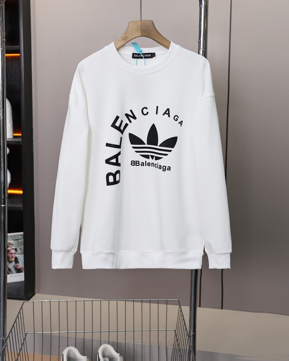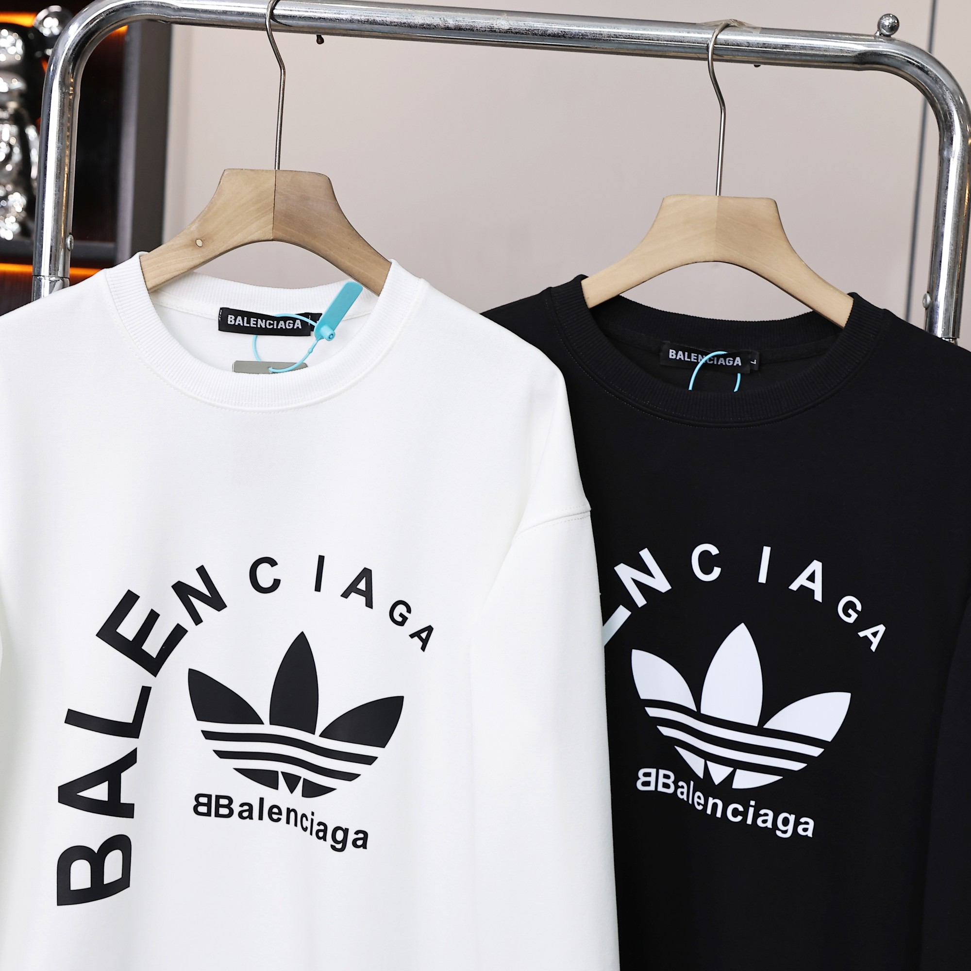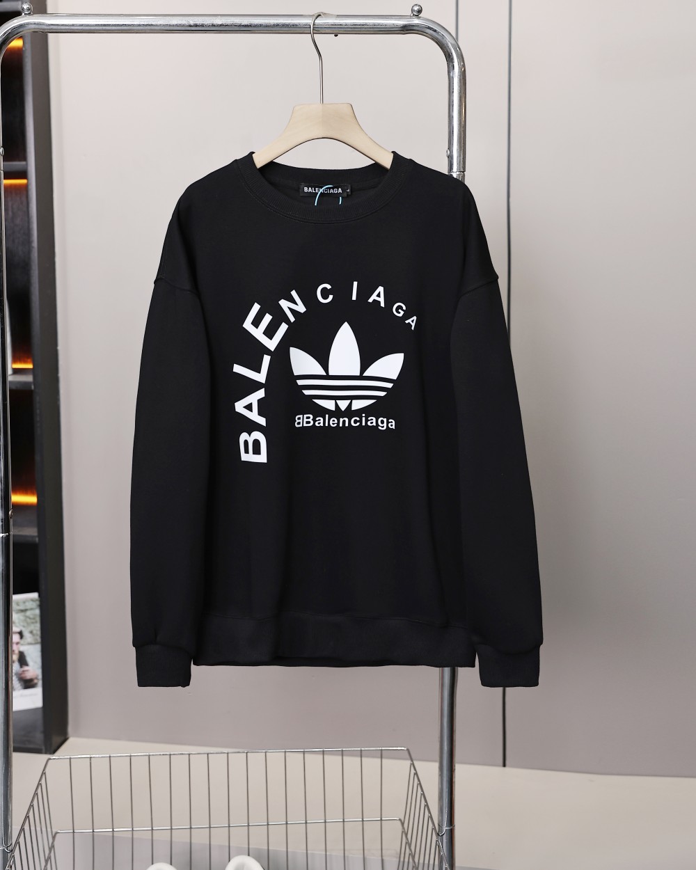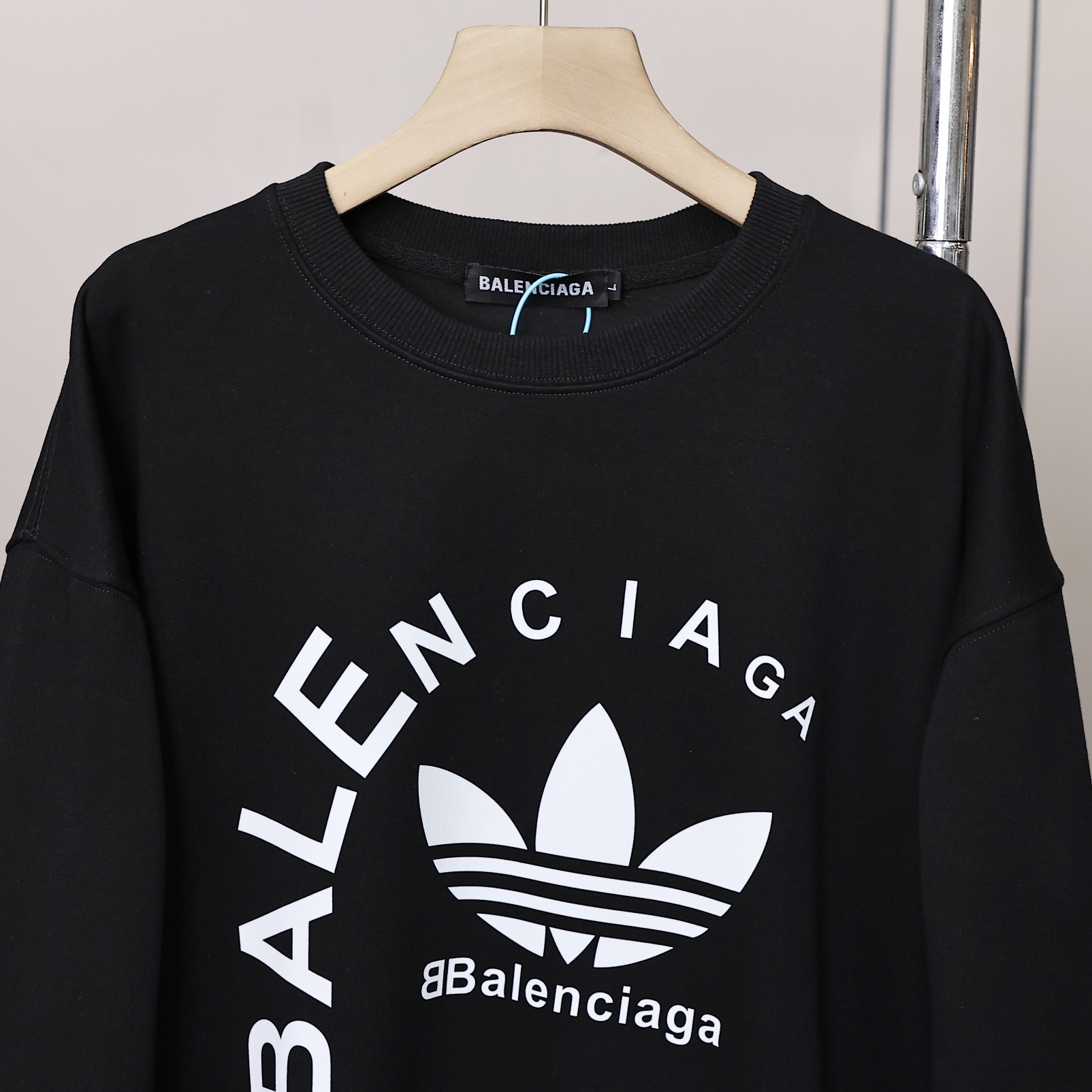 阿迪达斯三叶草联名巴黎世家胸前字母logo情侣款圆领卫衣 男女同款绝佳初秋穿搭必备单品 经典百搭永不过时 情侣可搭