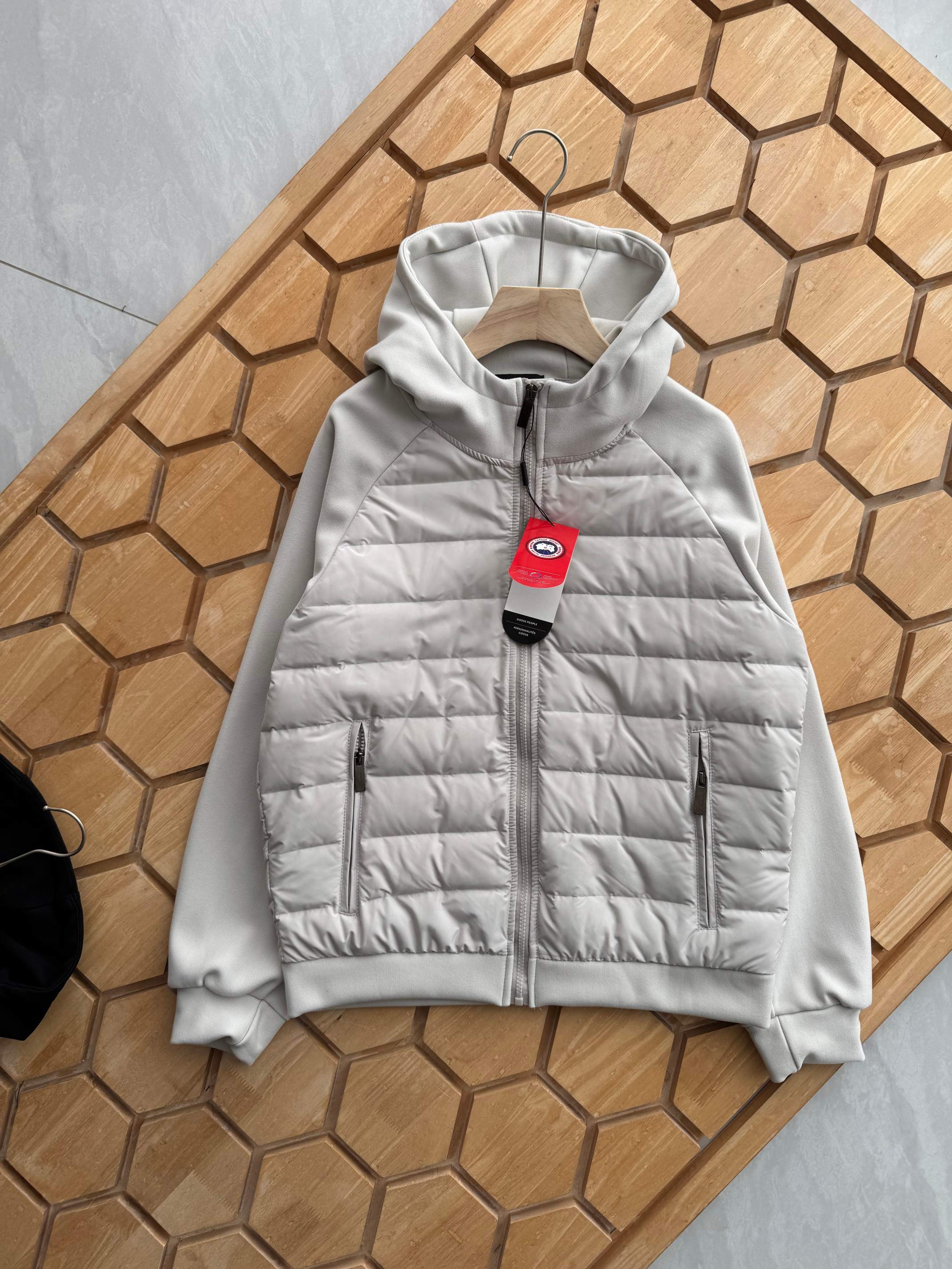 大鹅冬季男女同款拼接连帽羽绒服外套它重磅来袭 gw在售7000 白鸭绒 拼接设计 宇宙最经典的款 国标90 优质大朵白鸭绒 保暖效果超级棒 上身轻暖无压迫感 上身真的太爽了 跟没穿一样 但是又高度保暖 再加上摇粒绒超强锁温 自留一件试穿 室外温度4 上半身穿一件秋衣 本款羽绒服 正合适 一点都不会冷 而且非常有型 冬天也能时尚起来 试穿后 果断自留