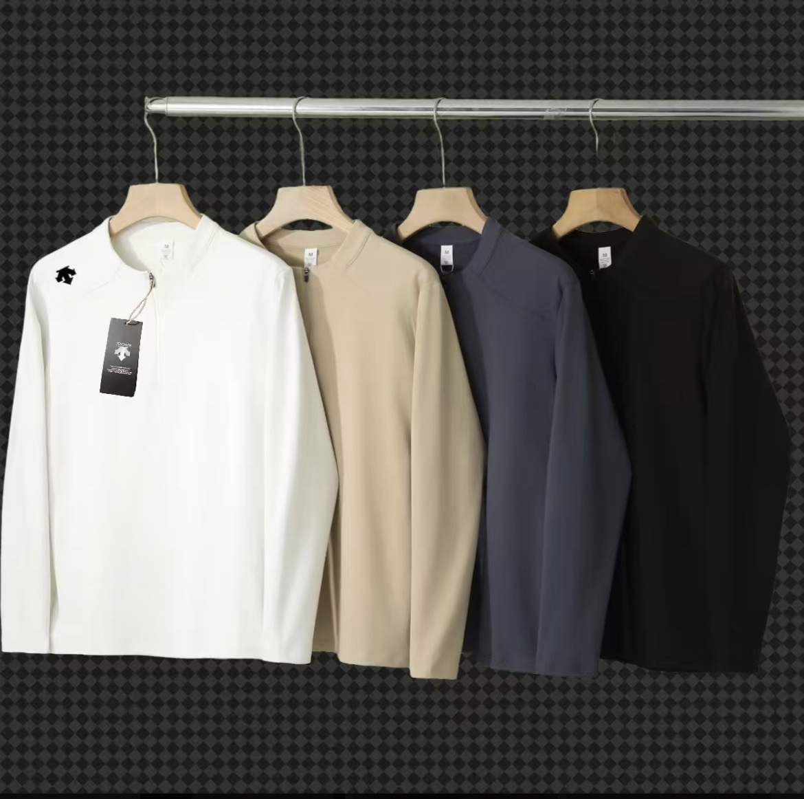 DESCENTE 迪桑特秋冬新款 薄绒速干训练运动健身长袖T恤 半拉链立领卫衣 打底衫 男士男装休闲运动圆领B1294打底衫
