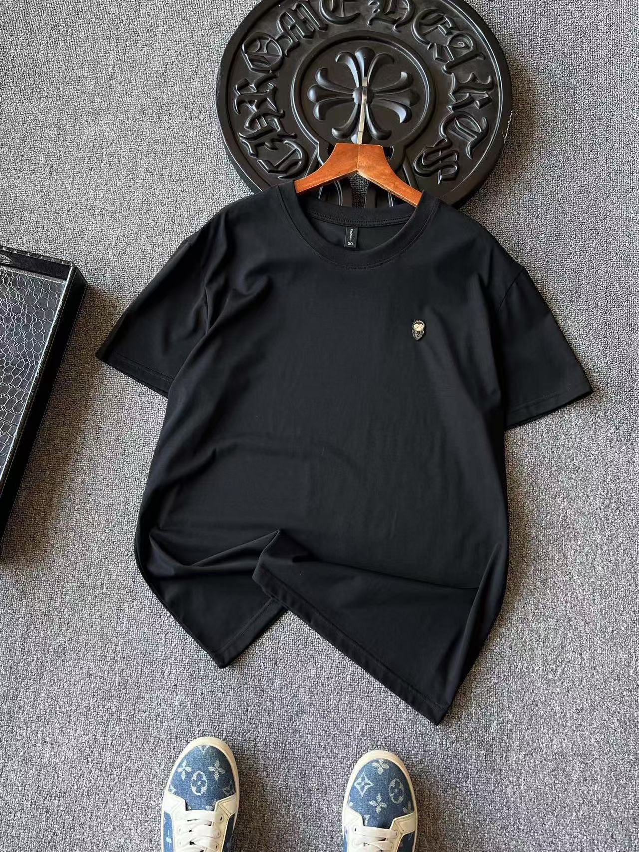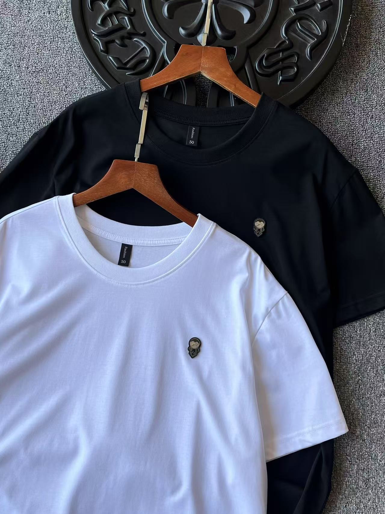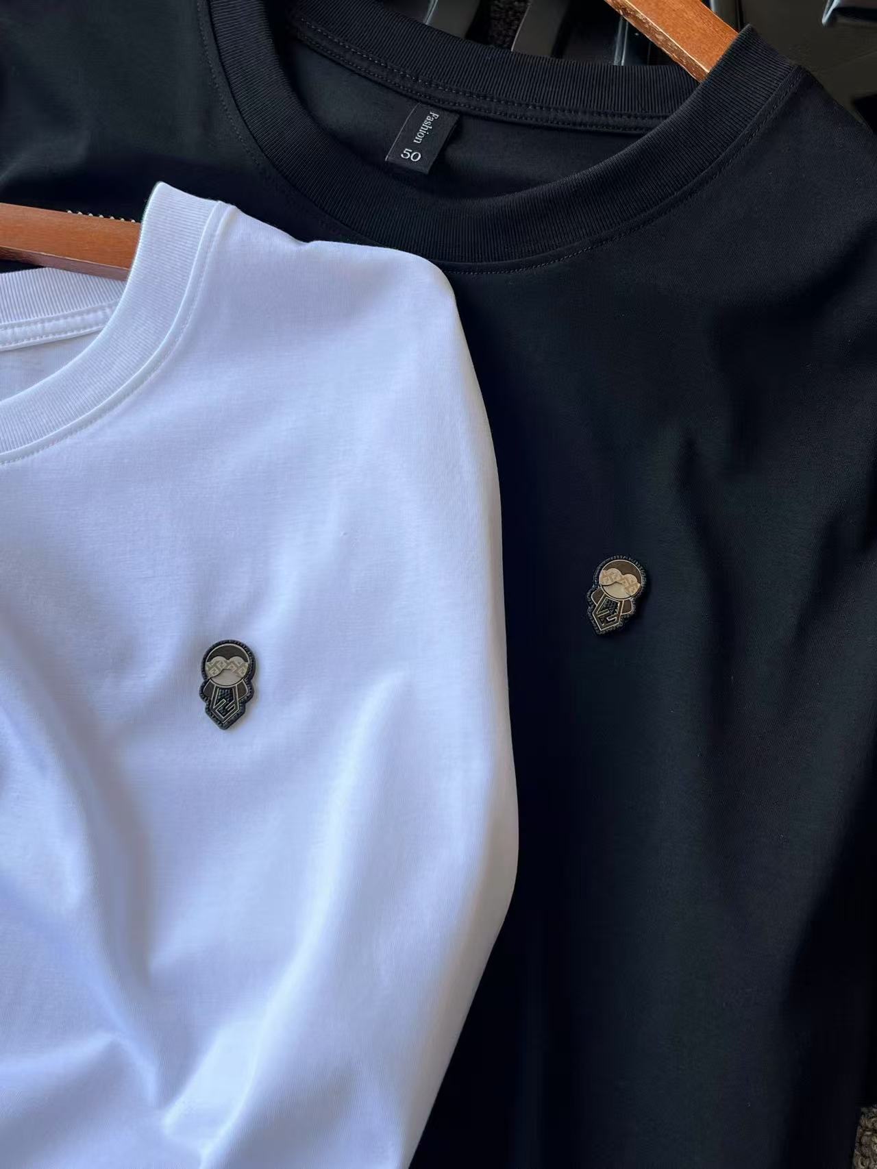 细节细节再细节 Fendi家商场新品老佛爷桑蚕丝短袖T恤 胸前激光浮雕金属芬迪老佛爷标识 轮廓镶嵌硅胶环绕 细品凹凸纹理 十分精致 同缸同色定织定染配套罗纹 外贸大厂订单 出口意大利高端做工