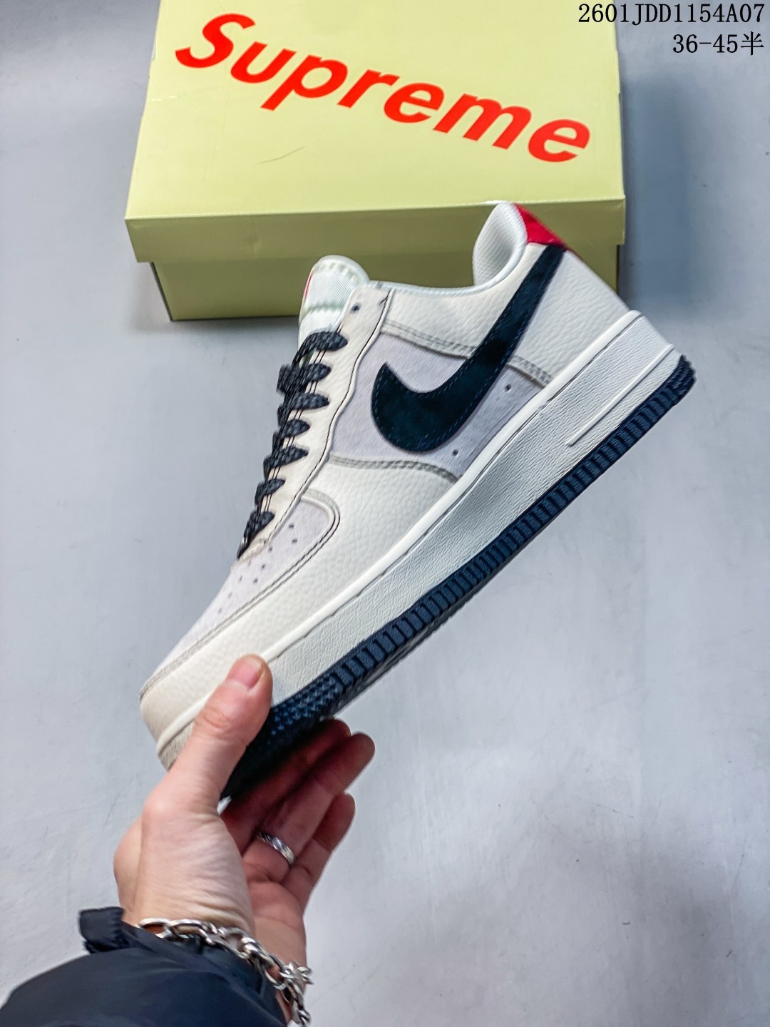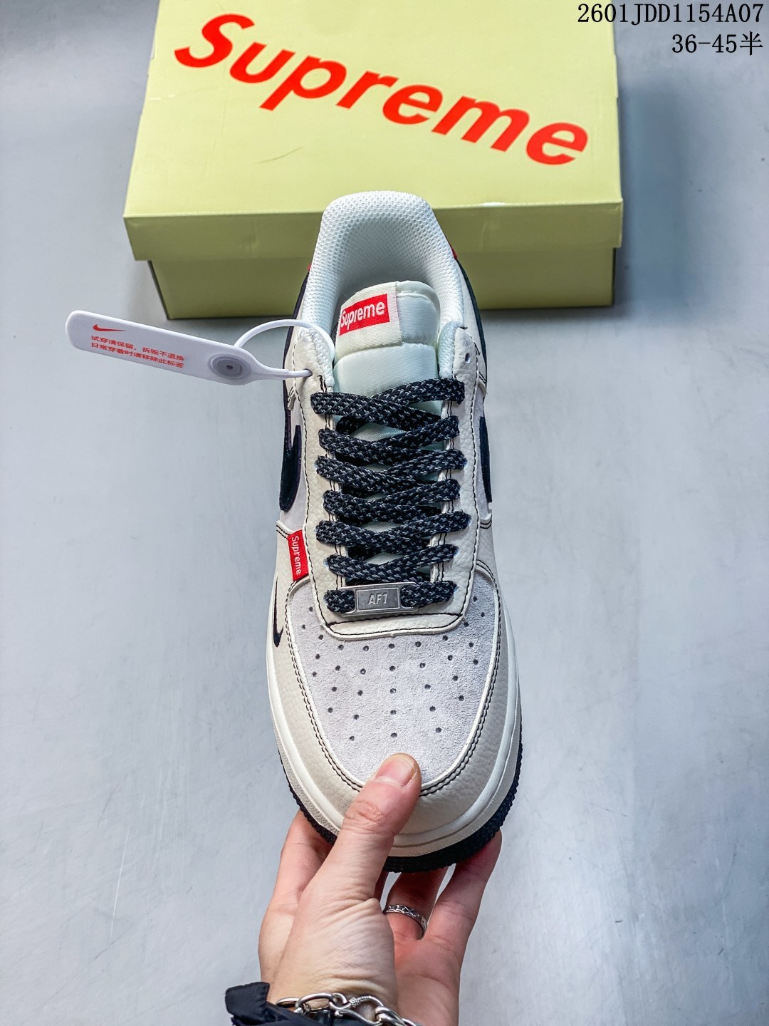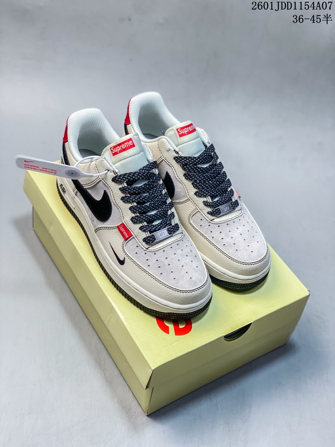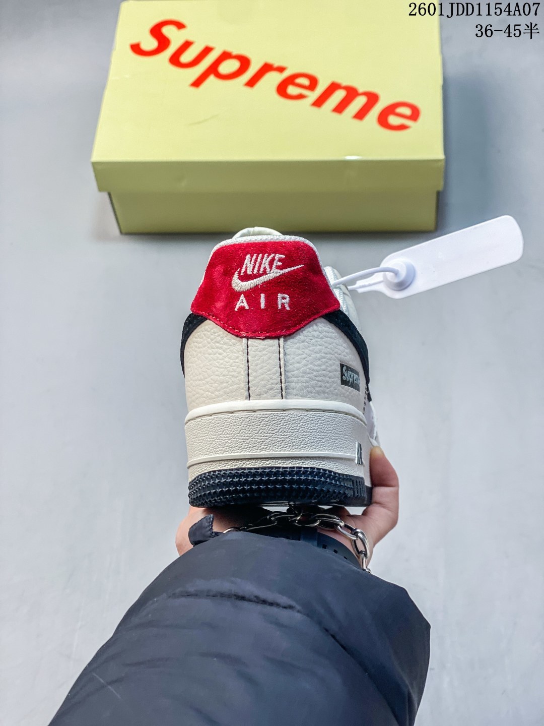 海外限量发售 公司级NIke Air Force 1 07 Low Supreme联名 米黑红尾 空军一号 低帮 运动鞋 休闲鞋 折边针车 工艺难度大 原楦头原纸板 原装鞋盒 定制五金配件 内置全掌气垫 原厂鞋底