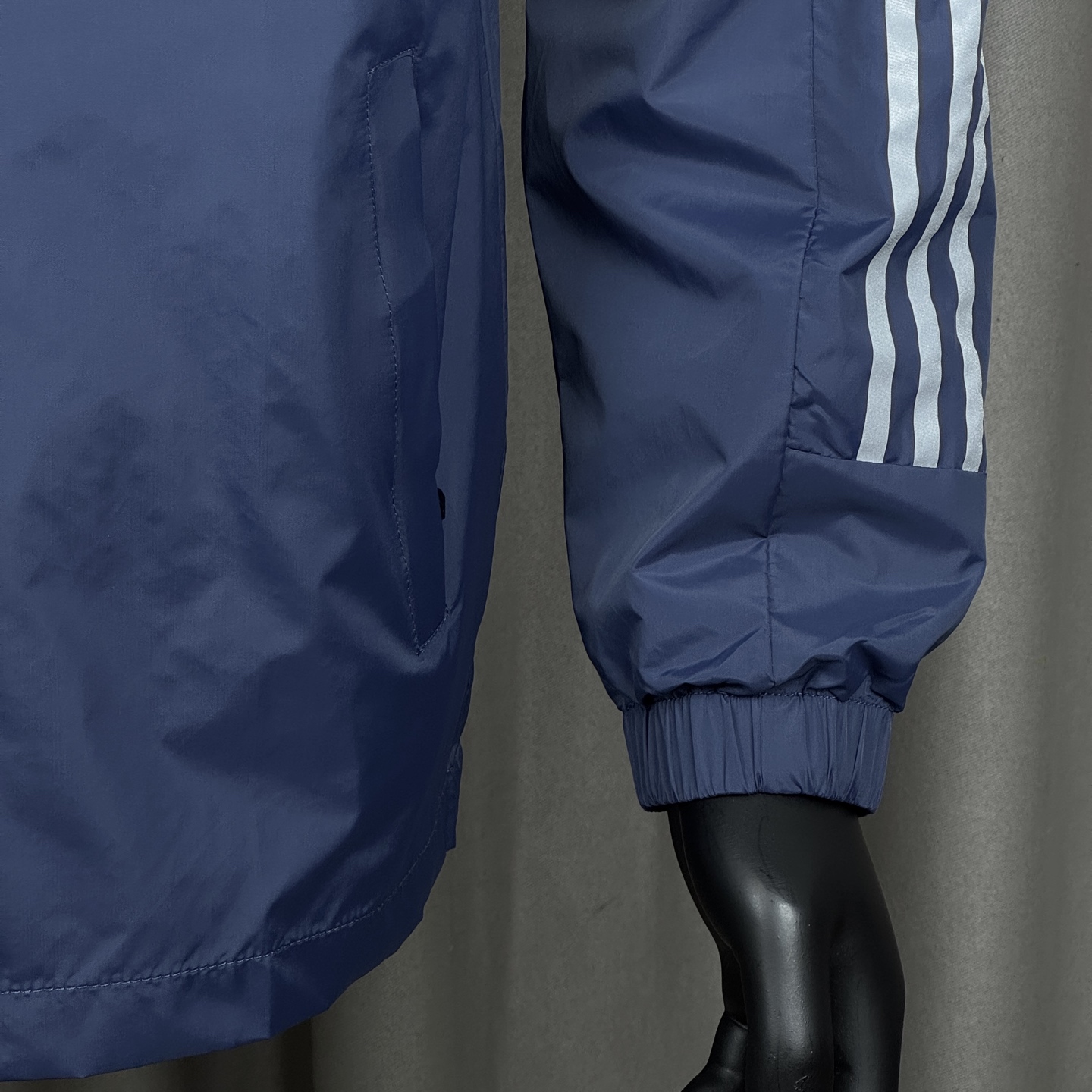 面料采用科技梭织面料 搭配内里网眼 超级适合春秋季天气不会闷热 胸口处字母采用万针刺绣 清晰饱满无毛边 口袋处有拉链 袖子上的三条杠和logo均为反光条 胸口经典小logo搭配纯色整体 经典百搭 男女都好穿