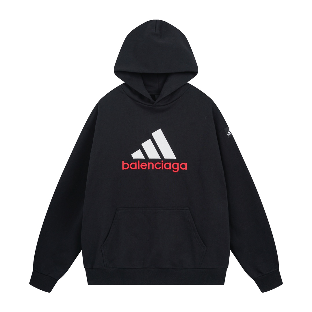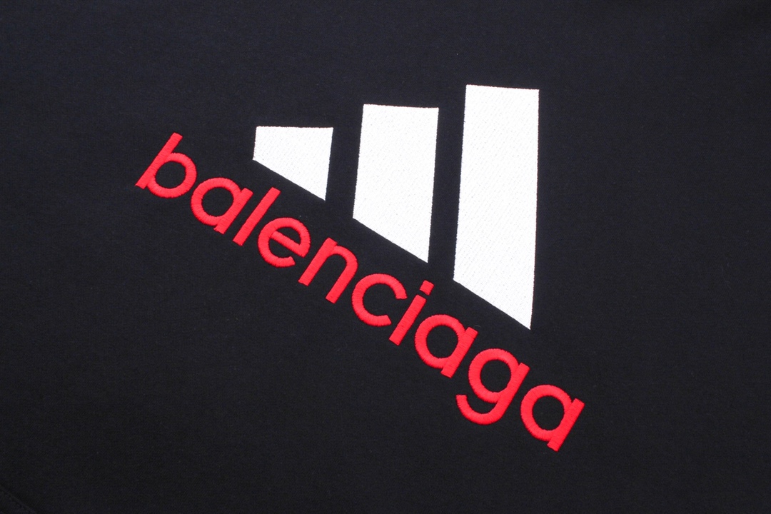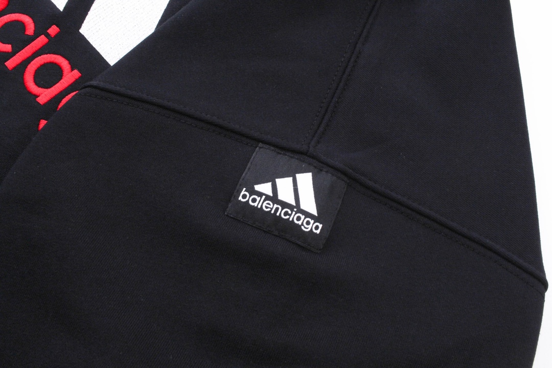 细节图 顶级版本 官网品质 BALENCI GA 巴黎联名Adidas前面经典LOGO组合 刺绣带帽卫衣