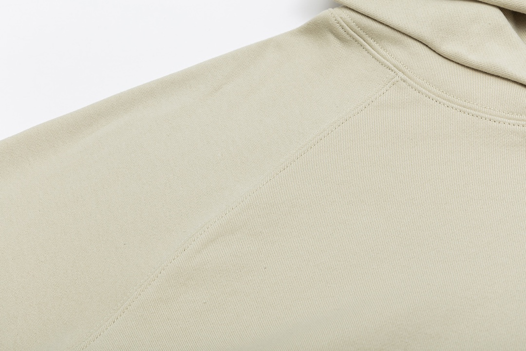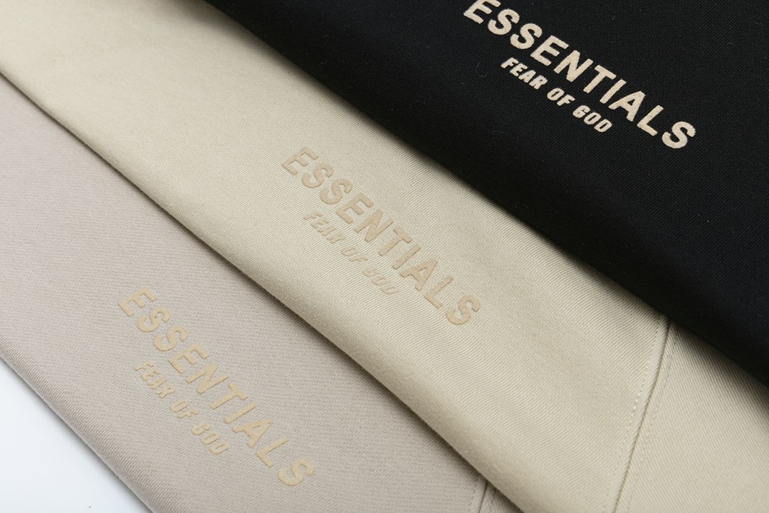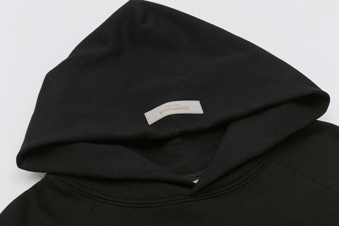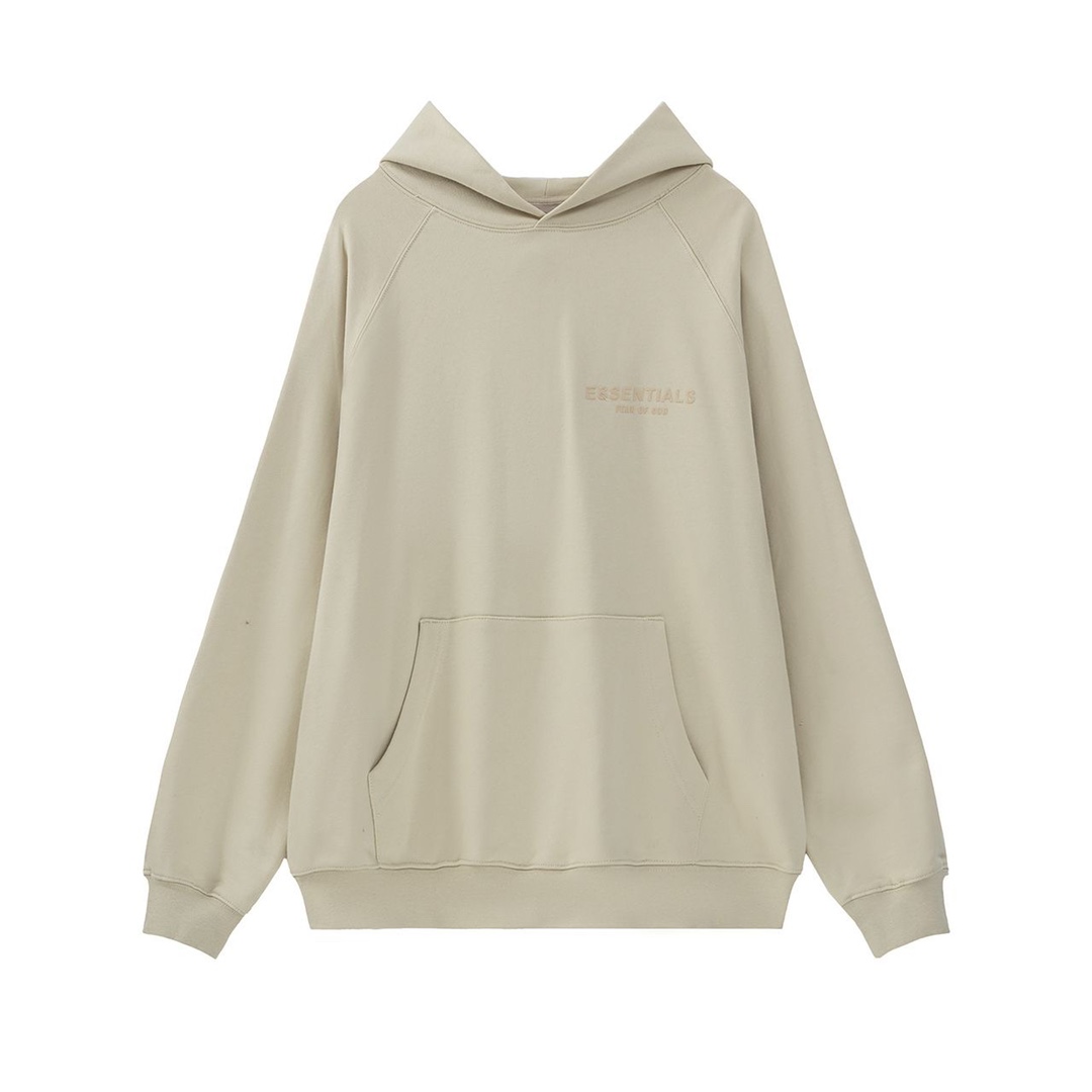 ESSENTlALS男女同款插肩袖 前插袋连帽卫衣 采用立体植绒印花工艺 370克毛圈卫衣面料 不起球 杏 米黄 黑 3色 S一XL