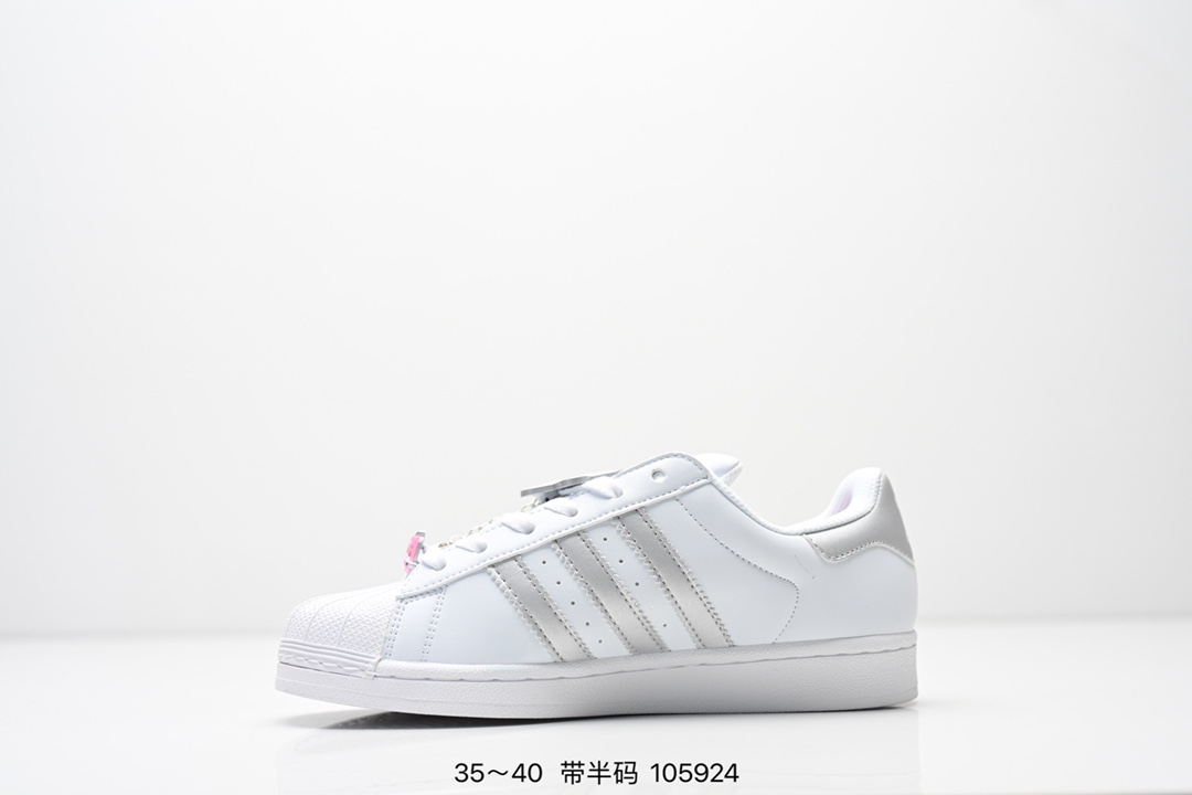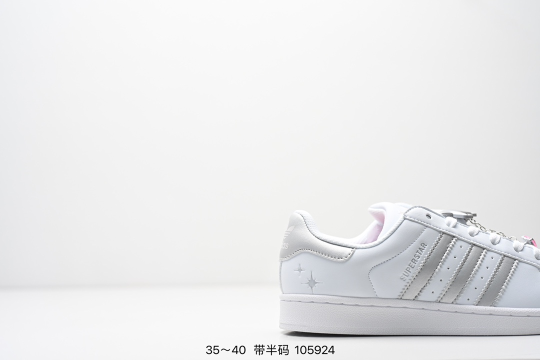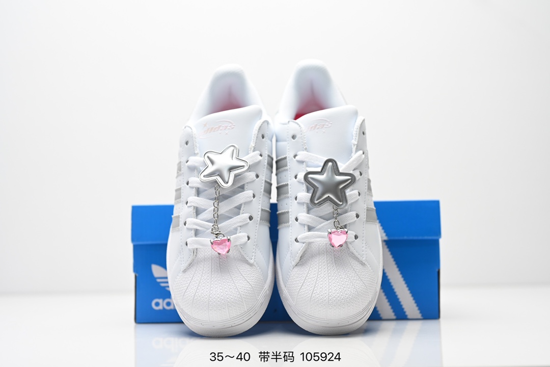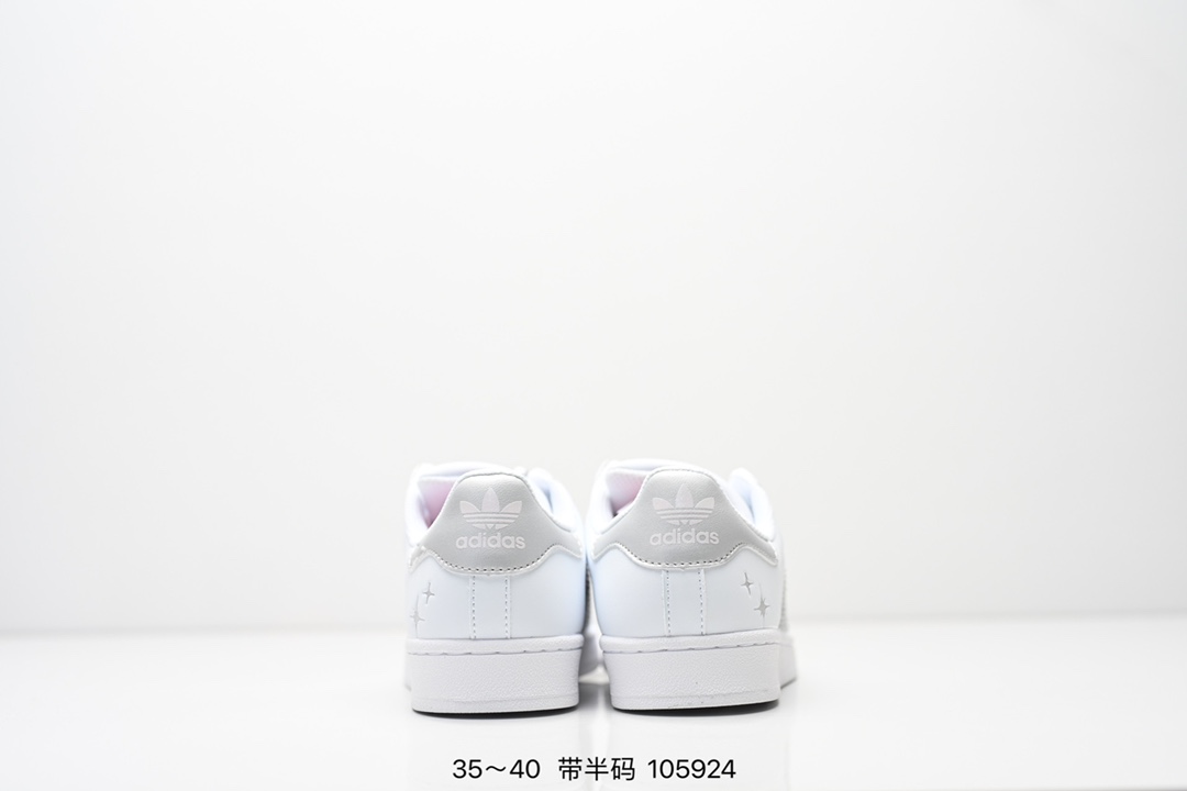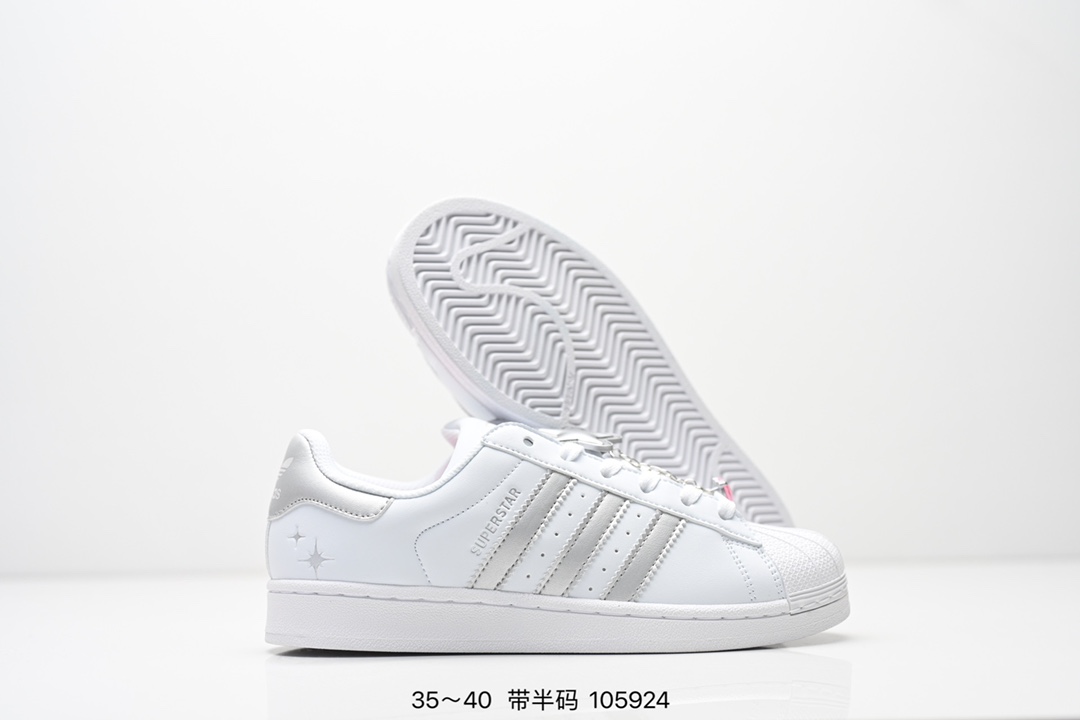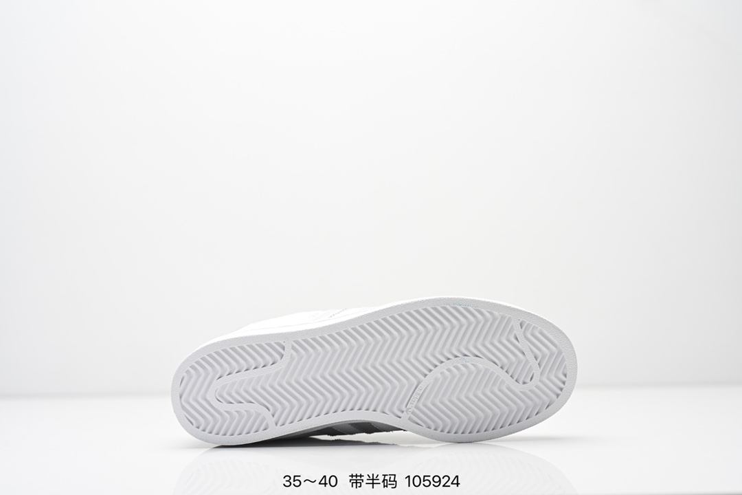 AD Originals Superstar 经典复古贝壳头板鞋 IE5532 诞生于1969年 是第一双将全皮面鞋 身与橡胶鞋头结合在一起的低帮篮球鞋 Superstar最开始 是作为高帮篮球鞋Pro Model的低帮版本而出现的 但因为其独特和醒目的橡胶鞋头造型而让大家熟知 被大家形象地称为 shelltoe 贝壳头 在70年代的美国职业篮球场上 接近3 4的NBA球员都将这双Superstar作为场上用鞋 80年代之后 经过不断的改良和发展 Superstar逐渐成为横跨时装 音乐 街头文化 休闲和运动等各大领域的时尚潮鞋