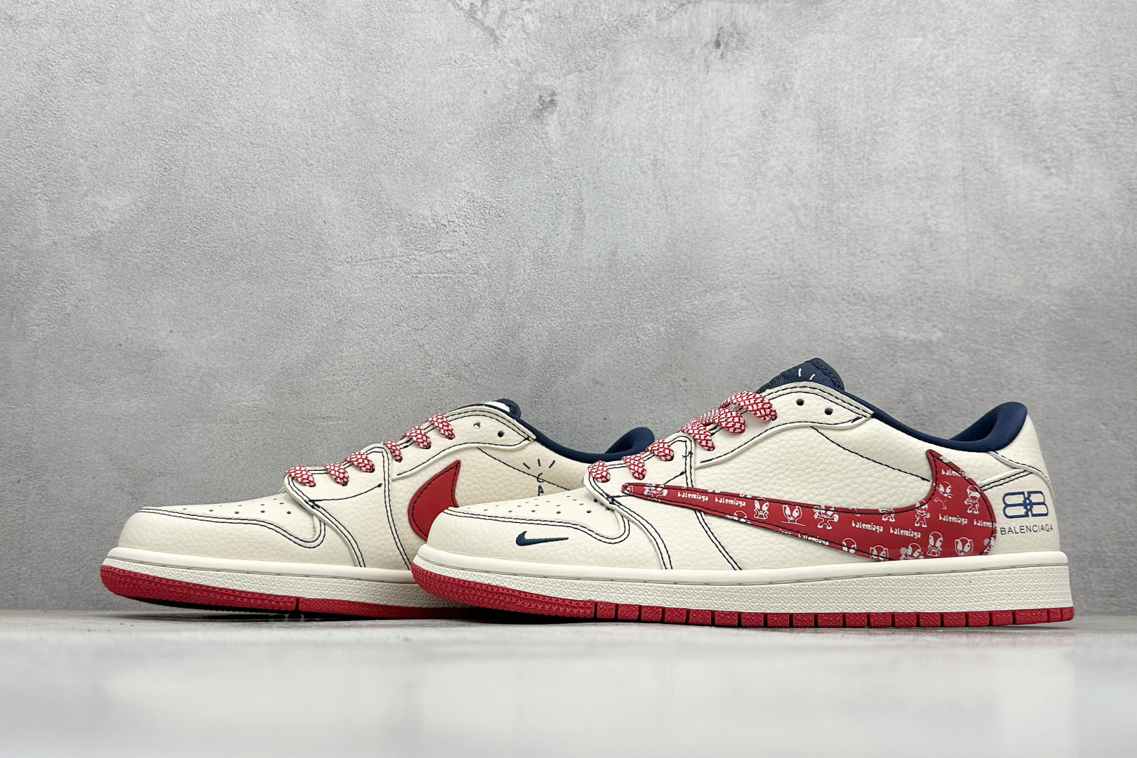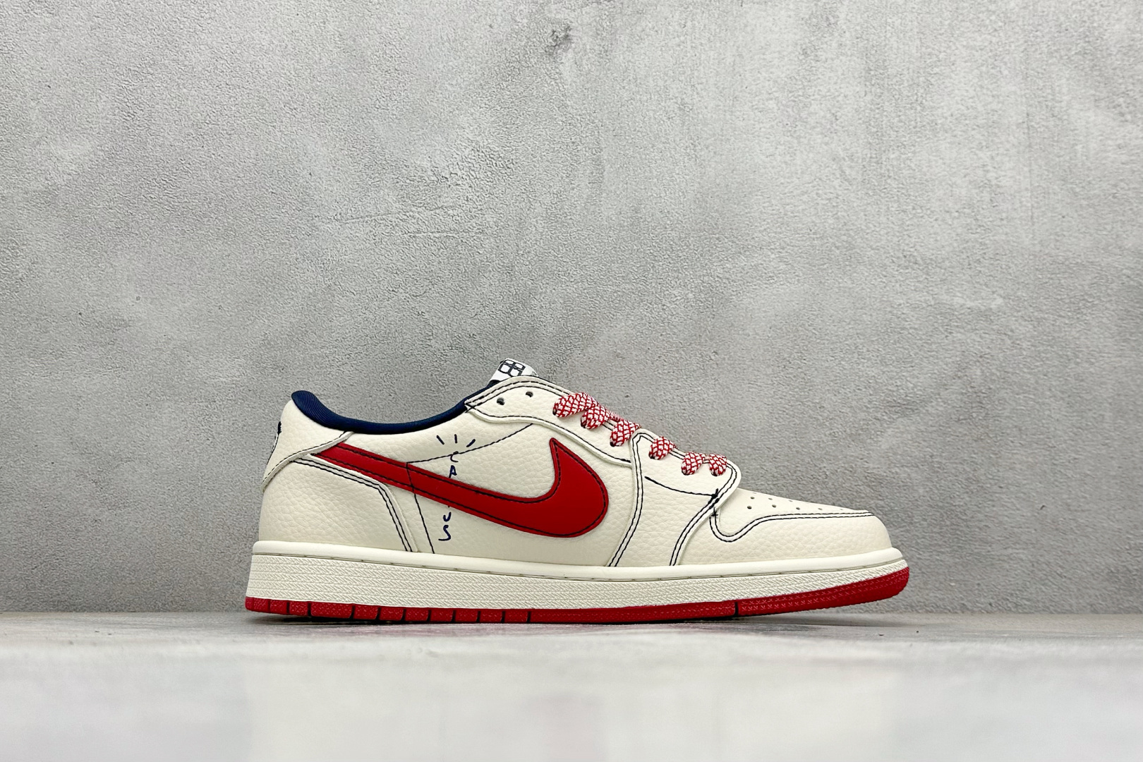 Travis Scott x Fragment Design x Air Jordan 1 Low OG SP AJ1 乔1 巴黎世家联名 米白黑红钩印花 低帮文化休闲板鞋