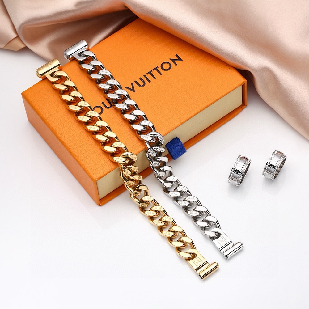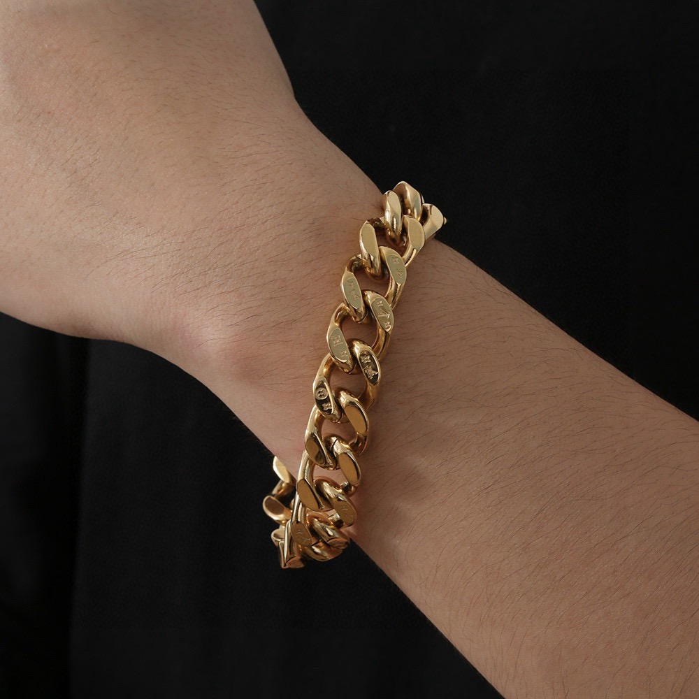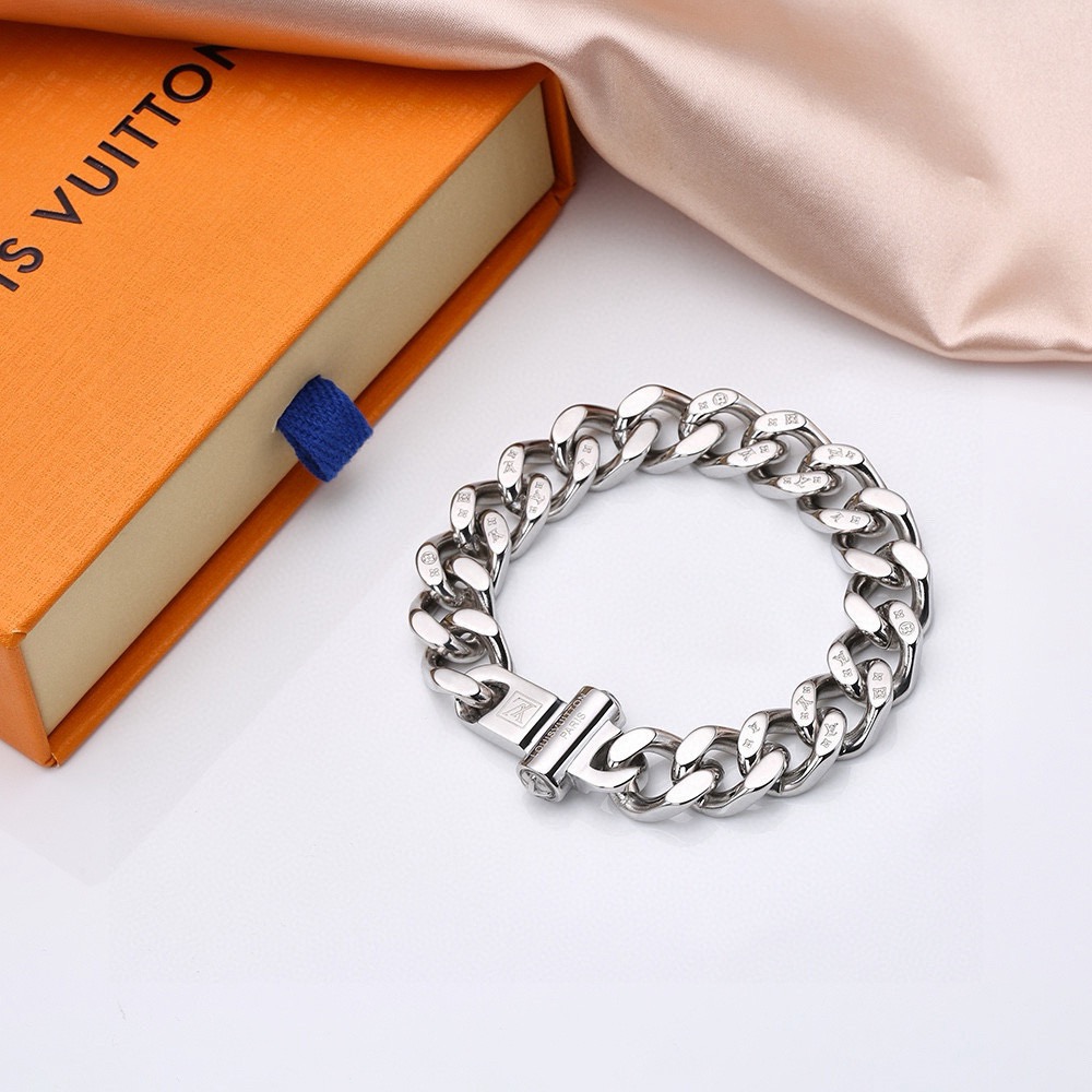 LV路易威登磁扣钢手链 男子汉必备 图案错落有致 匠心雕琢超大链条 演绎细腻与大胆的对比 链条元素 在金色光芒中愈发耀目 精致细节共同完善此款匠心之作 316精钢打造 配全套包装 区别市场垃圾版本 尺寸 20cm 款号 1H06